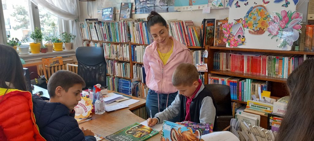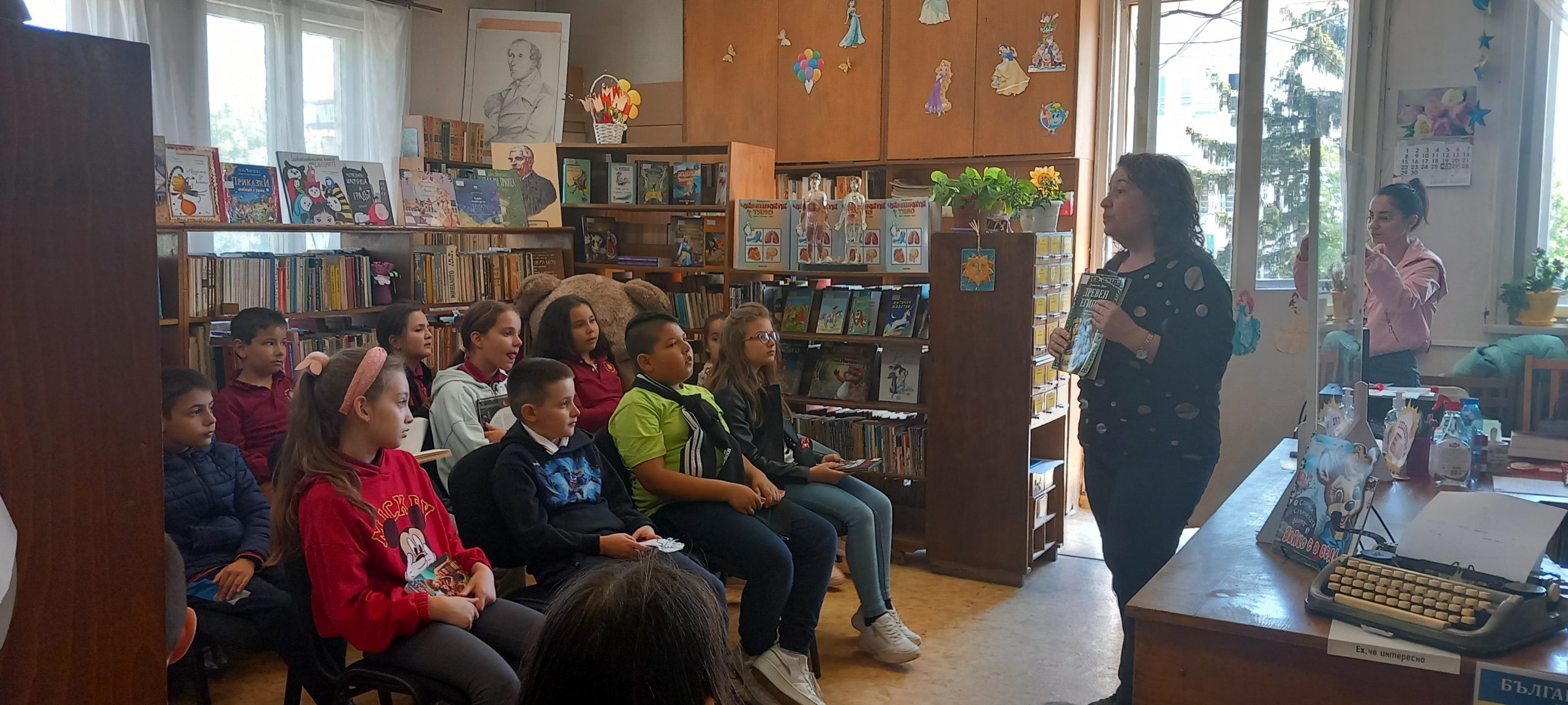 Днес учениците от 2в клас заедно с техния класен р-л Даниела Ганева посетиха Общинската библиотека. Целта на тяхното посещение бе да отбележат Седмицата на книгата и Месецът на кариерното ориентиране. Младите дами, представителки на Общинската библиотека Йоана Димитрова и Велислава Дончева прочетоха на учениците увлекателна история за създаването на първата библиотека в света . Потопиха ги в сферата на тяхната професия като им разказаха и показаха нагледно с какво се занимава един библиотекар . Учениците имаха възможност дори да се превърнат в истински библиотекари, като изпълниха част от задълженията на тази увлекателна професия. Децата са редовни посетители на библиотеката всеки месец и постоянно преоткриват необятния свят на детската книга.