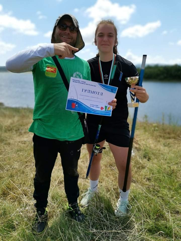 Седмокласничката Християна Миланова от ОУ „Иван Вазов“ грабна първо място в групата до 14 години с 1 кг и 850 гр риба уловена в язовир „Тича“. Този улов и отреди и второ място сред 18 годишните.