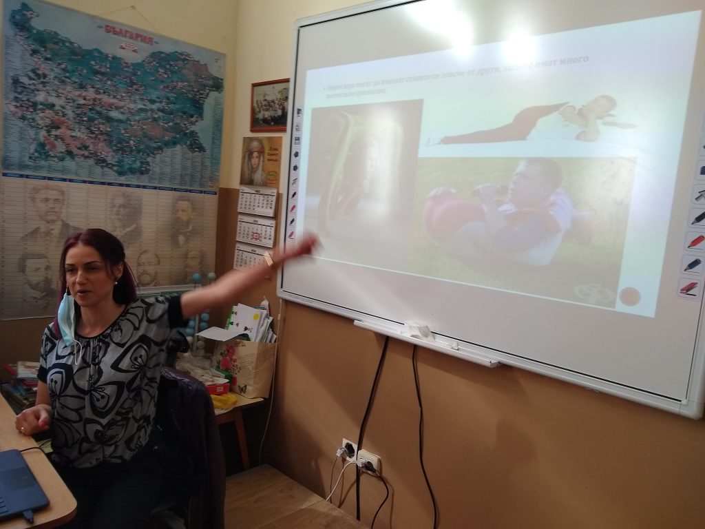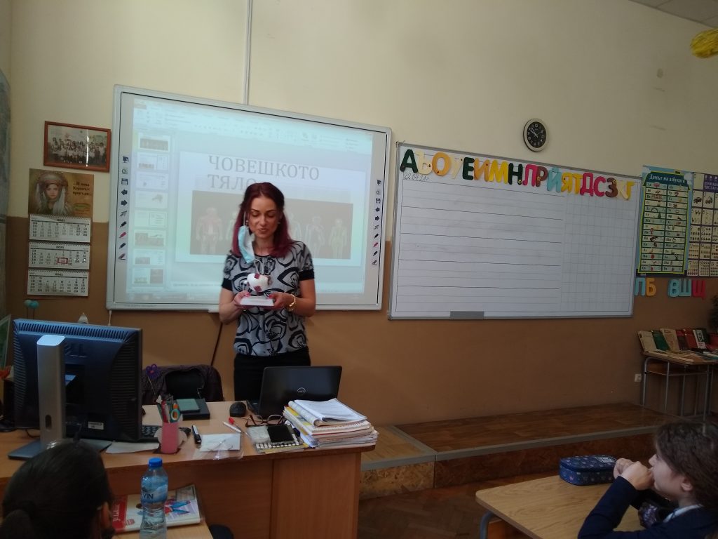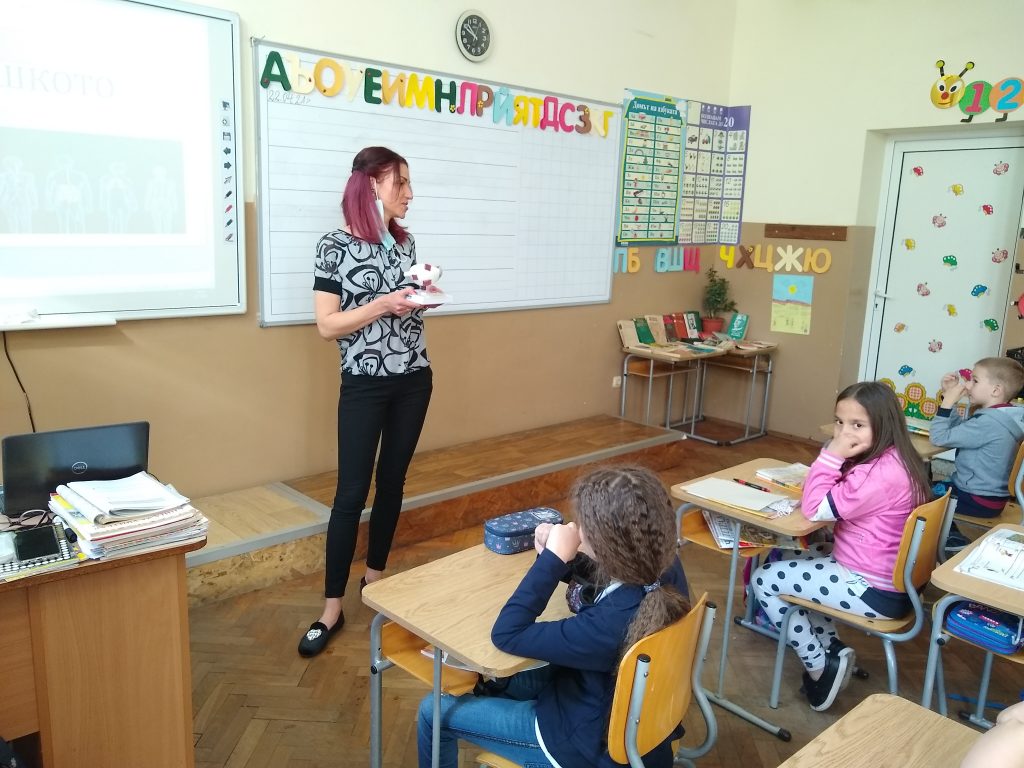 Срещата премина с голям интерес от страна на децата. Д-р Цветанова беше подготвила презентация, с помощта на която показа и разказа на учениците важни неща за човешкото тяло, за отделните системи в него и как функционират те. На достъпен език тя им даде ценни съвети за здравето, за здравословното хранене и начин на живот. Особен интерес у децата предизвика книжката с цветни табла за установяване на далтонизъм и таблицата за проверка на зрението. Силно впечатление им направи макетът на човешкото око.
