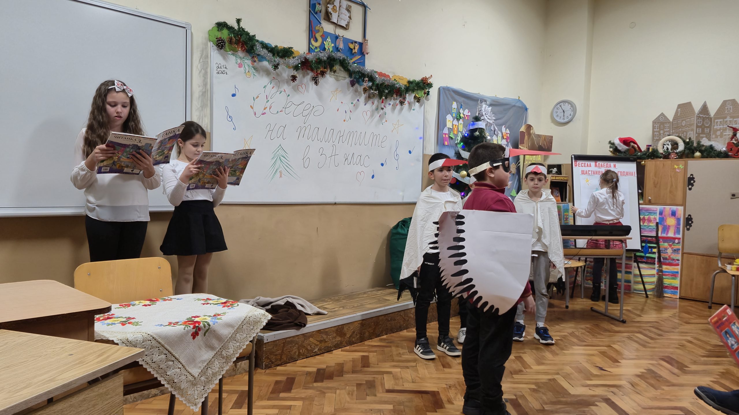 Учениците от 3. А клас представиха своите разнообразни  таланти пред  родители си. Третокласниците рисуваха, пяха, танцуваха, изработваха модел на приложното изкуство, задаваха гатанки, свириха на различни музикални инструменти и представиха  драматизациии от изучени литературни произведения.  Зрителите – родители също бяха приготвили богата трапеза от домашно приготвени лакомства за отличните изпълнения на всички ученици. Те получиха подаръци от своите учители Розалия Нанкова и Нели Събева и си пожелаха много здраве, успех, приятелство и радостни мигове на сбъднати желания.