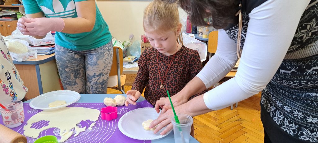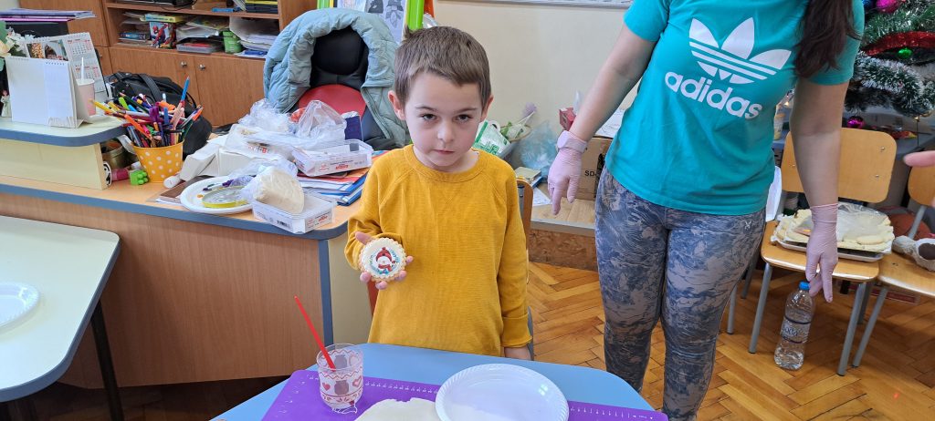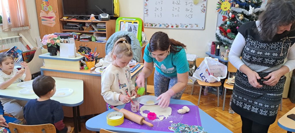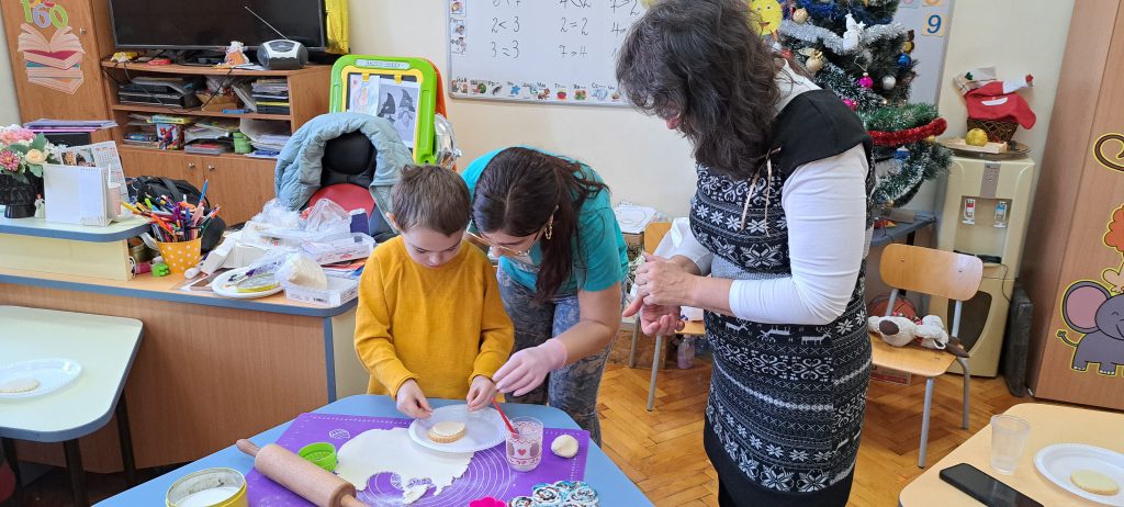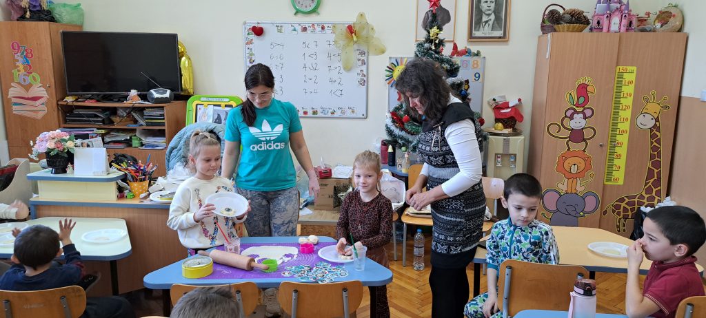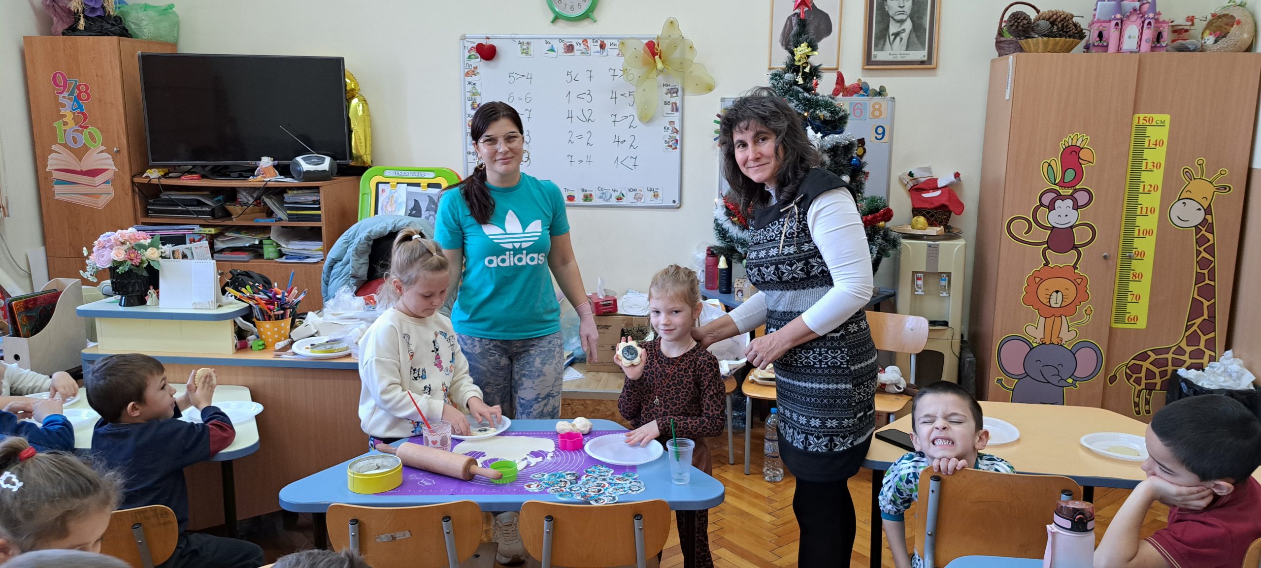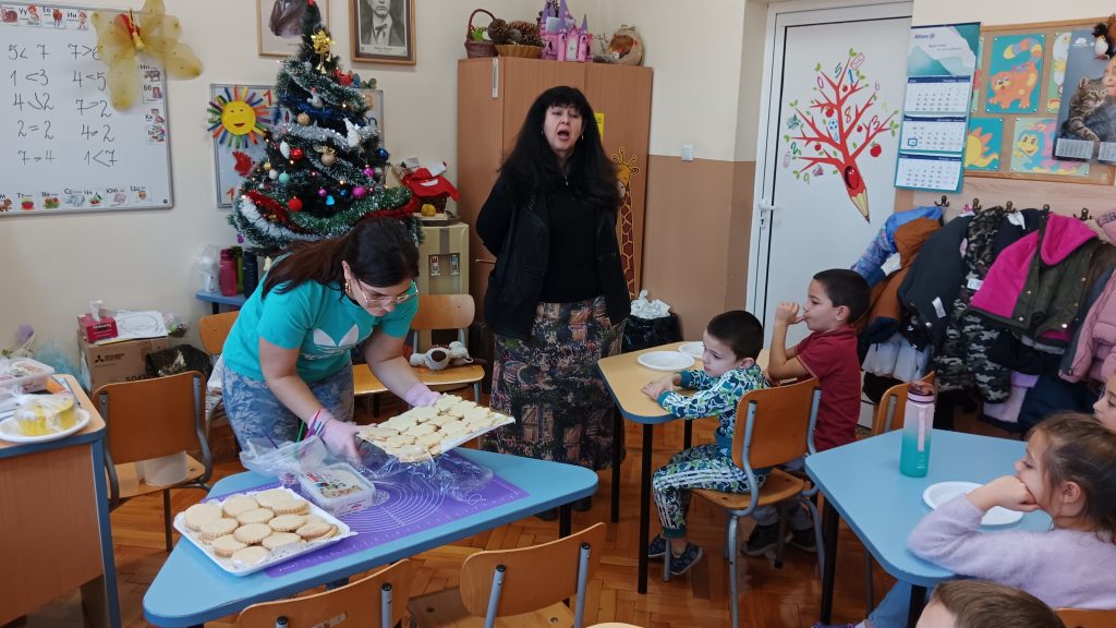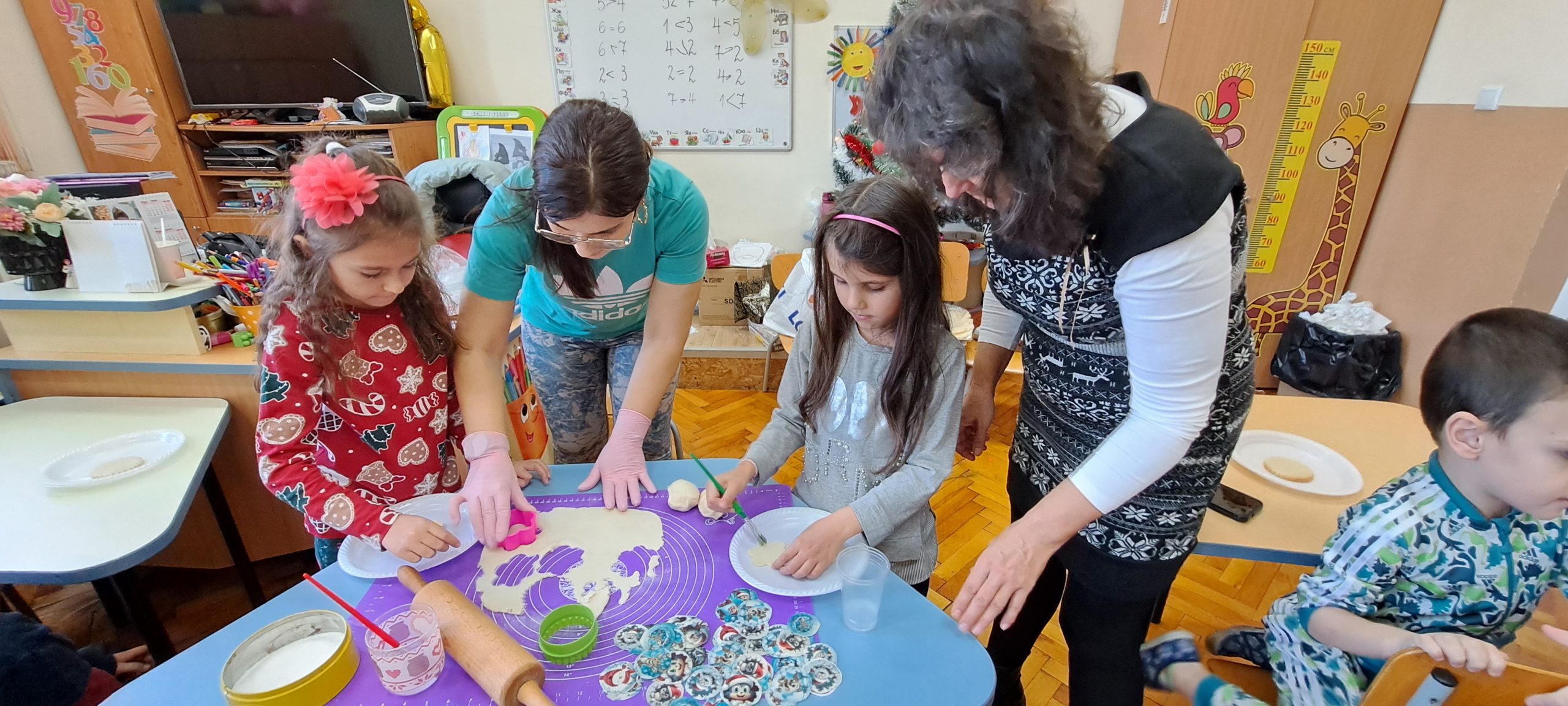 Коледа е любимият празник на малки и големи. Най-приятната част е прекараното време с любимите хора. Но празникът няма да е истински без празничната трапеза и уханието на коледните сладки. Днес малчуганите от подготвителна група, заедно с кулинаря Теди Няголова, участваха в изработването на коледни сладки. Те разбраха какво е фондан и заедно с техния ръководител Валентина Стойкова успяха да декорират красиви коледни курабийки.