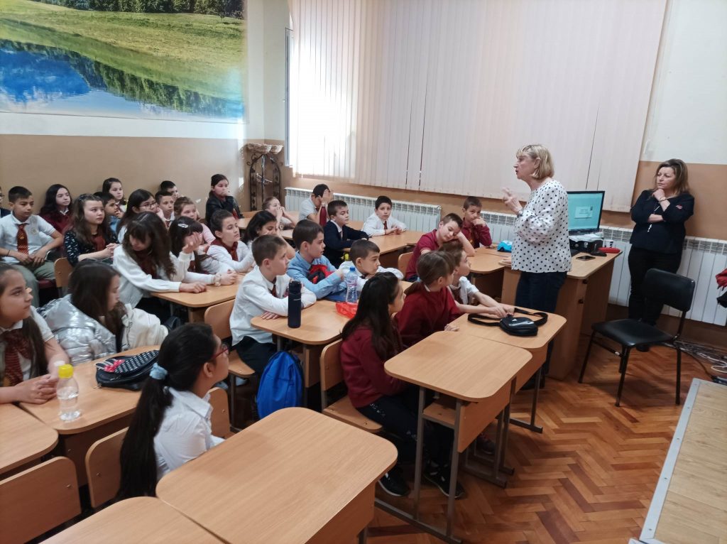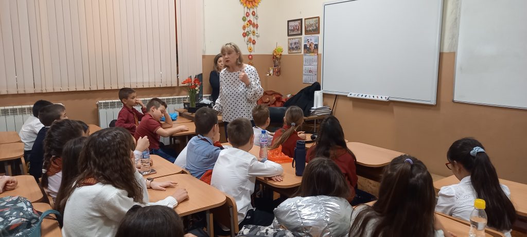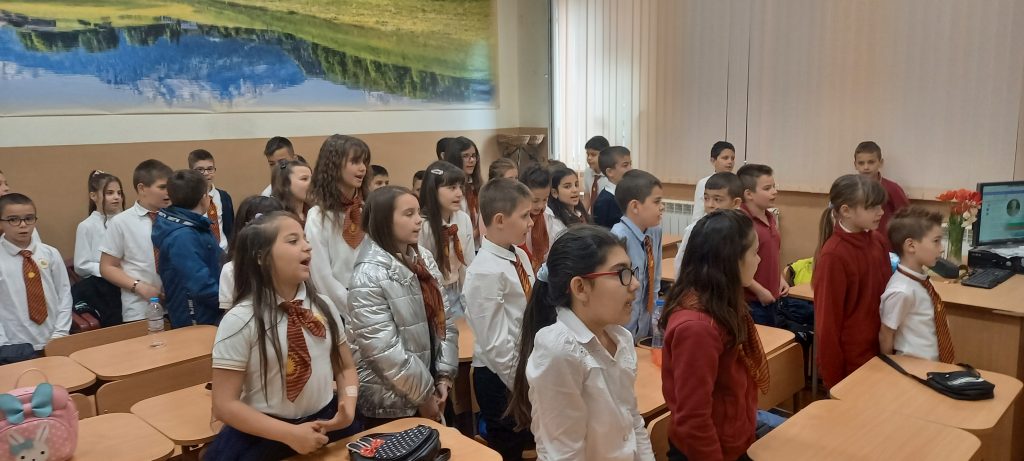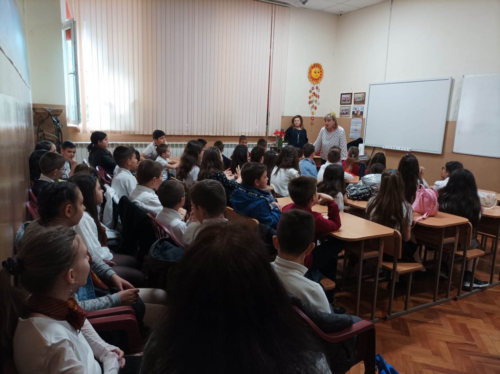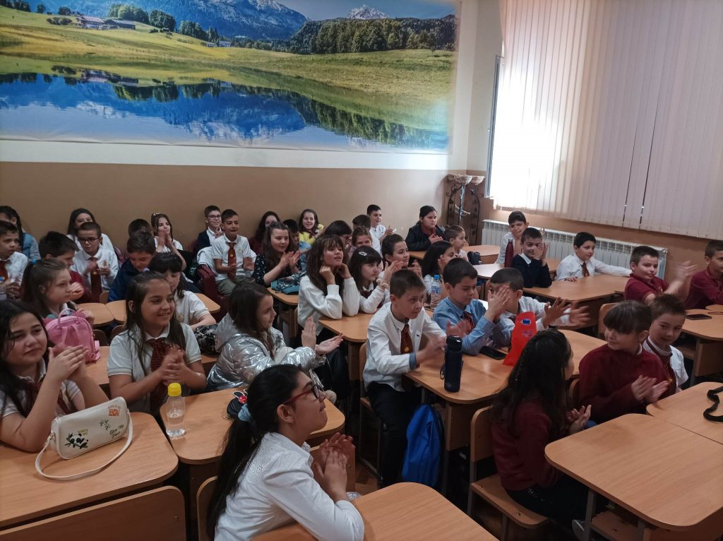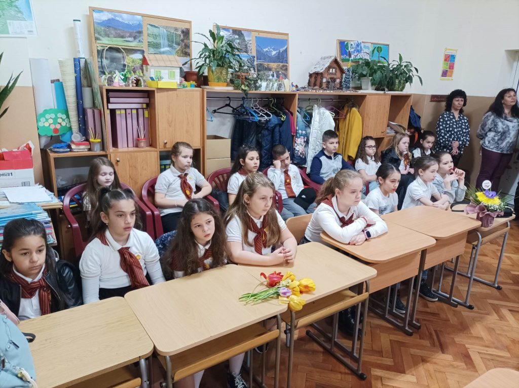 Учениците я поздравиха със стихотворението „ Аз съм българче“ и песента „ Де е България“. Г – жа Маркова разказа увлекателно интересни и не много популярни факти от живота на Вазов – за родния му град, за къщата му в София, за негови произведения и герои. Запленени от разказа и, учениците слушаха внимателно и задаваха много въпроси.