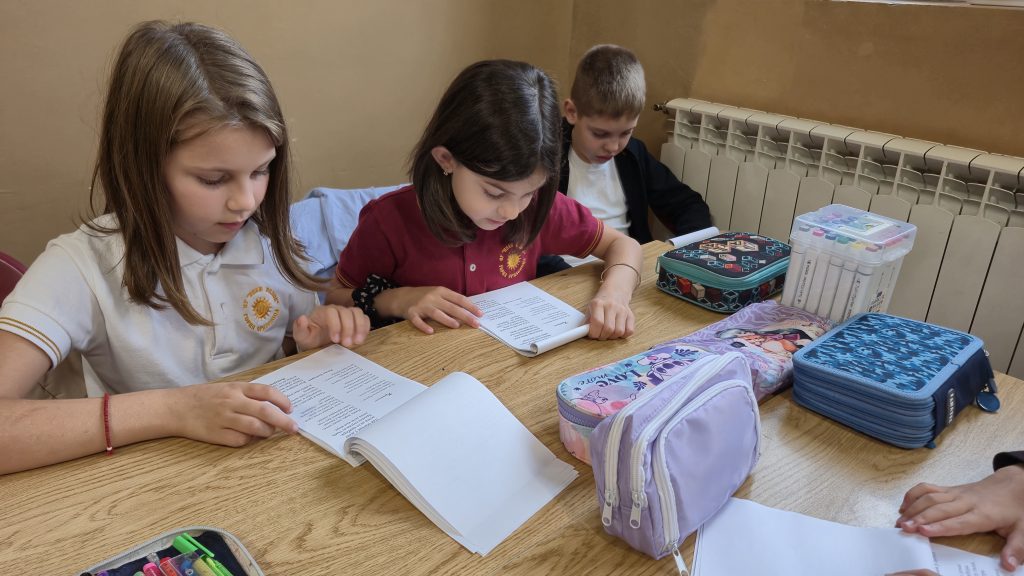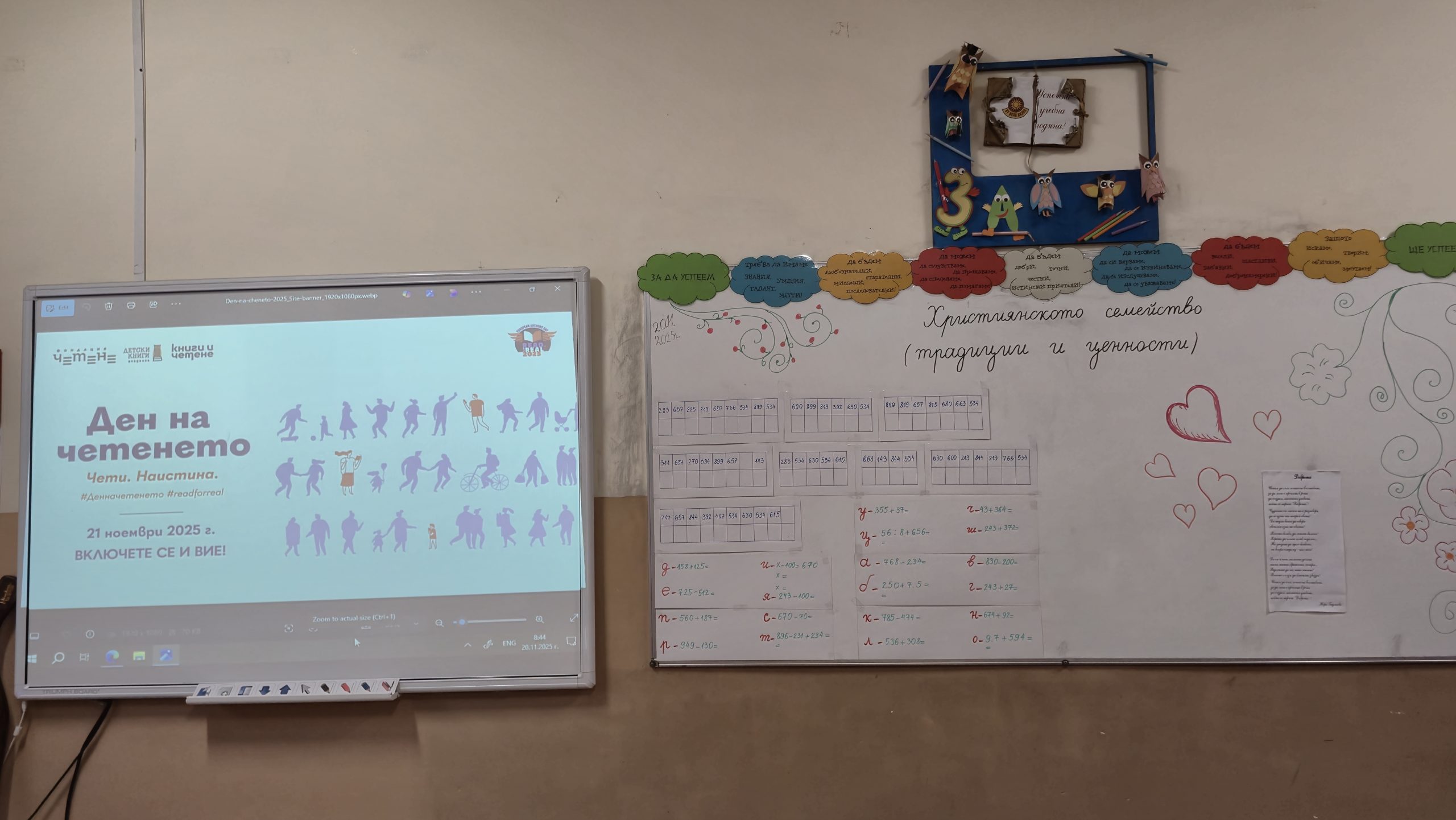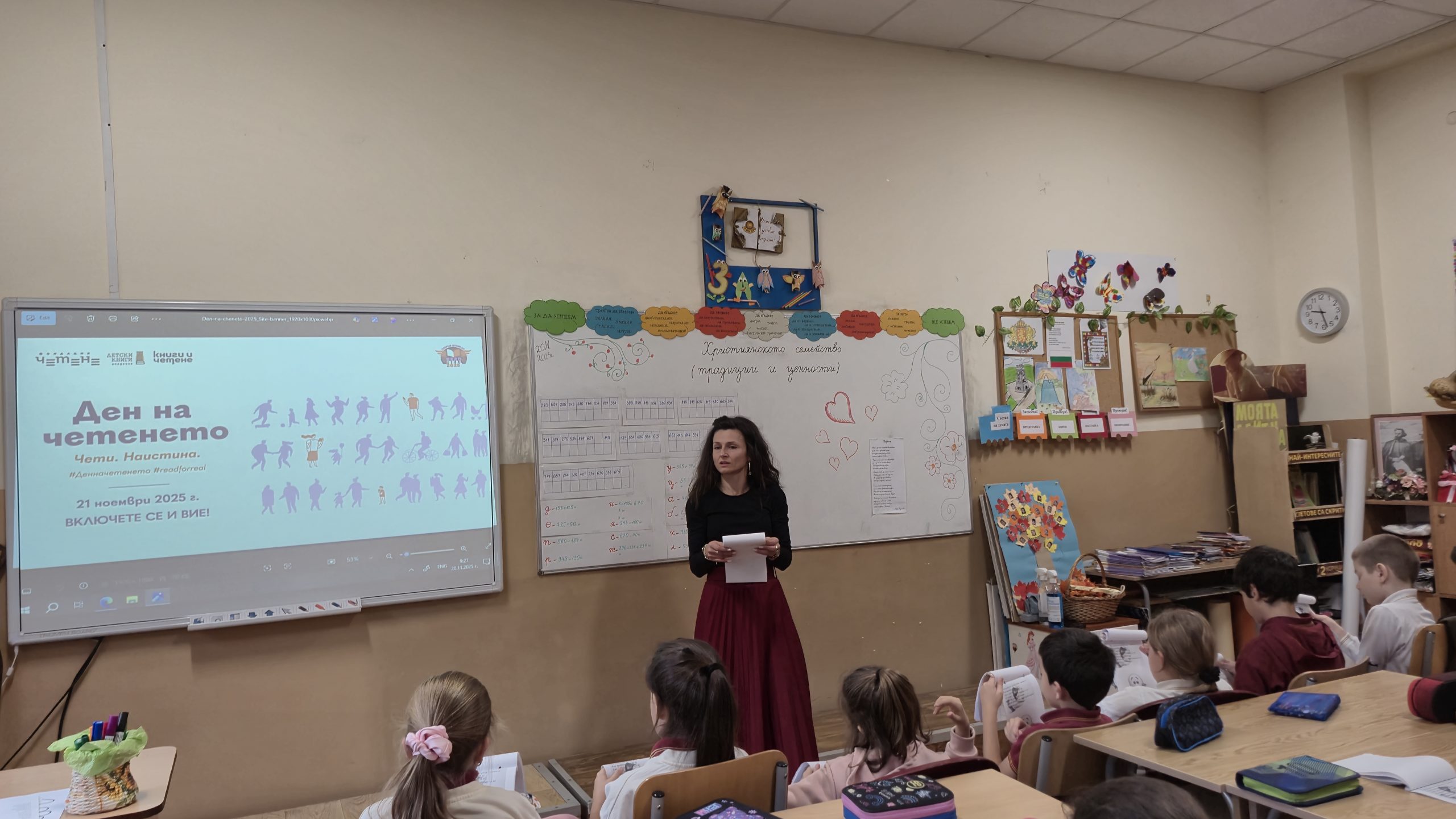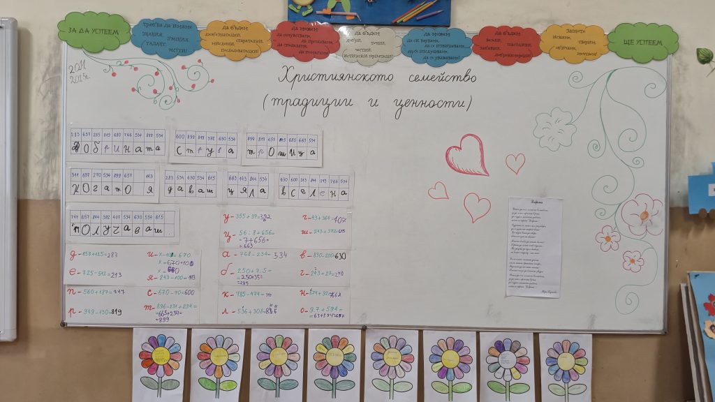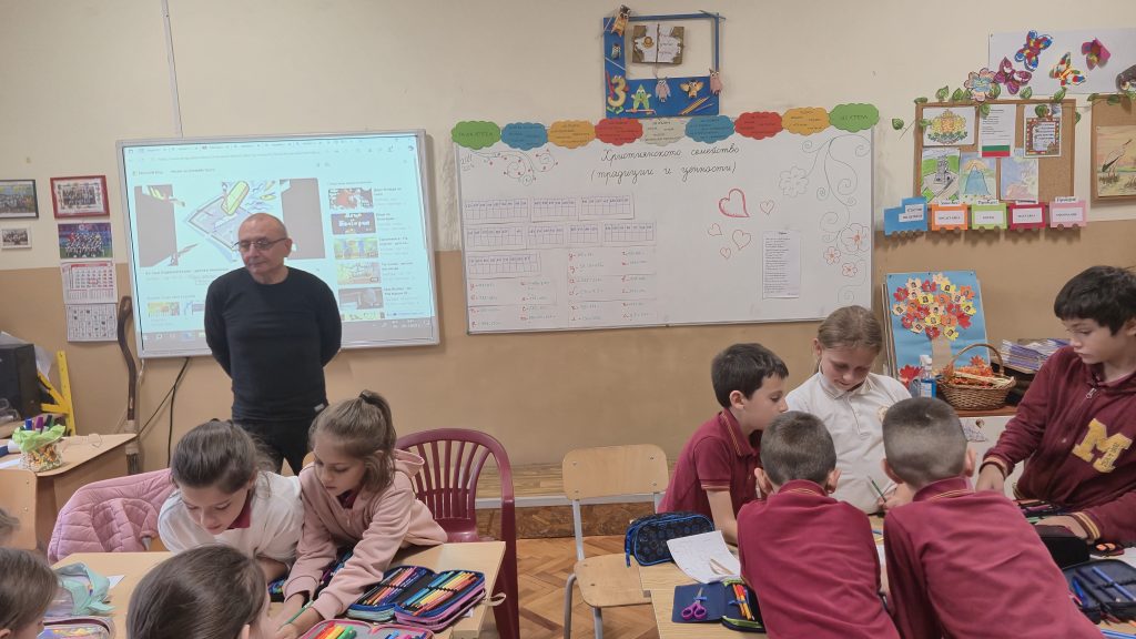 По повод деня на четенето, който тази година се отбелязва на 21 ноември, с проектна дейност се включиха учениците от 3. А и 3. Б клас с класни ръководители Розалия Нанкова и Гергана Манчева. Датата 21 ноември съвпада и с Деня на християнското семейство, което беше много благодатно за разнообразни дейности при представянето на проекта. Третокласниците изработиха в часовете по Технологии и предприемачество книжка, посветена на Деня на християнското семейство, а в интердисциплинарен урок я прочетоха и беседваха за традициите, които съпътстват този празник. Българският фолклор също присъства в проекта. В часовете по изобразително изкуство нарисуваха прекрасни проекти за черги и престилки. По време на урока четоха стихотворения и кратки разкази, свързани със семейството написани от български автори. Разсъждаваха върху ценностите, които се възпитават в семейството. В книжката са включени и много пословици и народни мъдрости. Учениците работиха в екипи като изработиха пъстро цвете, символизиращо как всички сме различни по вкусове, предпочитания, интереси и т. н., но всички ни свързва общото в ценностите в семейството – добротата. Третокласниците успяха да нарисуват в книжката своето семейство, а родословното дърво предстои да бъде изработено в съвместен урок с техните родители. В урока имаше място и за математика. В решаването на математическата загадка се включиха всички ученици и откриха скритата народна мъдрост „Добрината струва трошица – когато я даваш, цяла вселена получаваш.“ Изпяха популярната песен за семейството и се забавляваха. Специален гост на представянето на проекта бе Директорът на училището г-н Иван Момъков, който се включи в провеждането на различните задачи и игри. Урокът завърши с четене на прекрасното стихотворение на Надя Гаджева „Доброта“, с което отново се потвърди колко е хубаво, когато в семейството има уважение, смирение, търпение, разбирателство и любов.