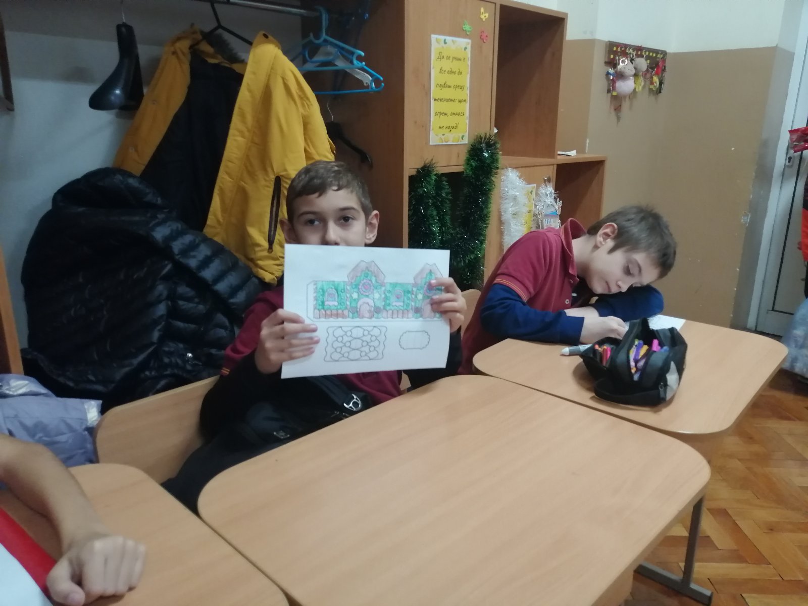 Децата от 3″а“ клас с ръководители г-жа Цонева и г-жа Вълкова изработиха коледни гномчета и къщички. Цветни и интересни, подготвени с огромно старание и творчество., гномчетата вече са част от коледната украса на класната стая.