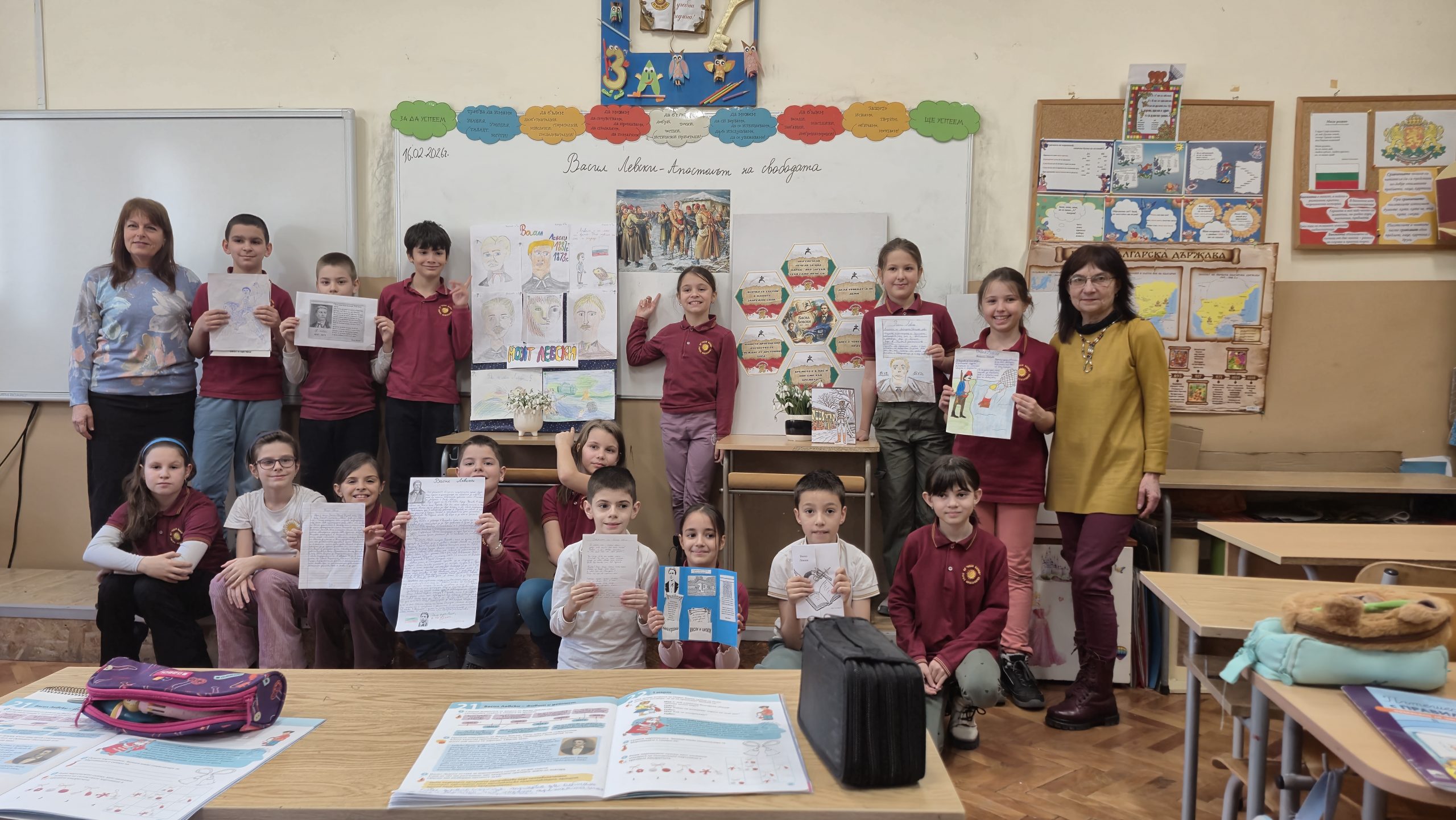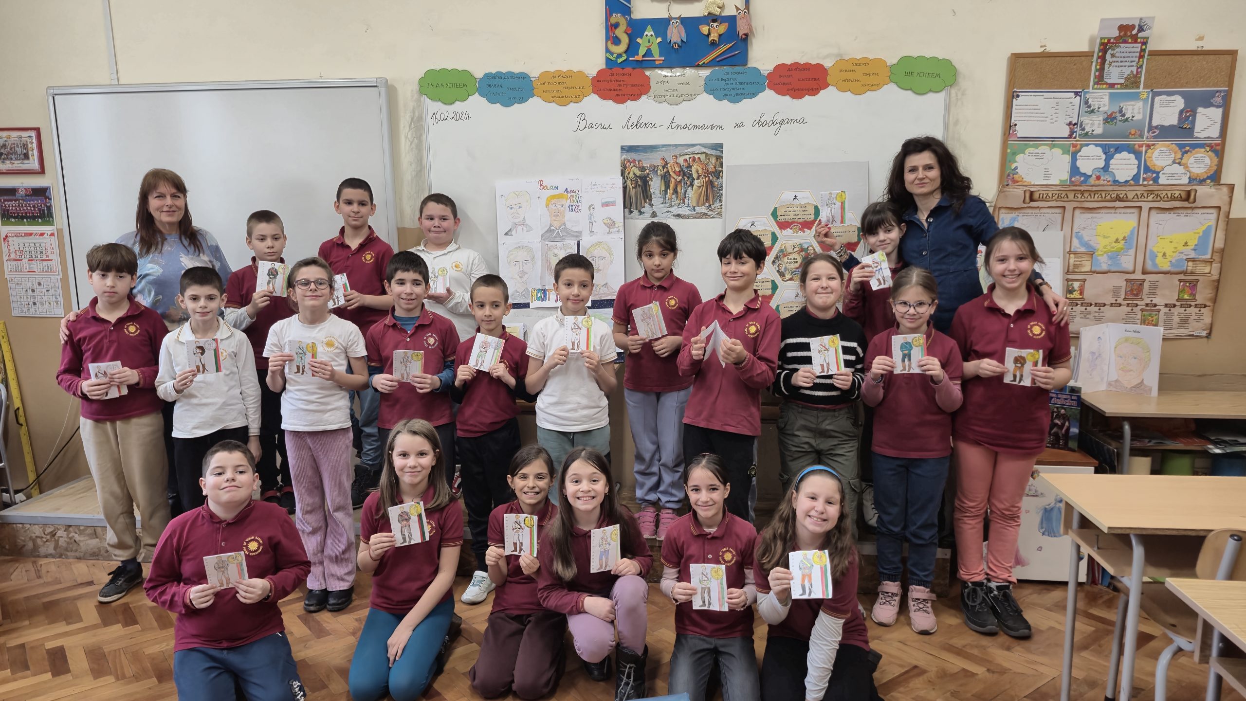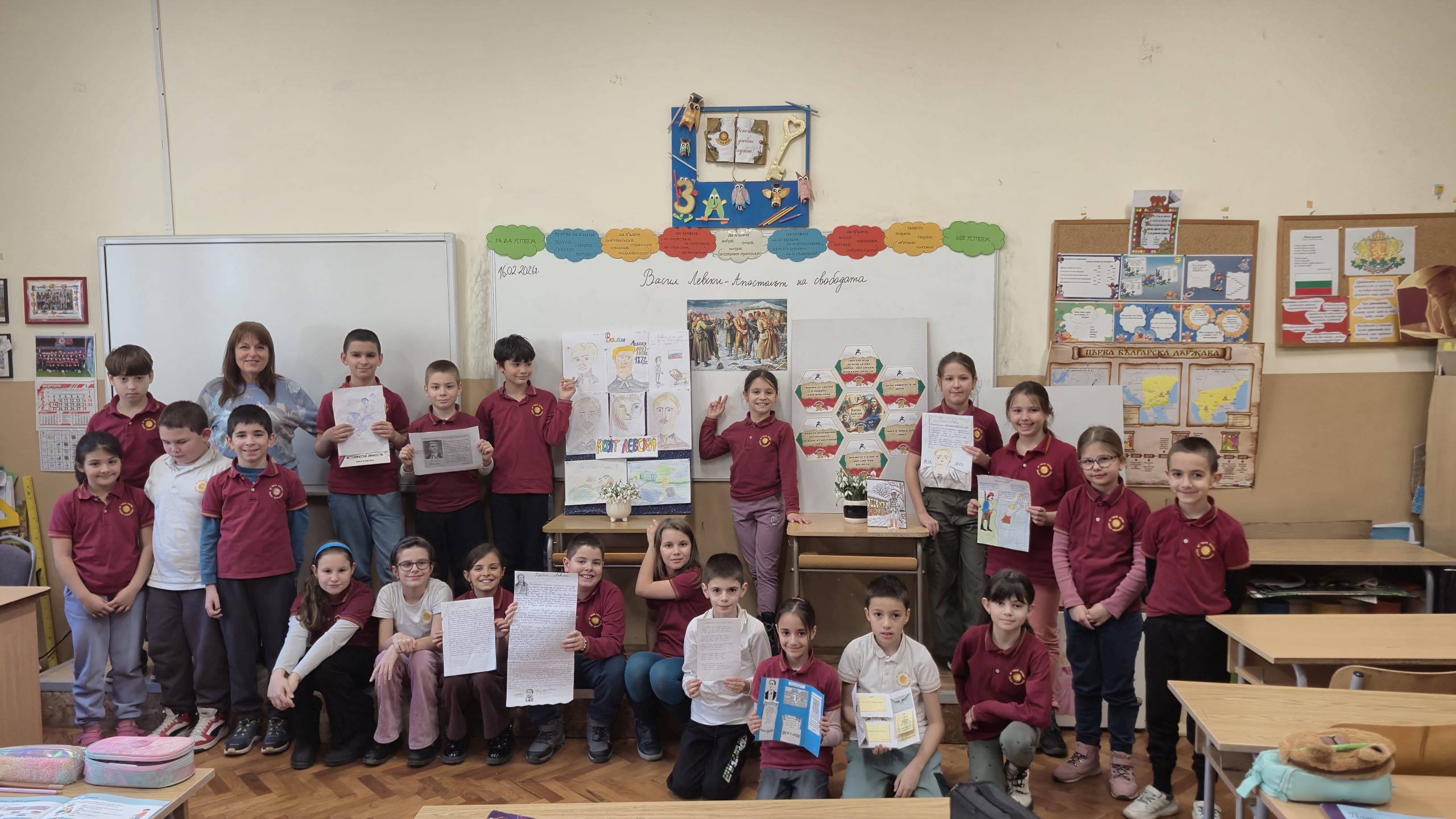По повод 153 годишнината от гибелта на Васил Левски учениците от 3. А клас със своите учители Р. Нанкова, Н. Събева и Г. Манчева  проведоха тържествен час. Изгледаха презентация за живота и дейността  на Васил Левски, чуха актьорски изпълнения на стихове от български поети, посветени на Левски. Учениците рецитираха стихотворения и си припомниха някои цитати, мисли и фрази на Васил Левски, останали  в историята със своята мъдрост и далновидност. Отбелязаха най-важните и паметни моменти от живота на Апостола върху линията на времето. Описваха с думи кой е Левски, назовавайки качествата и превъплъщенията му  като монах, учител, революционер, знаменосец, певец. Изработиха книжка с важни факти от живота и неговото дело.