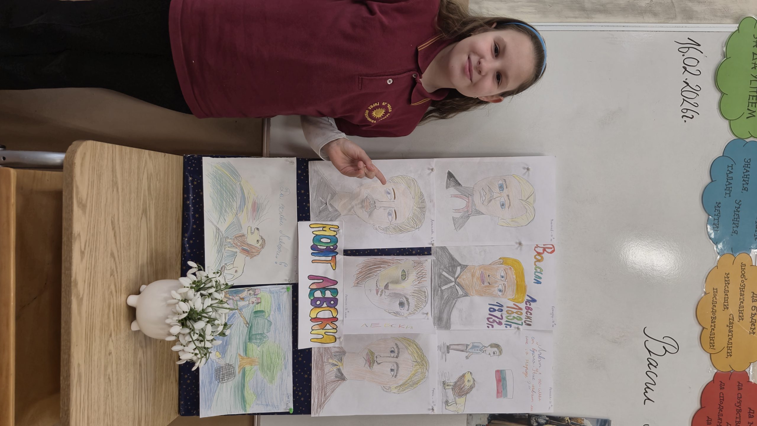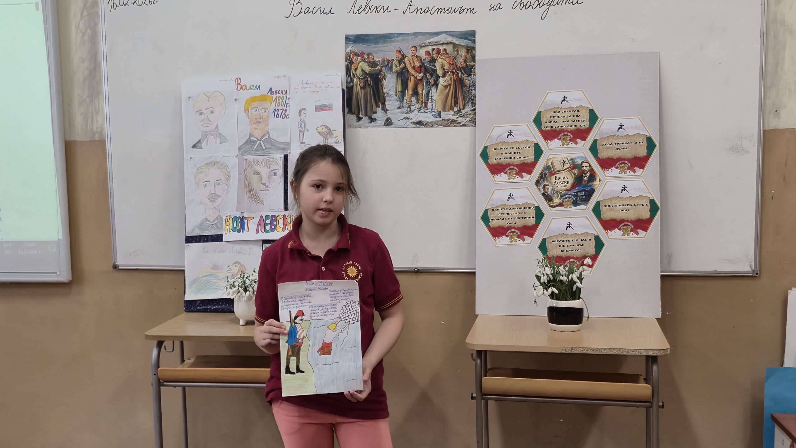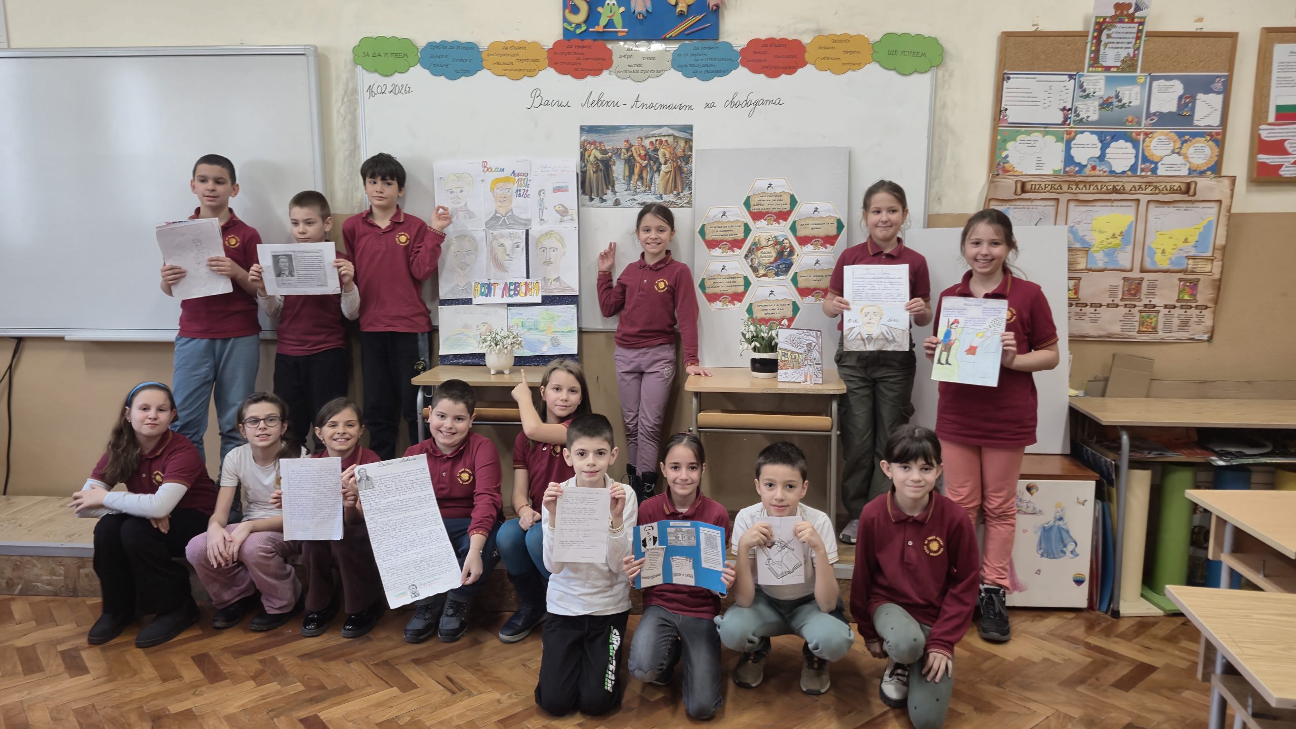 По повод 153 годишнината от гибелта на Васил Левски учениците от 3. А клас със своите учители Р. Нанкова, Н. Събева и Г. Манчева  проведоха тържествен час. Изгледаха презентация за живота и дейността  на Васил Левски, чуха актьорски изпълнения на стихове от български поети, посветени на Левски. Учениците рецитираха стихотворения и си припомниха някои цитати, мисли и фрази на Васил Левски, останали  в историята със своята мъдрост и далновидност. Отбелязаха най-важните и паметни моменти от живота на Апостола върху линията на времето. Описваха с думи кой е Левски, назовавайки качествата и превъплъщенията му  като монах, учител, революционер, знаменосец, певец. Изработиха книжка с важни факти от живота и неговото дело.