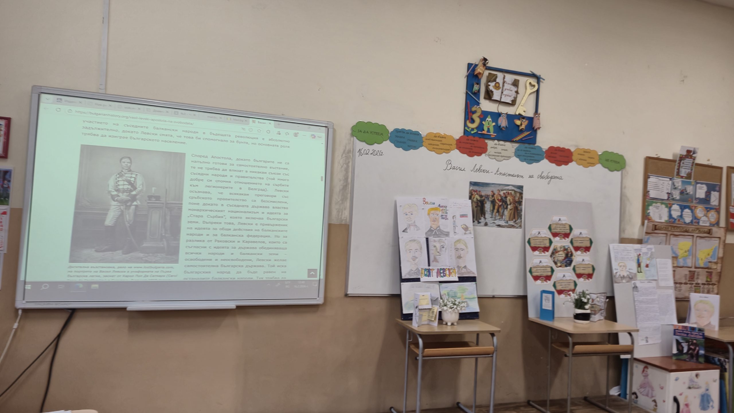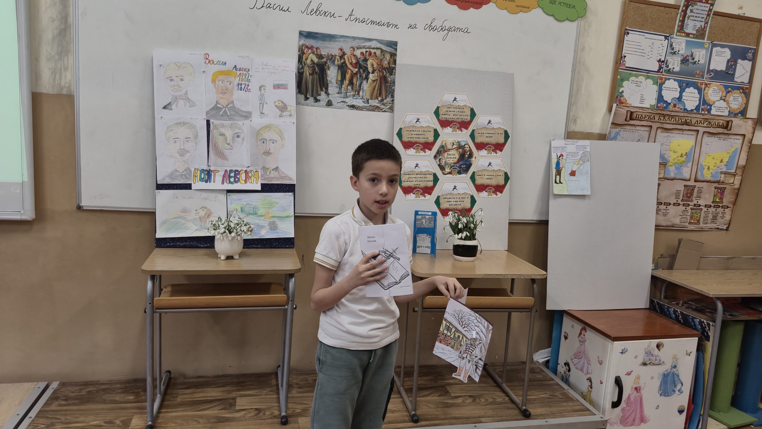 Подготовката за часа включваше и изработване на тематичен кът, в който третокласниците рисуваха портрета на Васил Левски, преписваха стихове за него,  подредиха красиво негови мисли и фрази, донесоха цветя в знак на признателност и уважение пред националния герой и олицетворение на честност, почтеност и отдаденост на родината.