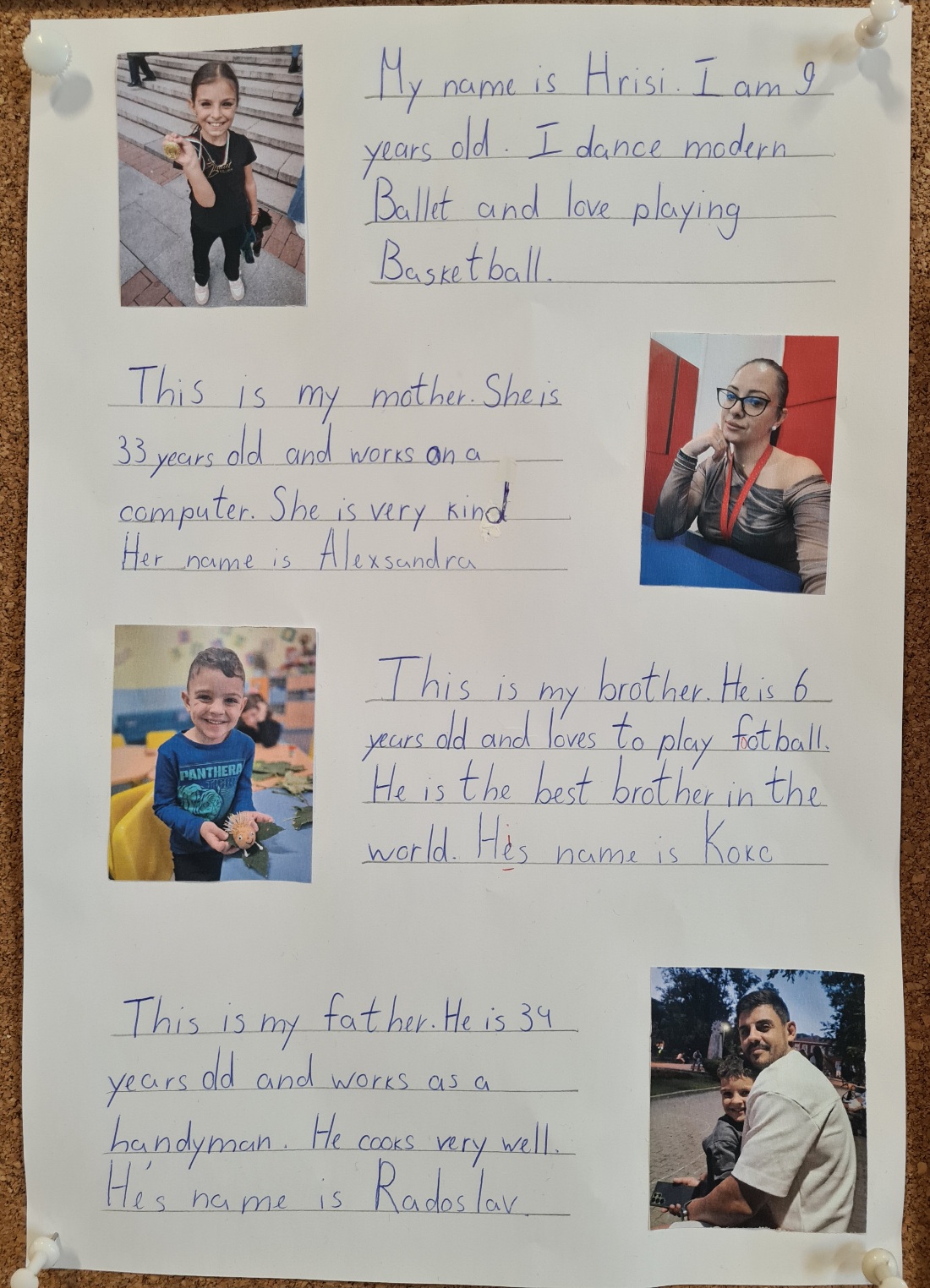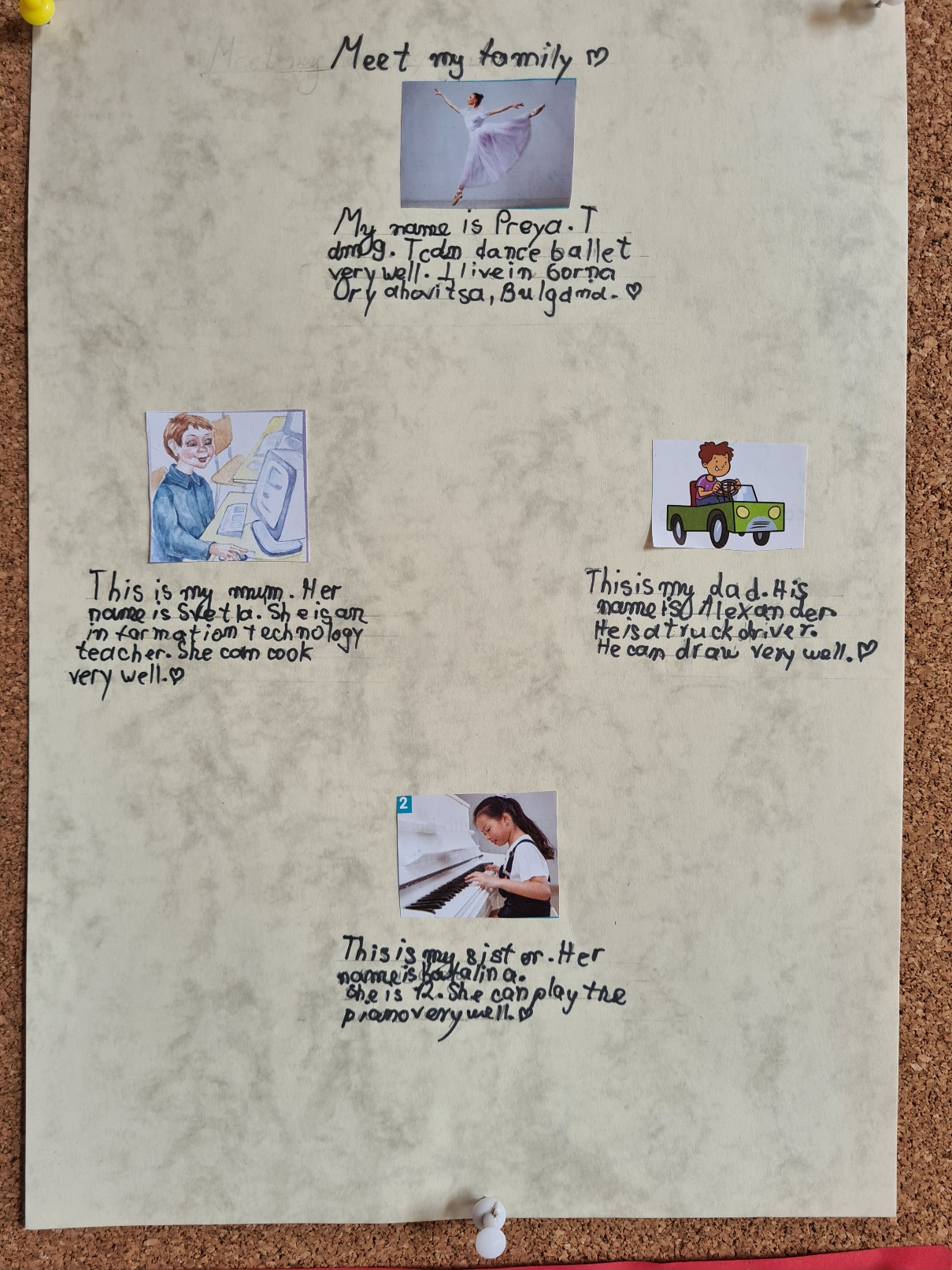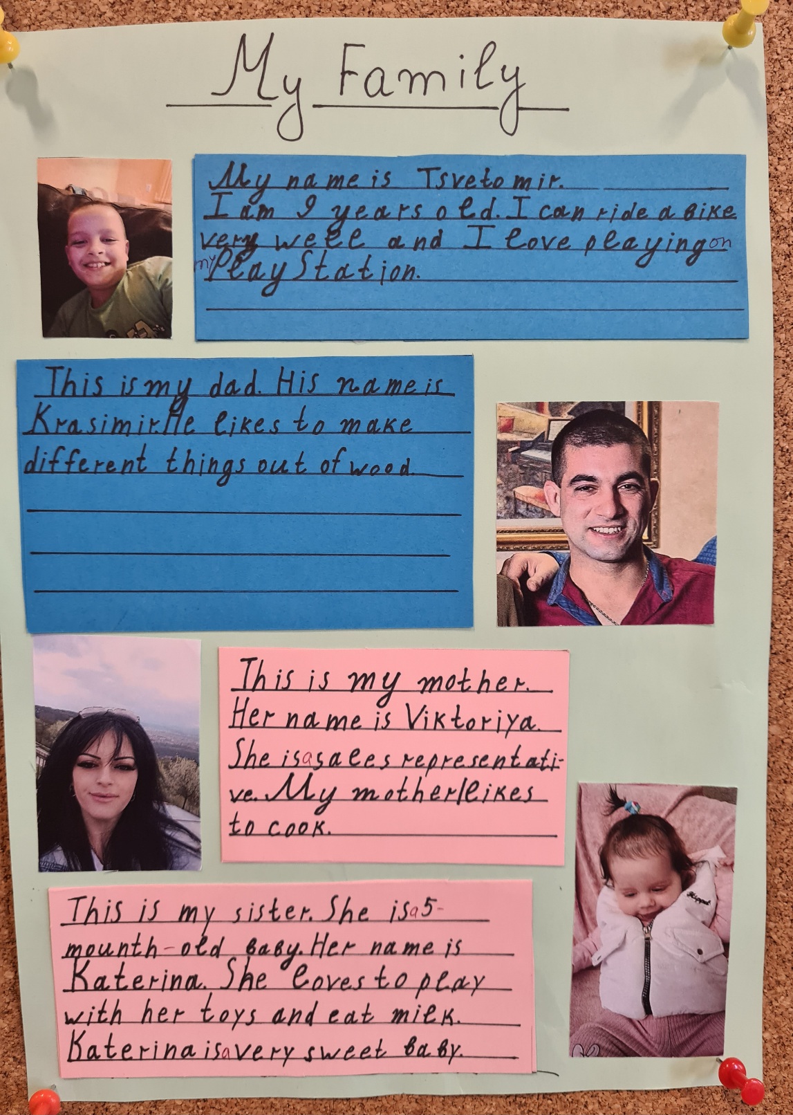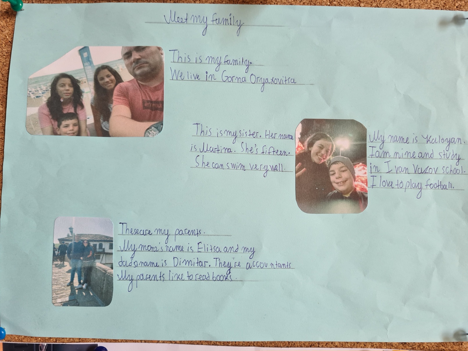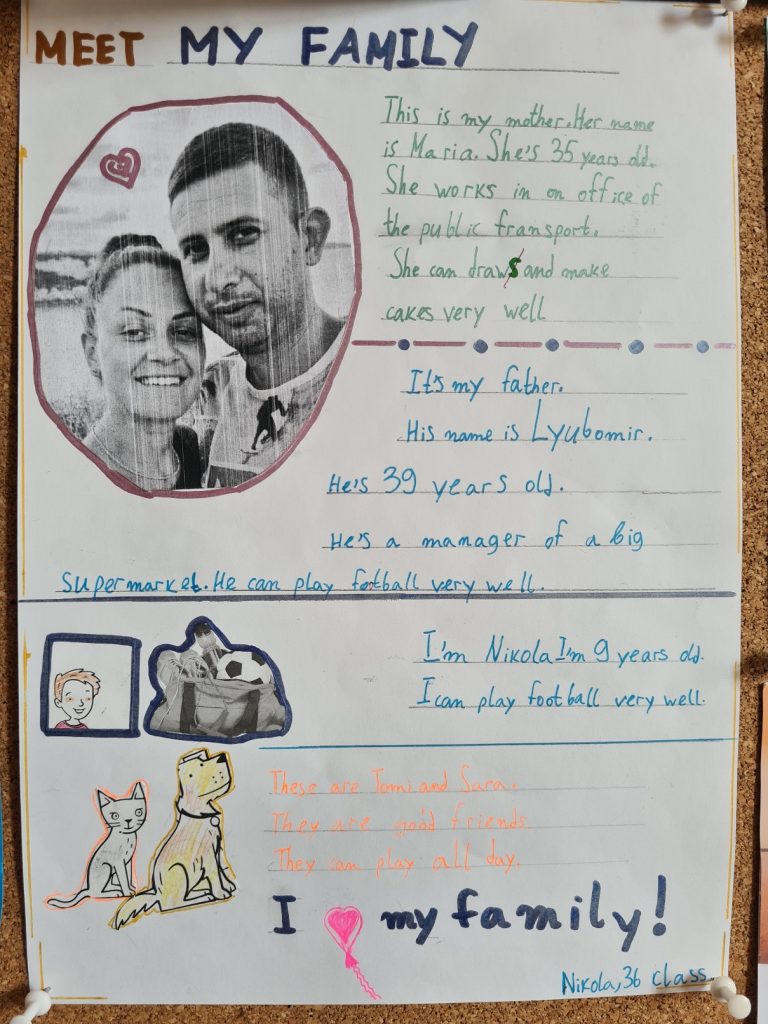 Учениците от 3 клас на ОУ „Иван Вазов“ вече могат да представят себе си и членовете на семейството си на английски език, споделя техният преподавател Светлана Ненова. С голямо желание и старание те изработиха проекти на тема „Meet my family“ (Запознайте се с моето семейство) и ги представиха пред съучениците си. Докато изработваха проектите си, учениците обогатиха езиковия си запас с нови думи за професии, хобита и занимания през свободното време.