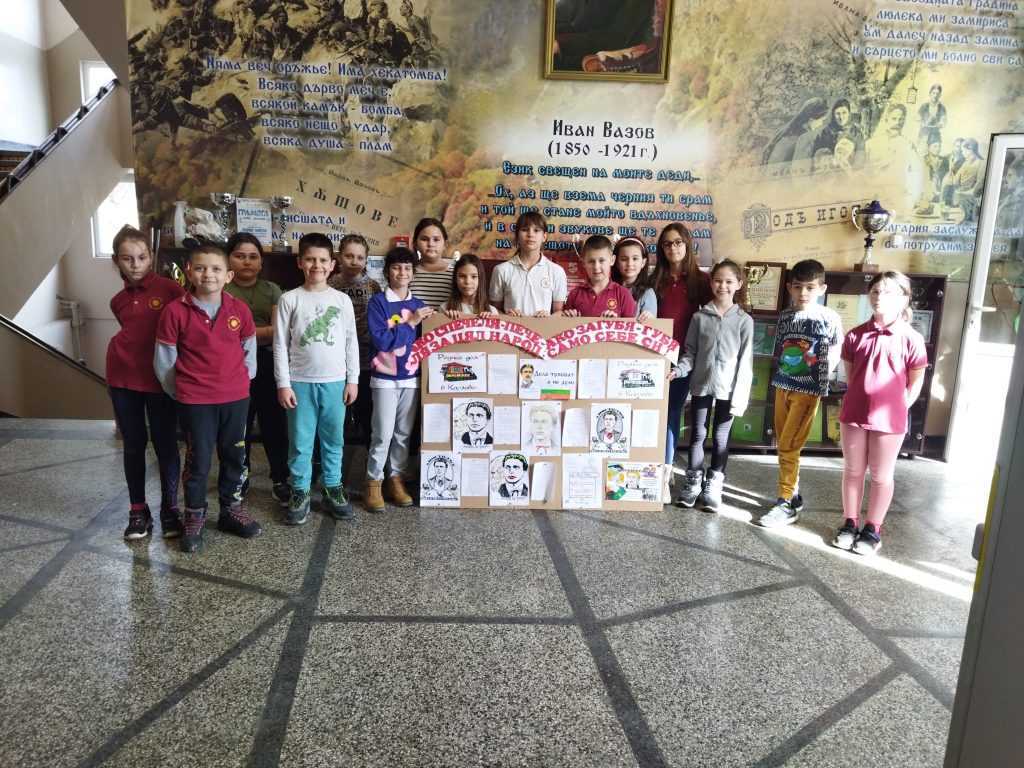 с помощта на техните ръководители Елена Тодорова и Нели Събева подготвиха изложба. С желание и ентусиазъм децата оцветиха рисунки с портрета на