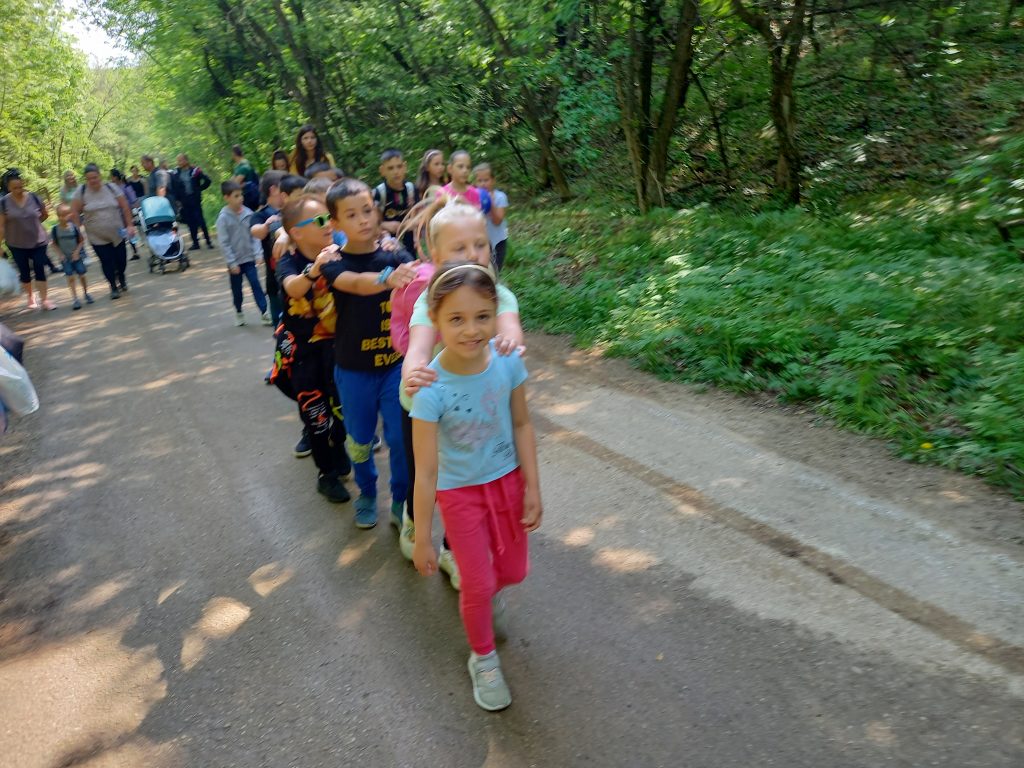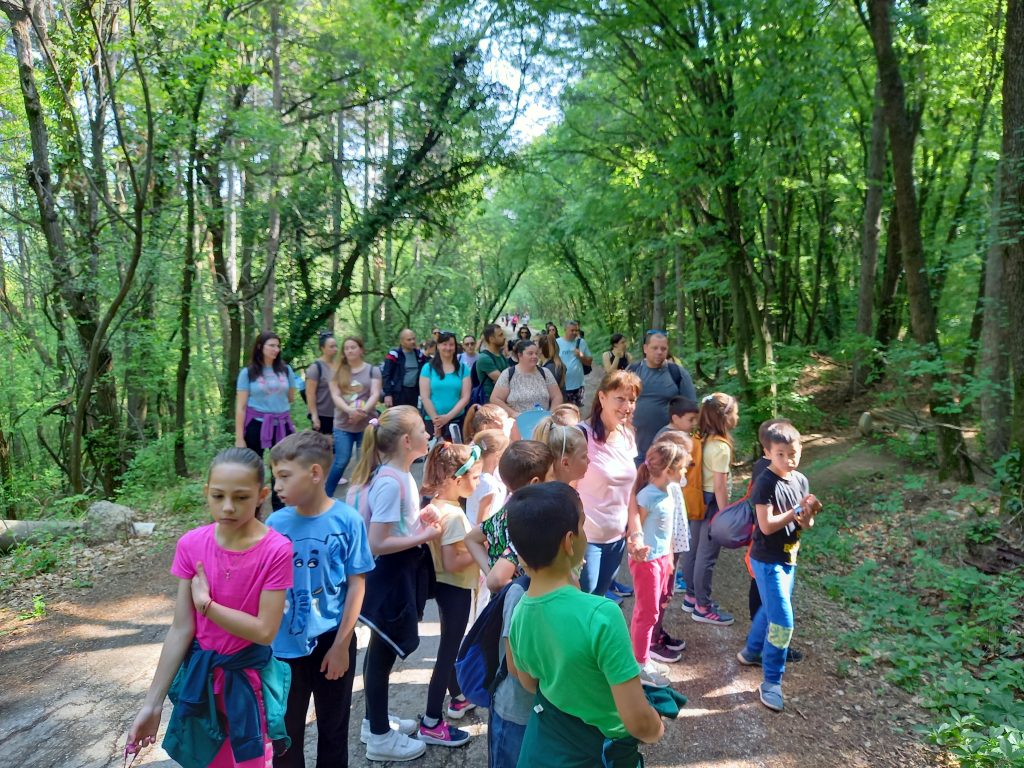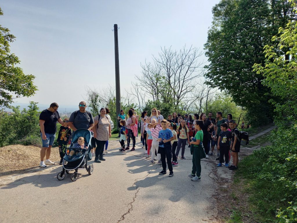Една от инициативите, които осъществиха през почивните дни учениците от 1. А и 1. Б клас с класни ръководители Розалия Нанкова и Гергана Манчева, заедно със своите родители, беше тристически поход до хижа „Божур“. Походът беше и като открит урок по родинознание за първокласниците, наблюдавайки промените в природата през пролетта. Учениците откриваха и назоваваха, с помощта на своите родители различни видове дървета и тревисти растения, най-различни насекоми, птици, както и някои животни, които се срещат в нашия роден край. Специално внимание бе обърнато на опазване на природата. Децата сами посочваха примери как да я опазваме и какво трябва да правим, за да могат всички да се наслаждават на красота ѝ. В защитената природно забележителност местността „Божур поляна“ учениците видяха в естествена среда цъфнал див божур – един от символите на нашия град и впечатлени от красивата природа рецитираха стихотворението „Аз съм българче“, чийто автор е патриархът на българската литература Иван Вазов. Остана време и за свободни игри, в които се включиха и родителите.