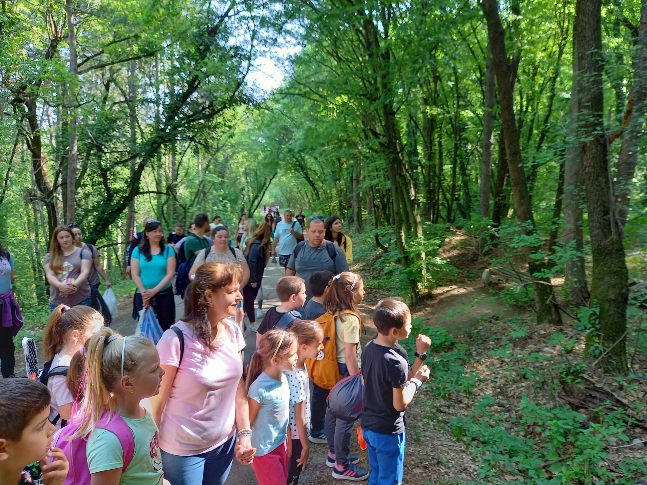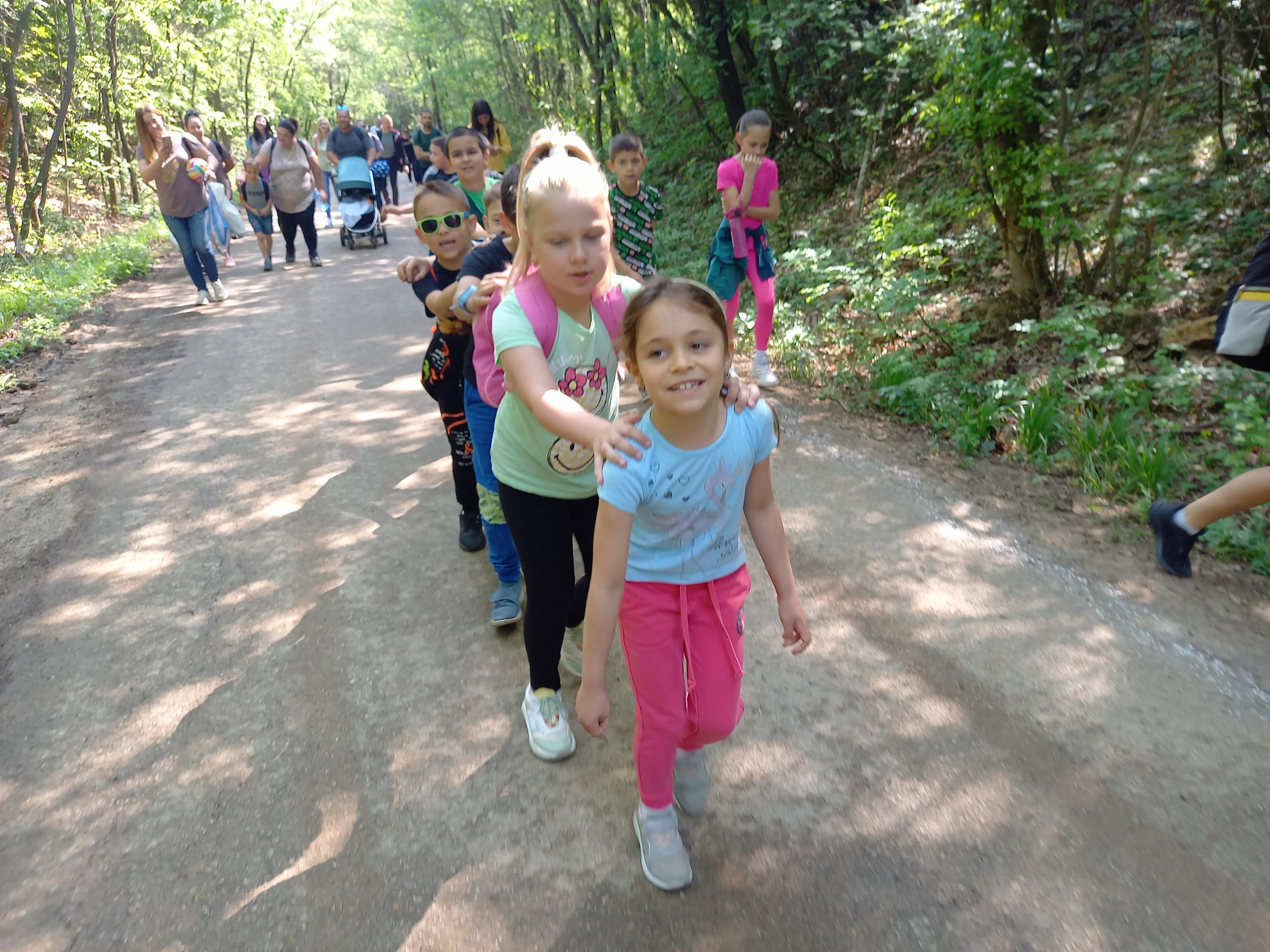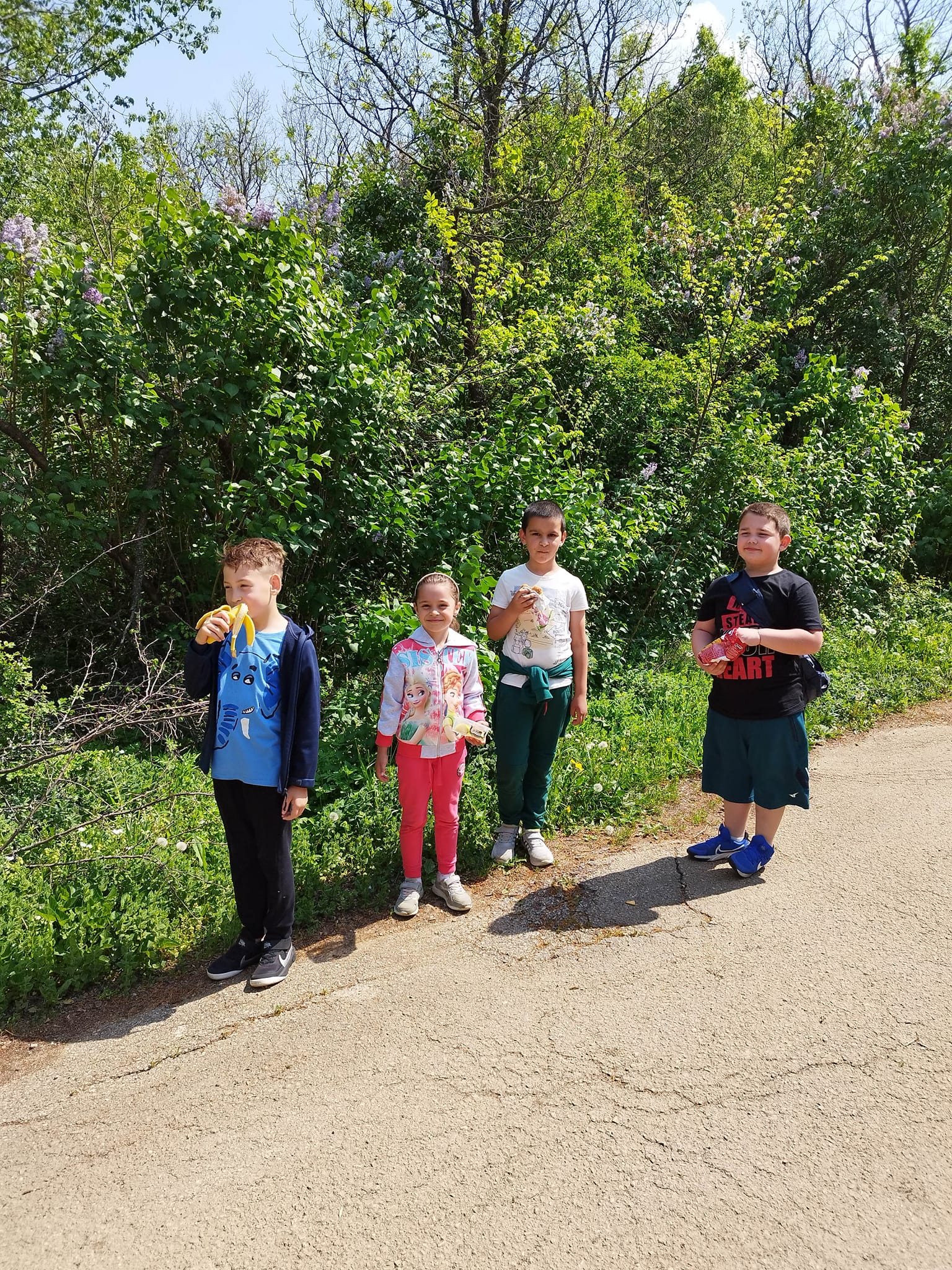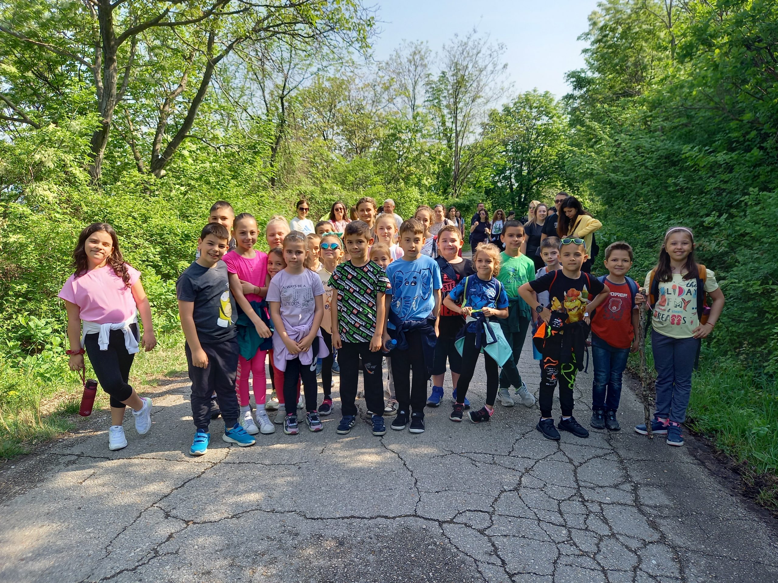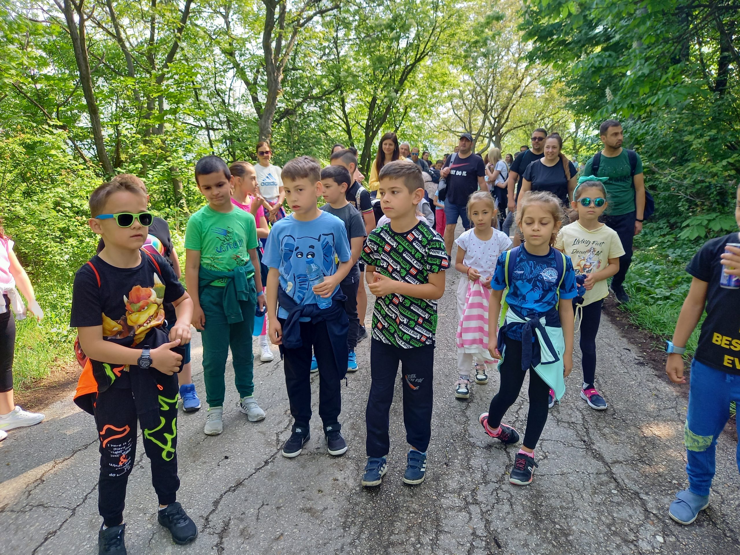 Една от инициативите, които осъществиха през почивните дни учениците от 1. А и 1. Б клас с класни ръководители Розалия Нанкова и Гергана Манчева, заедно със своите родители, беше тристически поход до хижа „Божур“. Походът беше и като открит урок по родинознание за първокласниците, наблюдавайки промените в природата през пролетта. Учениците откриваха и назоваваха, с помощта на своите родители различни видове дървета и тревисти растения, най-различни насекоми, птици, както и някои животни, които се срещат в нашия роден край. Специално внимание бе обърнато на опазване на природата. Децата сами посочваха примери как да я опазваме и какво трябва да правим, за да могат всички да се наслаждават на красота ѝ. В защитената природно забележителност местността „Божур поляна“ учениците видяха в естествена среда цъфнал див божур – един от символите на нашия град и впечатлени от красивата природа рецитираха стихотворението „Аз съм българче“, чийто автор е патриархът на българската литература Иван Вазов. Остана време и за свободни игри, в които се включиха и родителите.