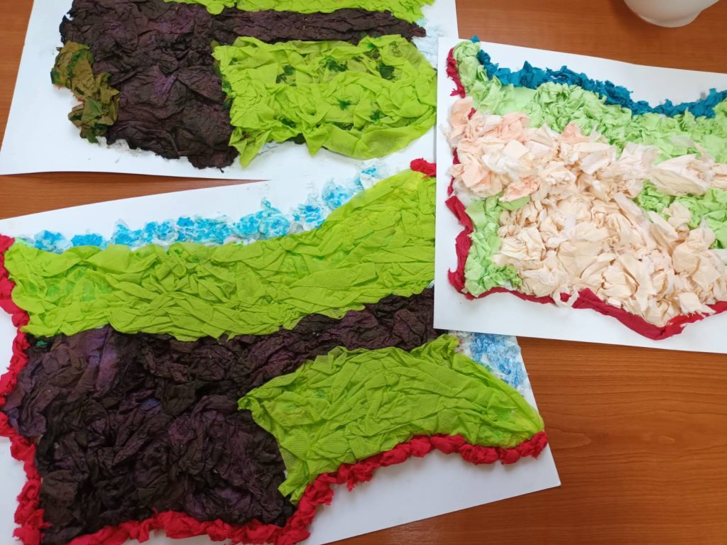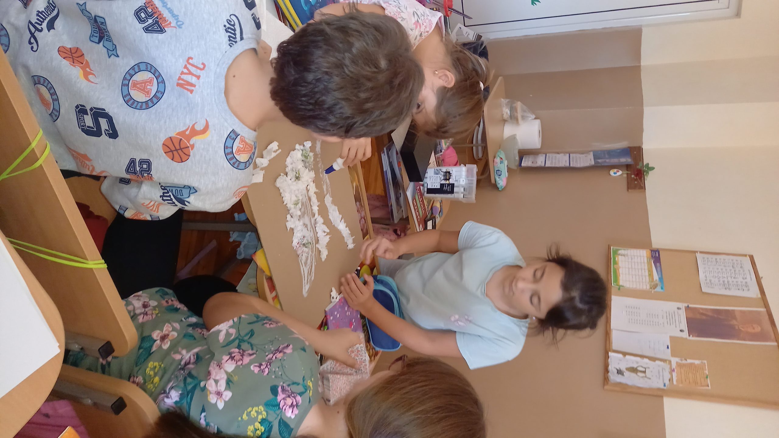 Теоретичните знания и практическите умения се използваха така,че да подпомогнат знанията за повърхнината на България и същевременно се усвоиха нови техники за работа по изобразително изкуство.Това бе и мини-лаборатория за изучаване свойствата на някои материали – знания ,които също са залегнали в учебния материал.
