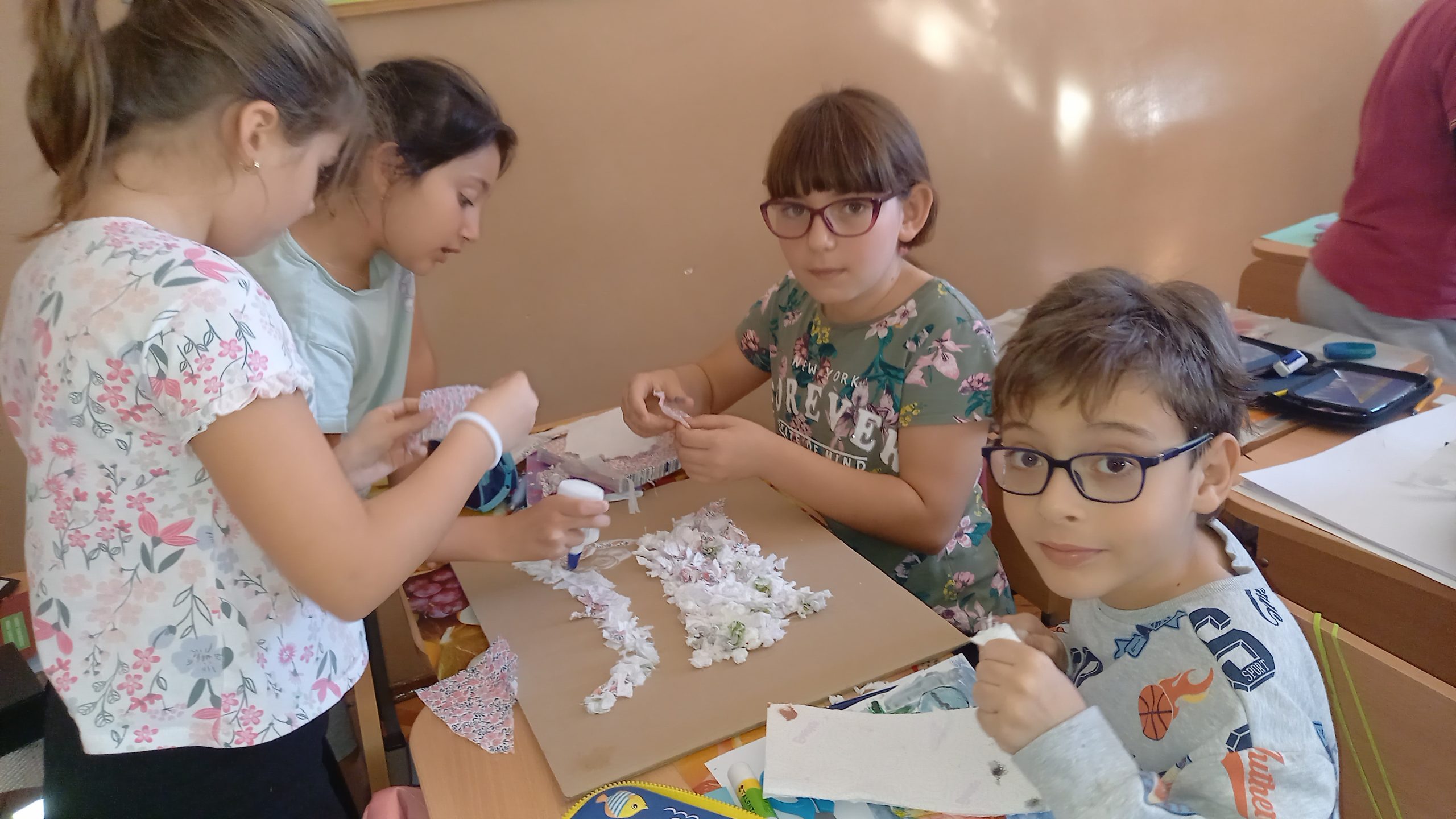 Бинарен урок в няколко часа проведоха г-жа Маринова и г-жа Нанкова,базирайки се на знанията ,уменията и залагайки на пропедевтиката в часовете по изобразително изкуство и човекът и обществото.