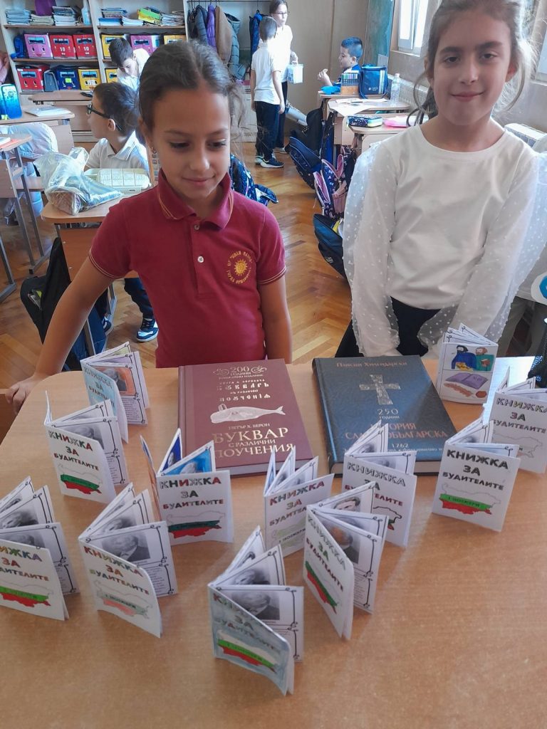Децата изработиха книжки за народните будители, попълваха кръстословици, участваха в дейност за краснопис и четоха откъси от „Буквар с различни поучения“ от Петър Берон. В края на урока г-жа Баланова-гост на второкласниците, ги поздрави за проявеното творчество, за ентусиазма и въодушевлението.