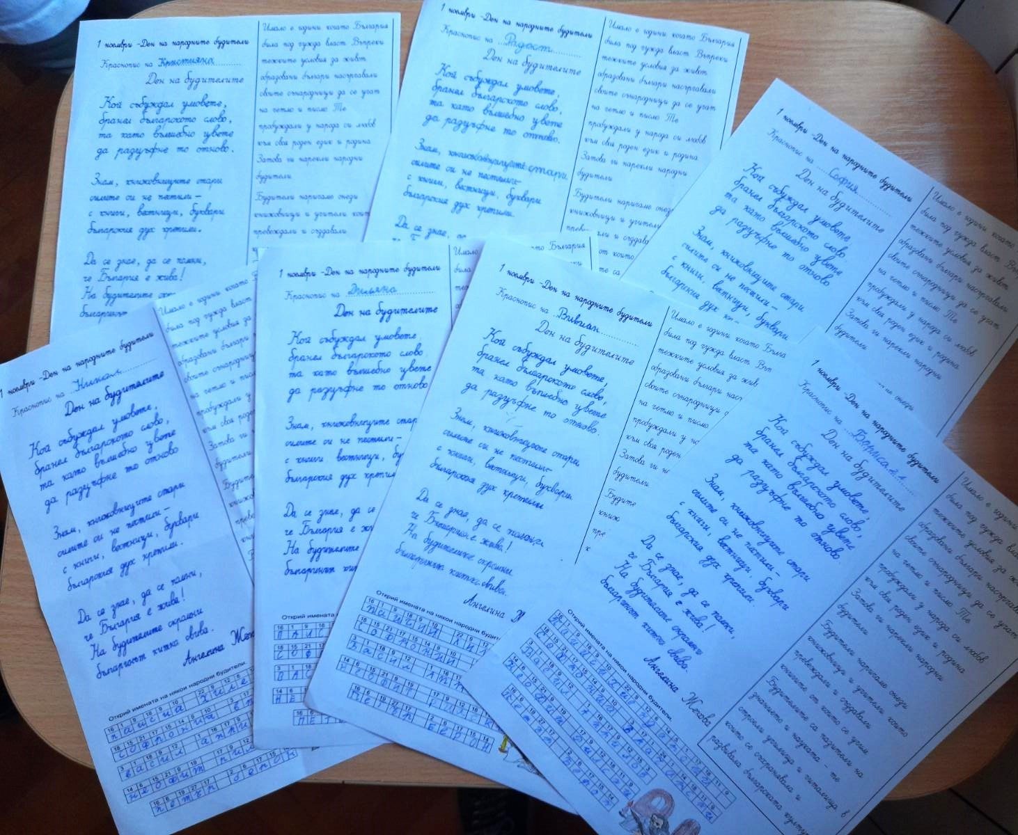 Децата изработиха книжки за народните будители, попълваха кръстословици, участваха в дейност за краснопис и четоха откъси от „Буквар с различни поучения“ от Петър Берон. В края на урока г-жа Баланова-гост на второкласниците, ги поздрави за проявеното творчество, за ентусиазма и въодушевлението.