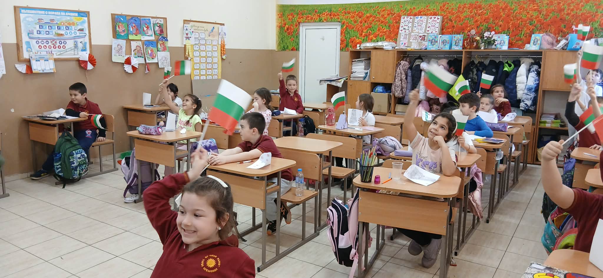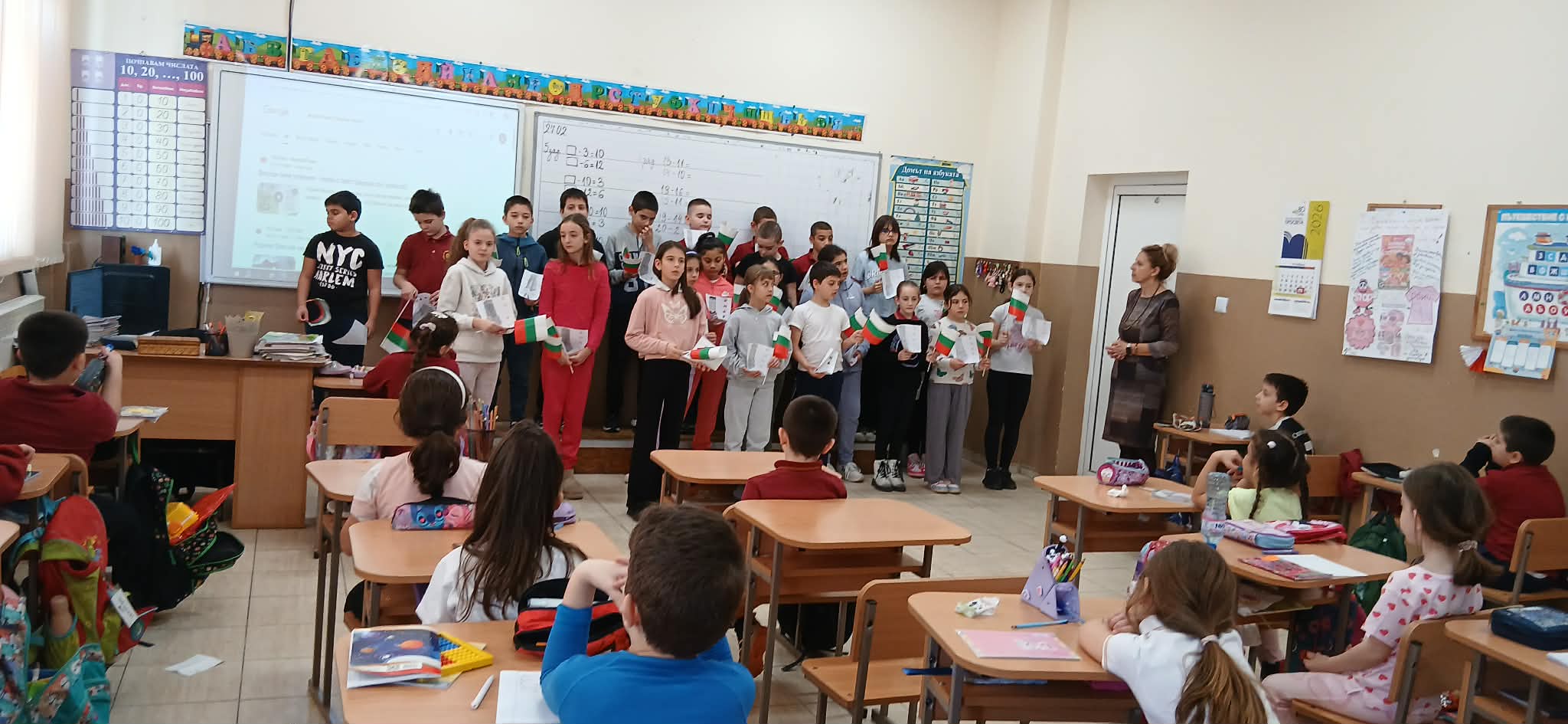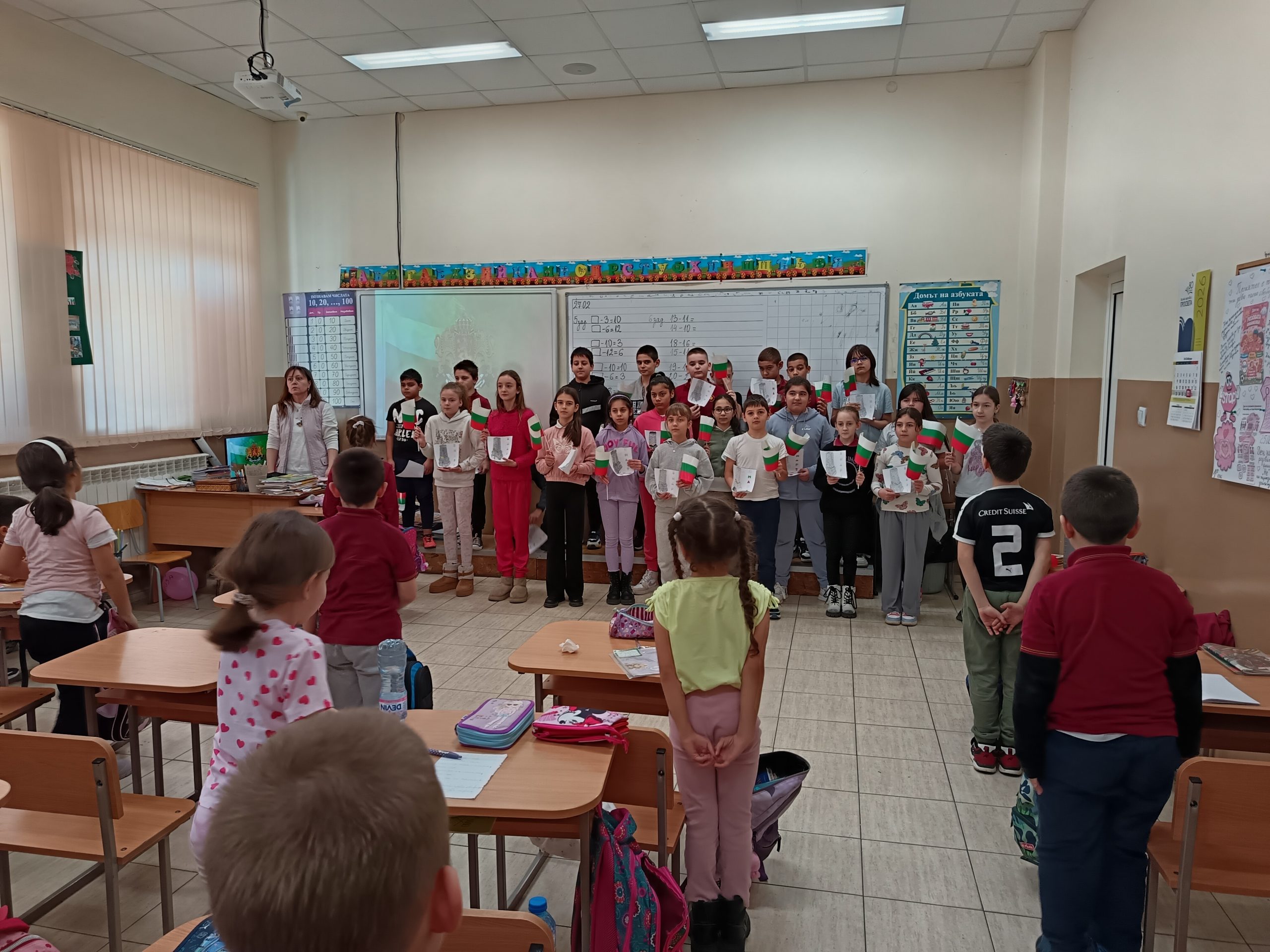 Учениците от 4.а и 1.б клас отбелязаха Трети март – националния празник на България.С почит и преклонение пред паметта на загиналите за свободата на родината те изразиха своята признателност чрез стихове и песни, посветени на героите.Малките ученици получиха макет на паметника на връх Шипка и българското знаме като символ на свободата и националната ни гордост.Първокласниците също поздравиха своите по-големи приятели с весели песни за Баба Марта и внесоха допълнително настроение в празничния ден.