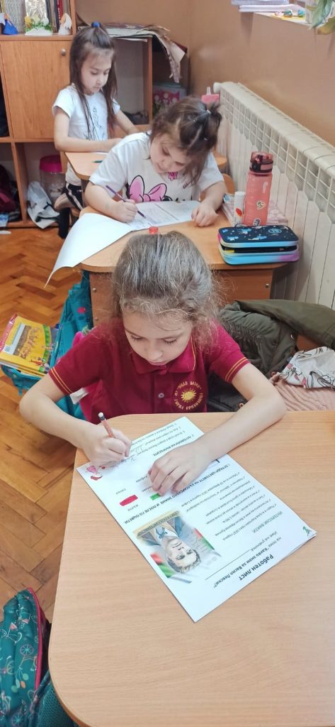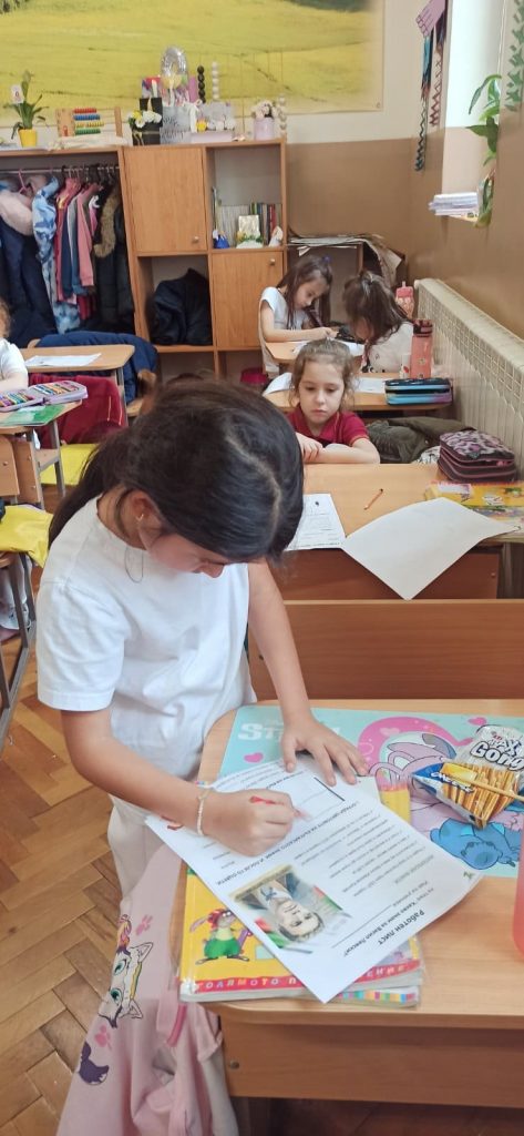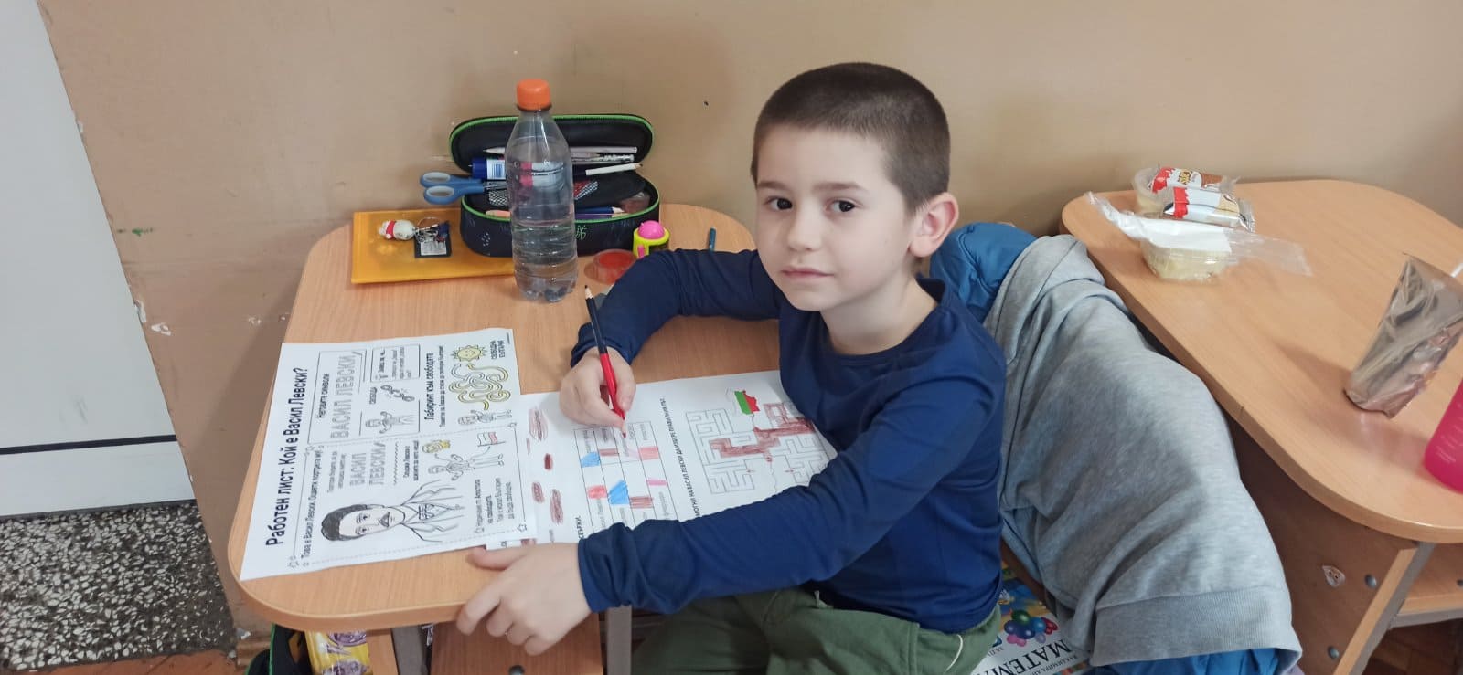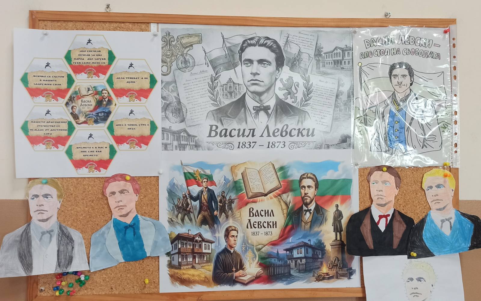 По повод отбелязването на 153 години от гибелта на Васил Левски, учениците от 1. В клас под ръководството на своите учители проведоха час, посветен на най- обичания българин – Апостола на българската свобода.Първокласниците посвоему отдадоха почит към великото му дело – изпълниха работни листи, в които показаха знания за живота, делото и заветите на Левски. Оцветяваха портрети с неговия лик. Четоха биографични данни, пяха детски песни за прослава на  героизма му, преписваха стихове с красив почерк. Част от своите творби подредиха в почетен кът в класната стая.  Личността и подвигът на националния ни герой оставиха ярък пример у децата за храброст, честност и родолюбие.