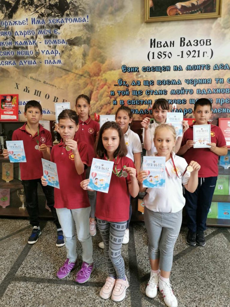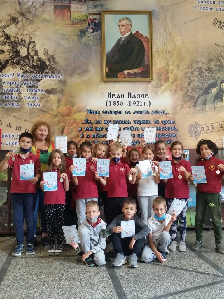 Международният ден на усмивката – 2 октомври, донесе много щастливи усмивки на лицата на ученици от ОУ „Иван Вазов“. За поредна година децата от училището участваха в състезанията, органазирани от Съюза на българските начални учители и Синдиката на българските учители. През учебната 2019/2020 година 108 ученици от 1 до 4 клас демонстрираха на национално ниво знания по роден език, природа, математика и умения в сферата на изкуствата. За отличното си представяне организаторите наградиха 20 ученика със златни медали, още 29 получиха сребърни отличия, а 69 заслужиха почетни грамоти за участие. Заслугата за достойното представяне на учениците от начален курс е на екипа от високо квалифицирани и всеотдайни учители в началния етап на основното образование в ОУ „Иван Вазов“.