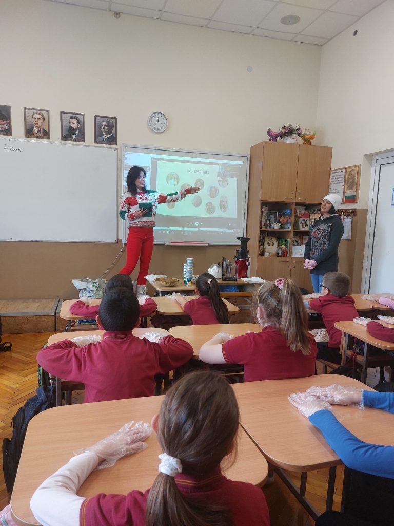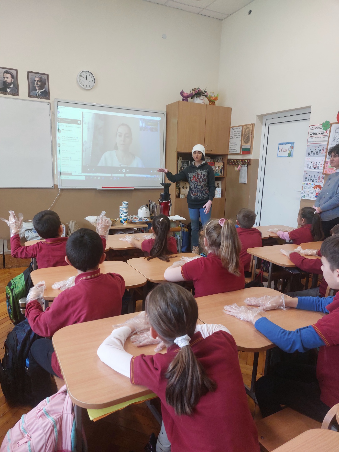 Учениците имаха възможността да се свържат на живо с г-ца Милена Иванова, инструктор по диетично хранене и член на екипа на Сдружение „Възлюби“. Тя им разказа за значението на здравословното хранене и важността от включването на повече плодове и зеленчуци в ежедневното меню.