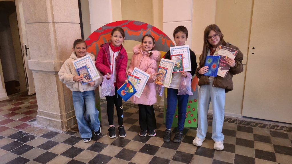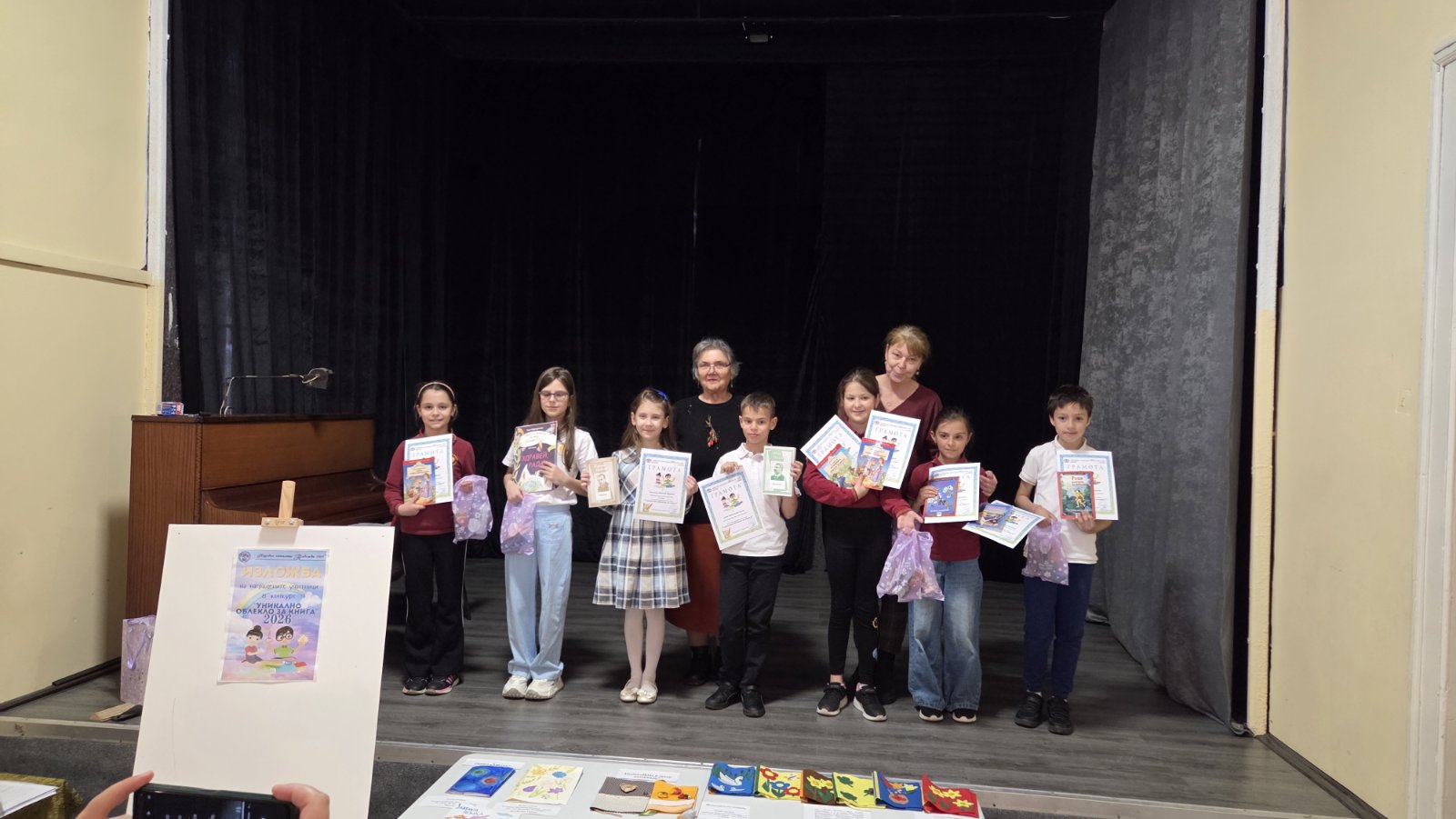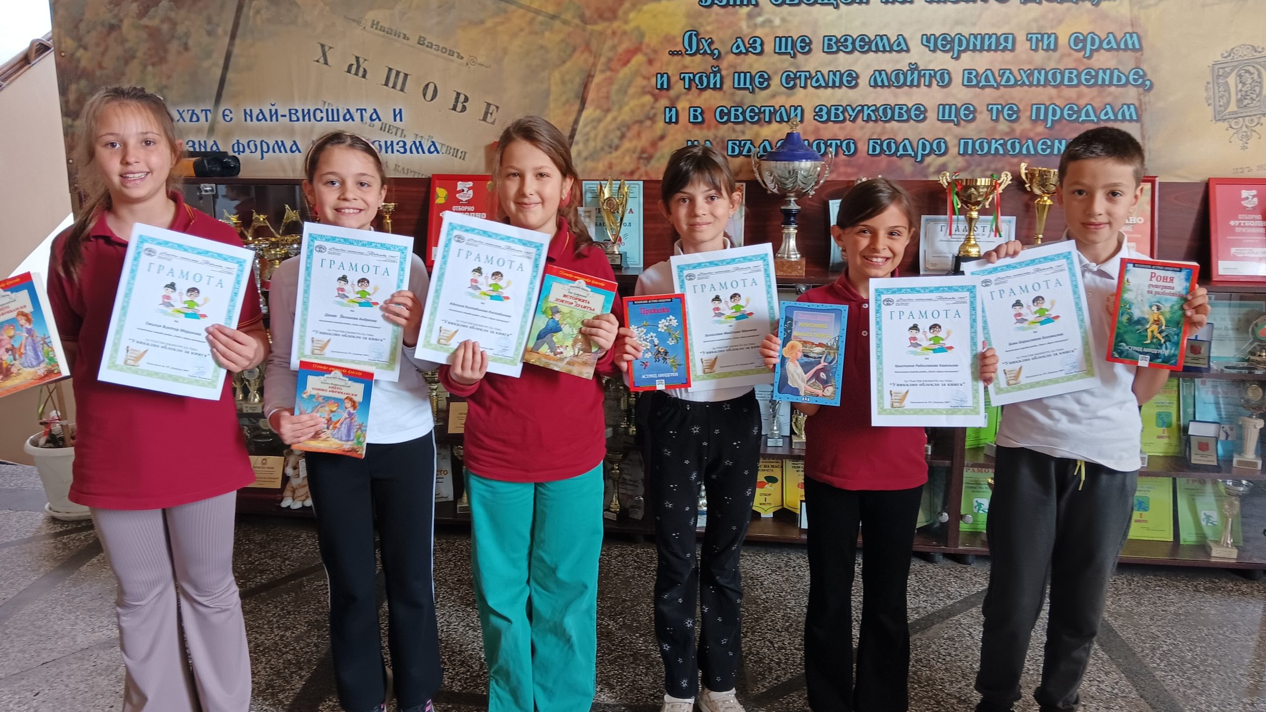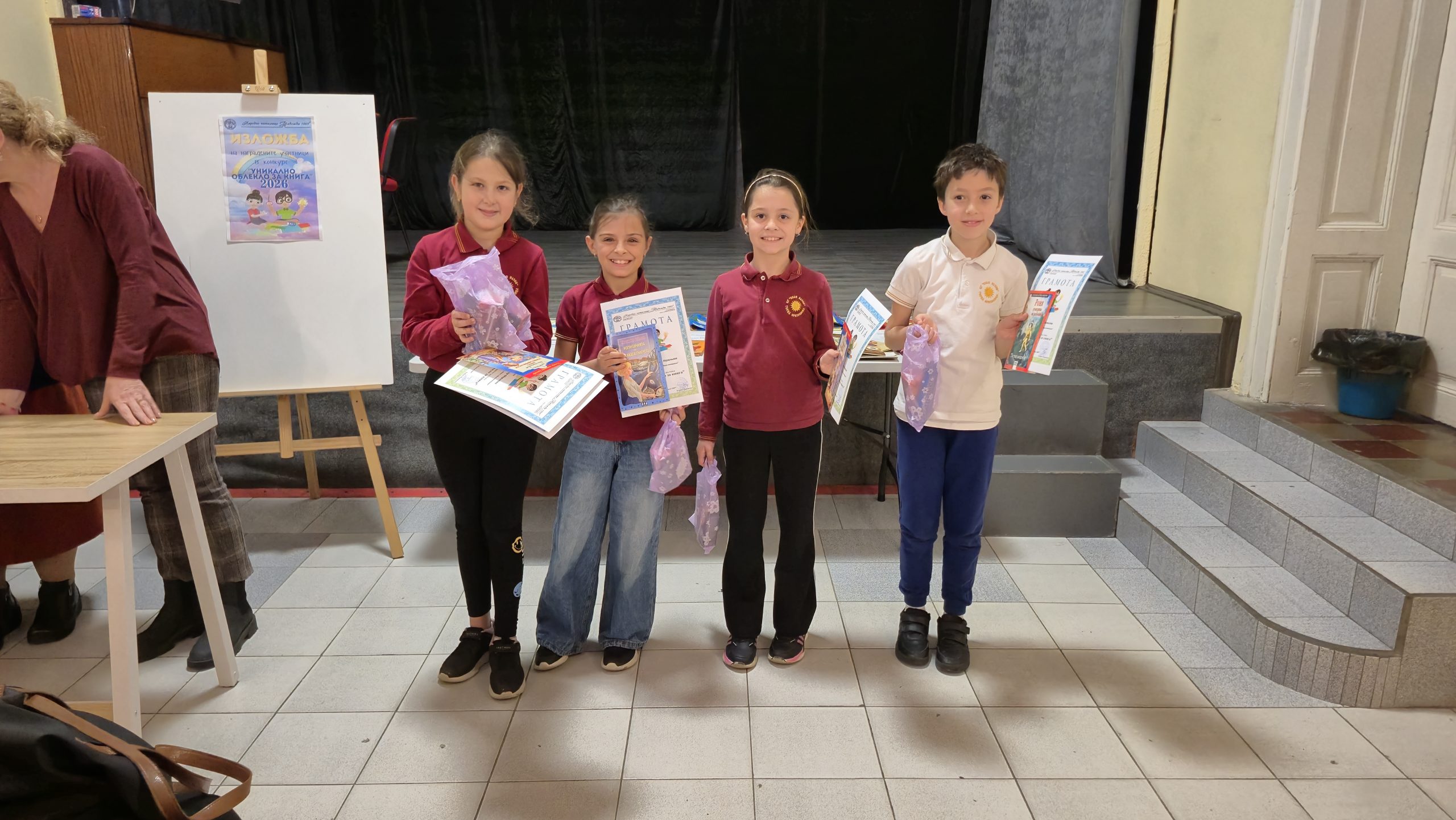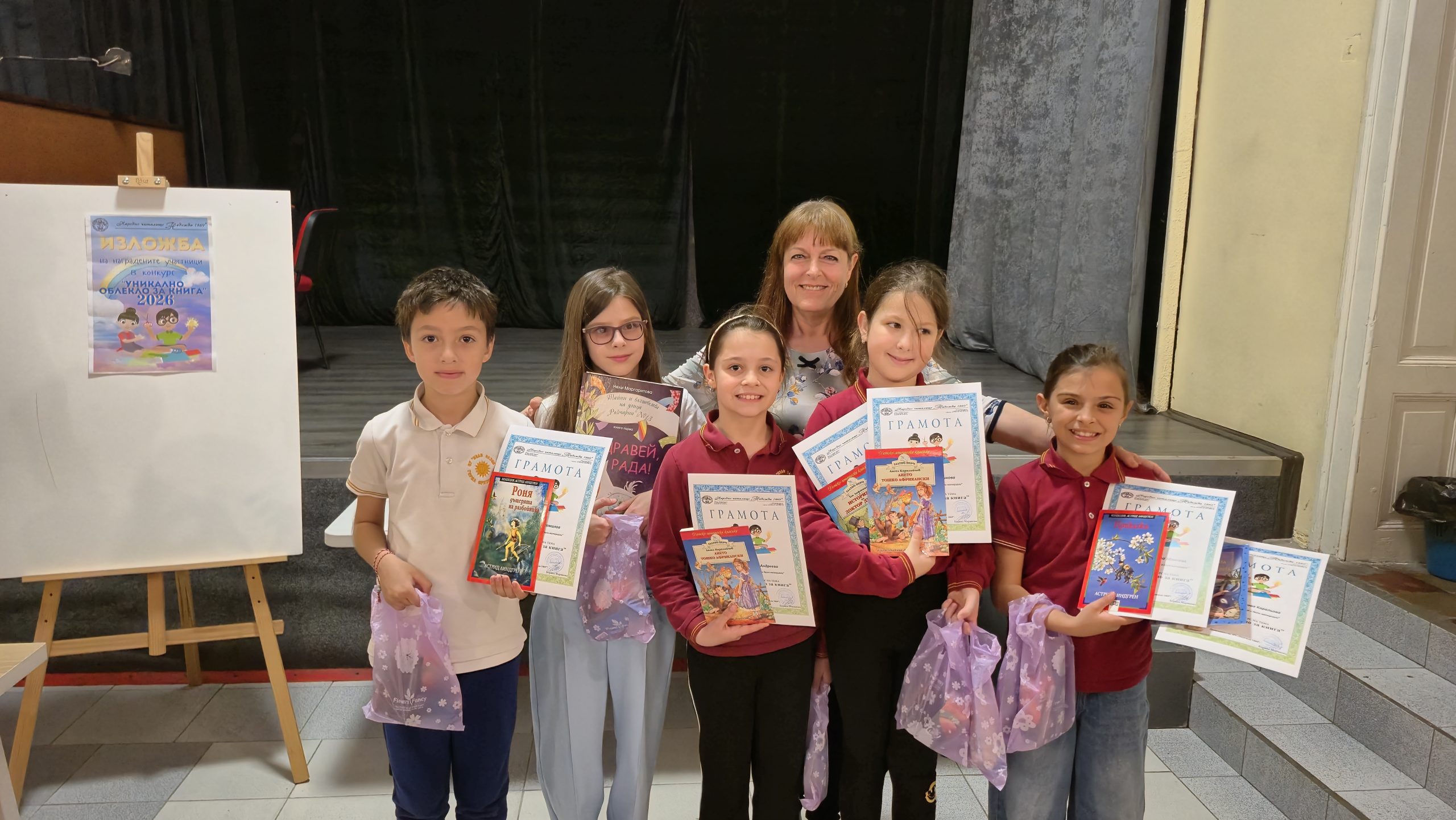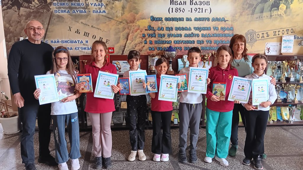 Третокласници от ОУ „Иван Вазов“ бяха наградени за изработените произведения в четвъртия областен конкурс за уникално облекло за книга от хартия, плат и други материали по случай Международния ден на детската книга – 2 април 2026 г., организиран от библиотеката при Народно читалище „Надежда 1869” град Велико Търново в партньорство с Клуба по битова култура към него.