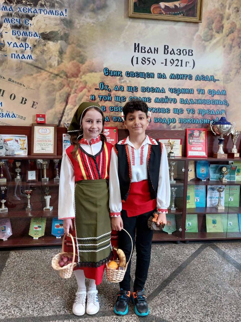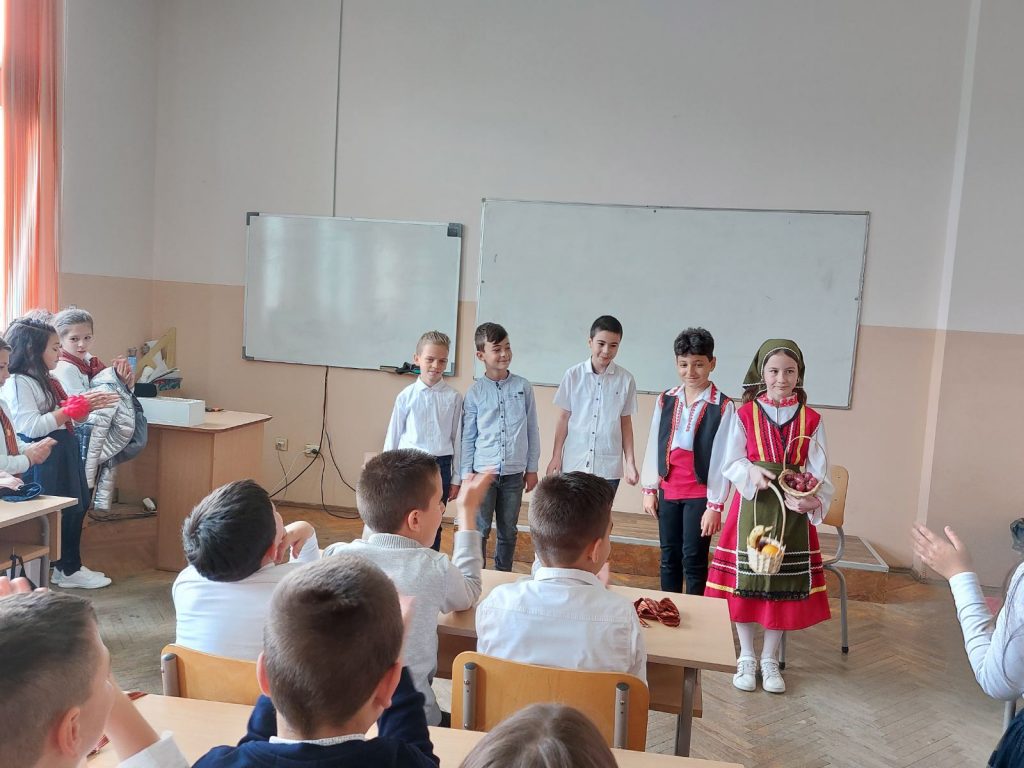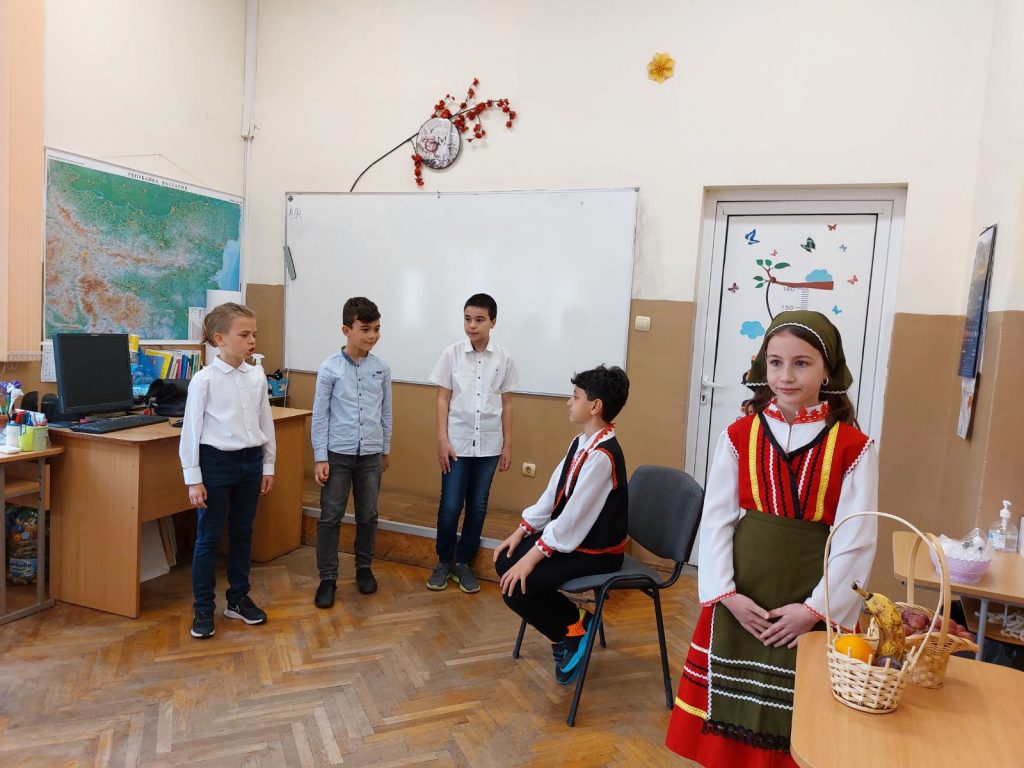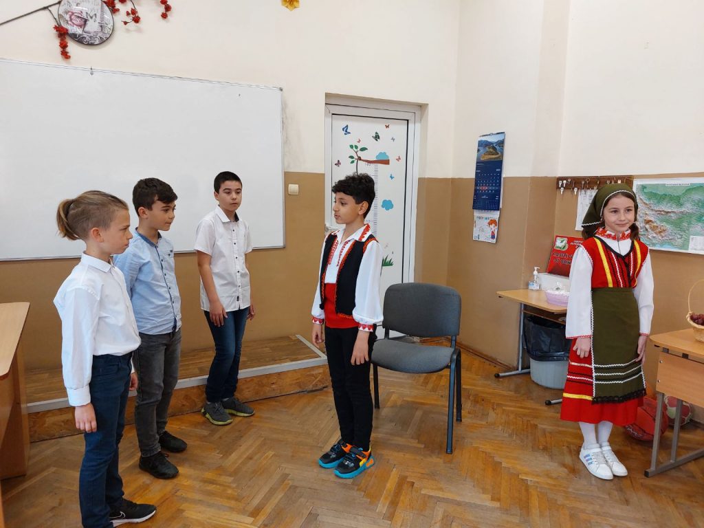 Малките артисти от 3В клас под ръководството на г-жа Емилия Глоговска, представиха драматизация на българската народна приказката „Най-скъпоценният плод“, за да напомнят, че знанието е ценност, която съхраняваме от древността и е нужно да съхраним и за бъдещето.