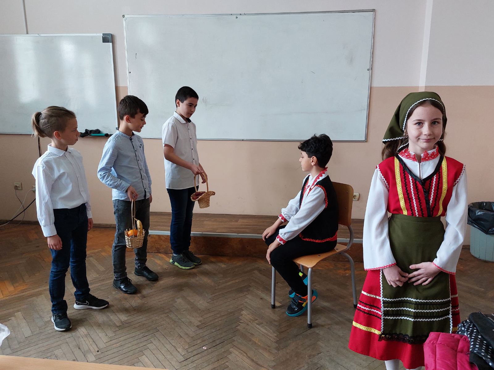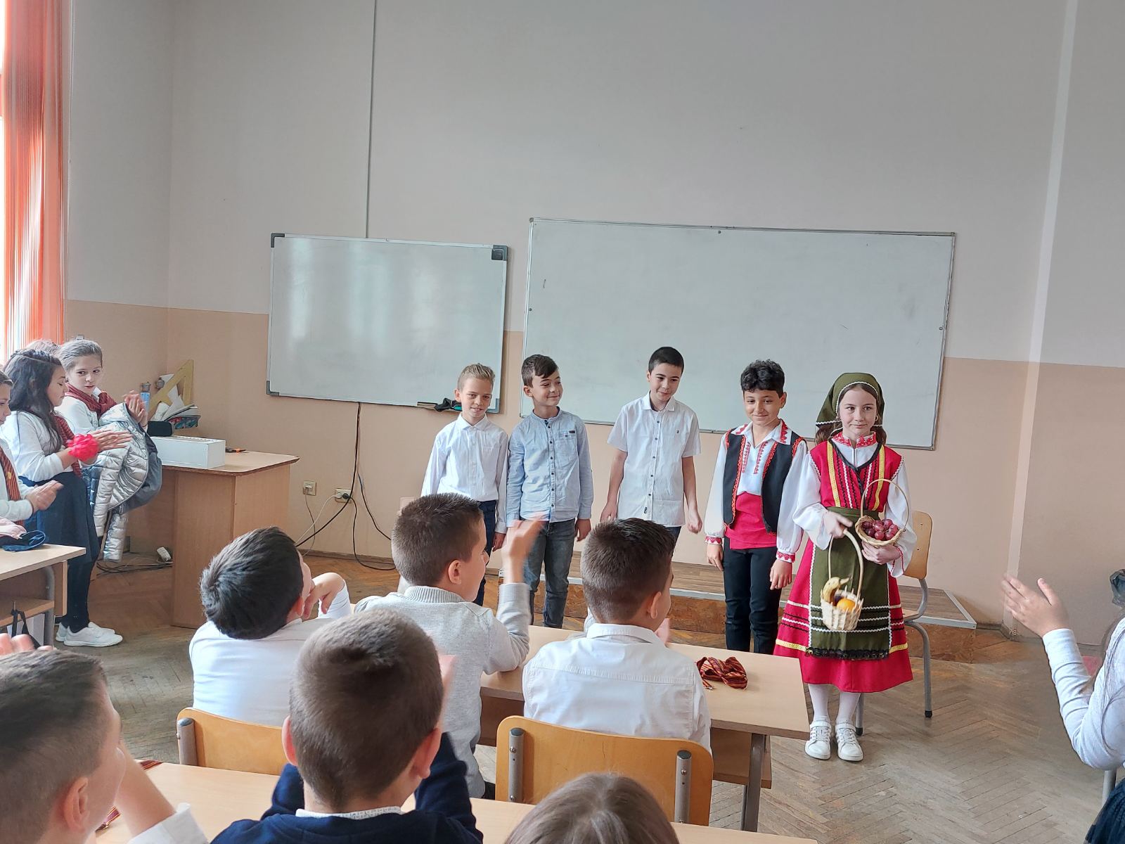Малките артисти от 3В клас под ръководството на г-жа Емилия Глоговска, представиха драматизация на българската народна приказката „Най-скъпоценният плод“, за да напомнят, че знанието е ценност, която съхраняваме от древността и е нужно да съхраним и за бъдещето.