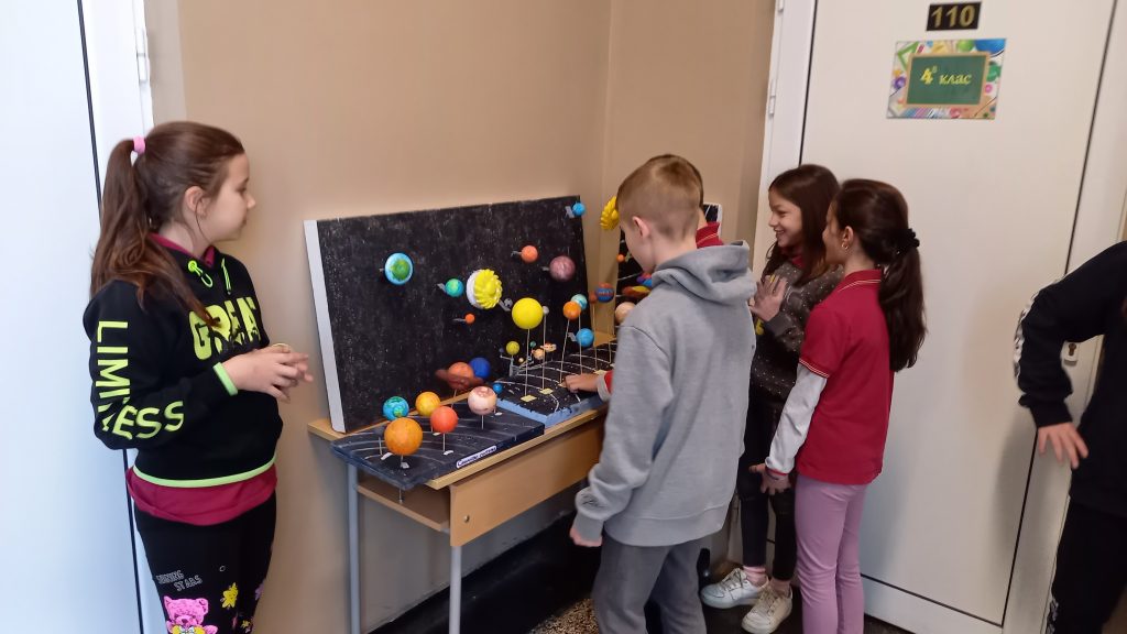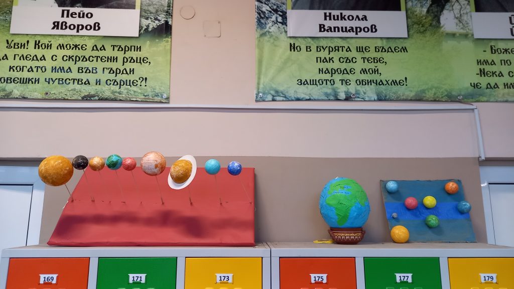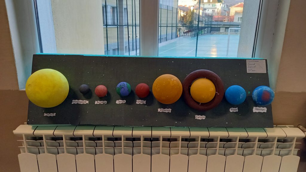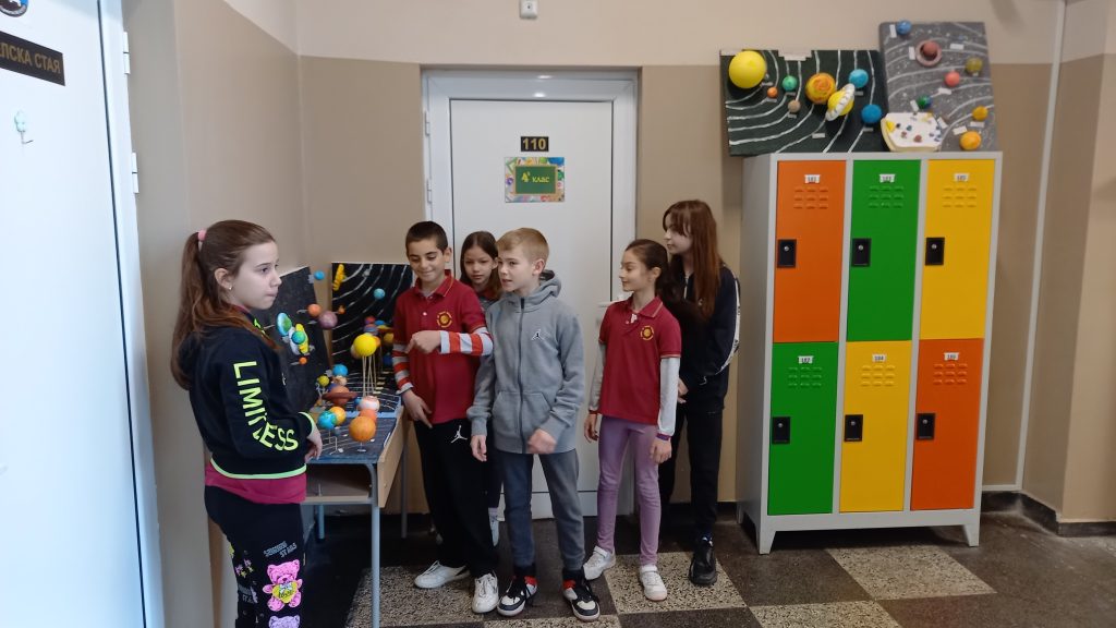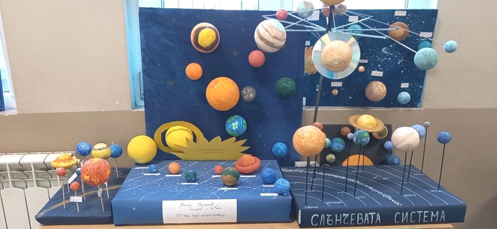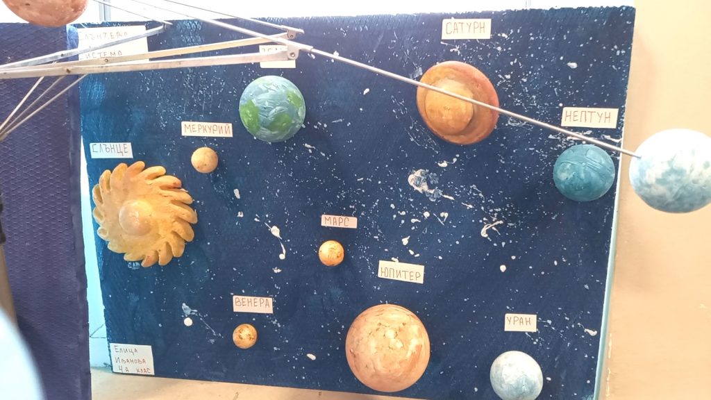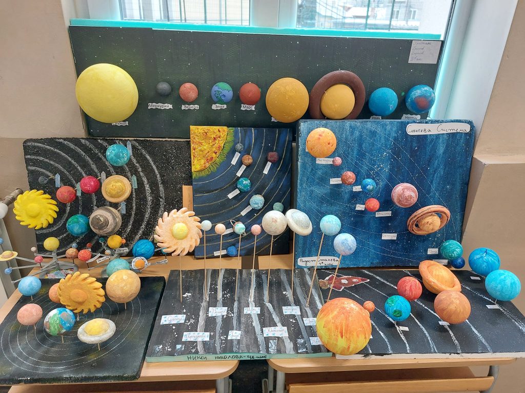 В часовете по учебния предмет Човекът и природата учениците от 4 клас работиха по проект „Слънчева система“ под ръководството на своите преподаватели Виолета Бакърджиева, Розалия Нанкова и Емилия Глоговска. Те вложиха много труд, старание и въображение при изработването на мащабно умалени макети на Слънчевата система от разнообразни материали.