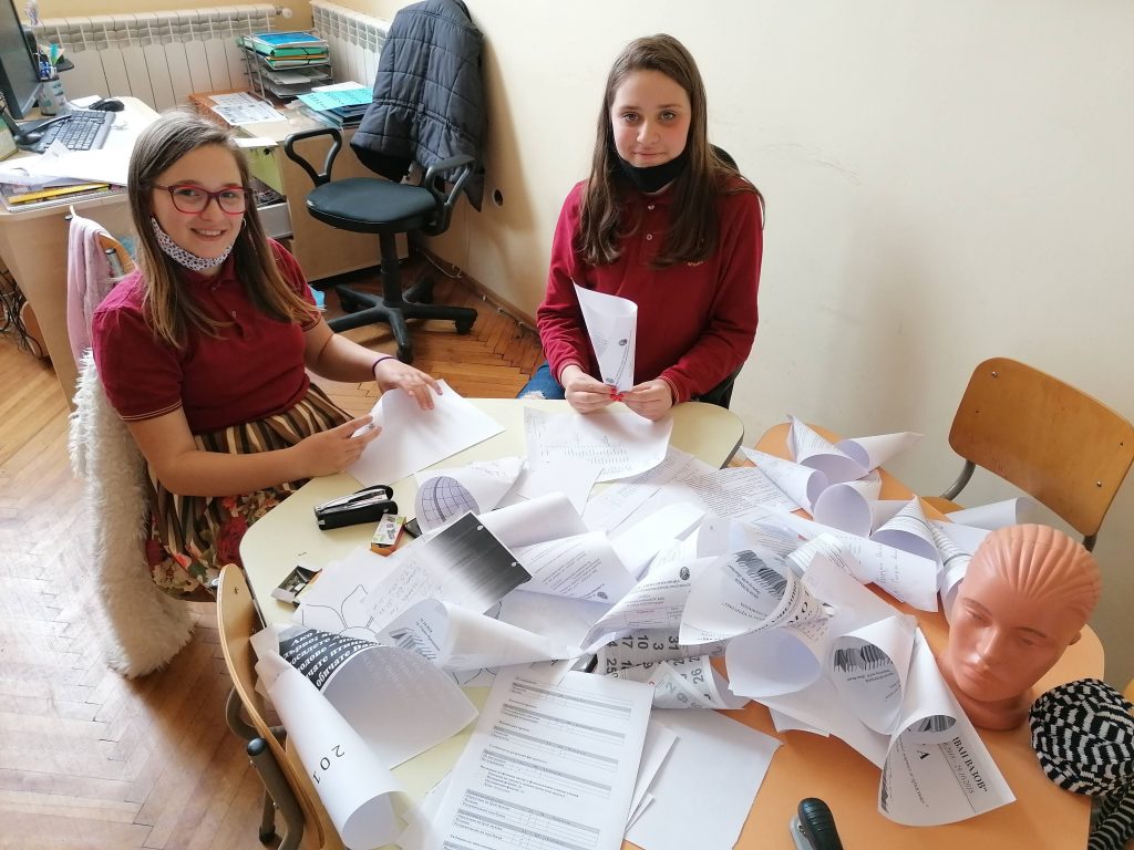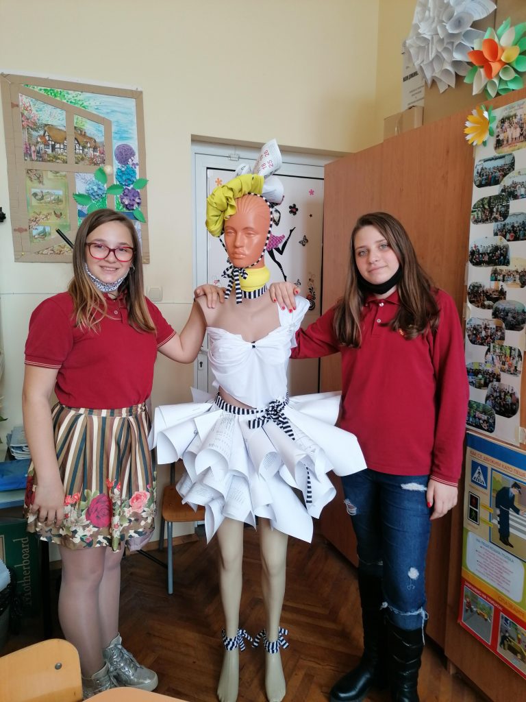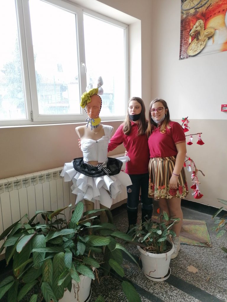 Ванеса Илиева и Ана-Мария Мамучевска от 6 А клас премениха своята приятелка Мадам Фифи и я разходиха в училище. Шестокласничките с ентусиазъм претвориха своите дизайнерско виждане и облякоха модела си с предизвикателен тоалет от рециклирани материали.