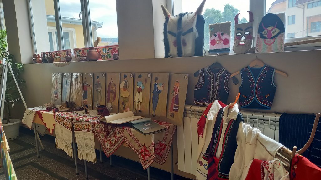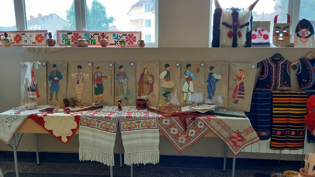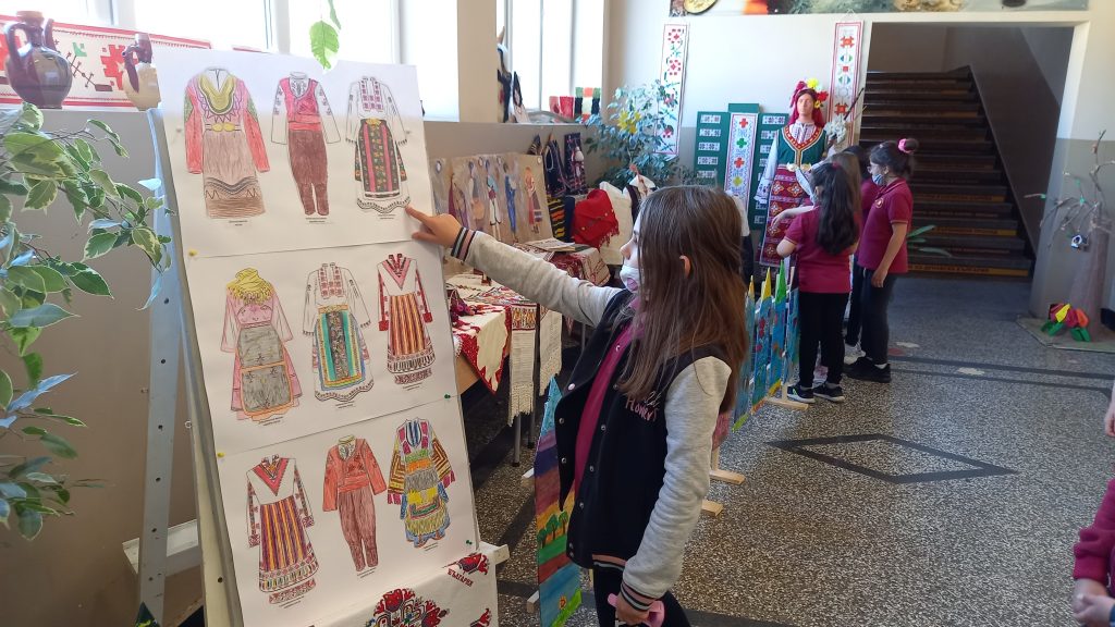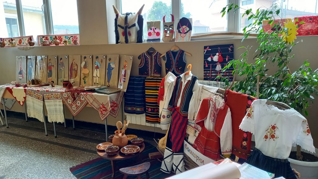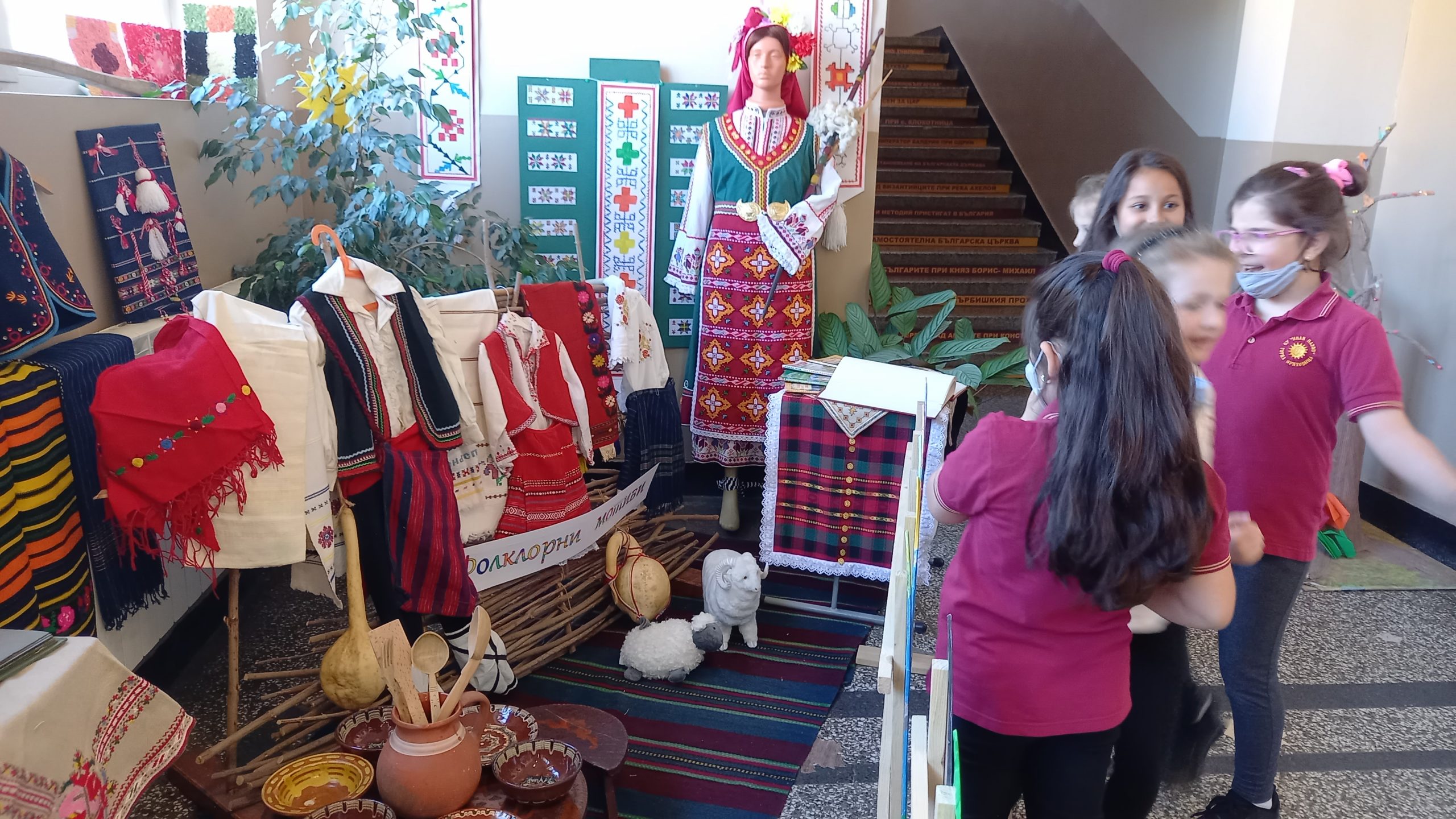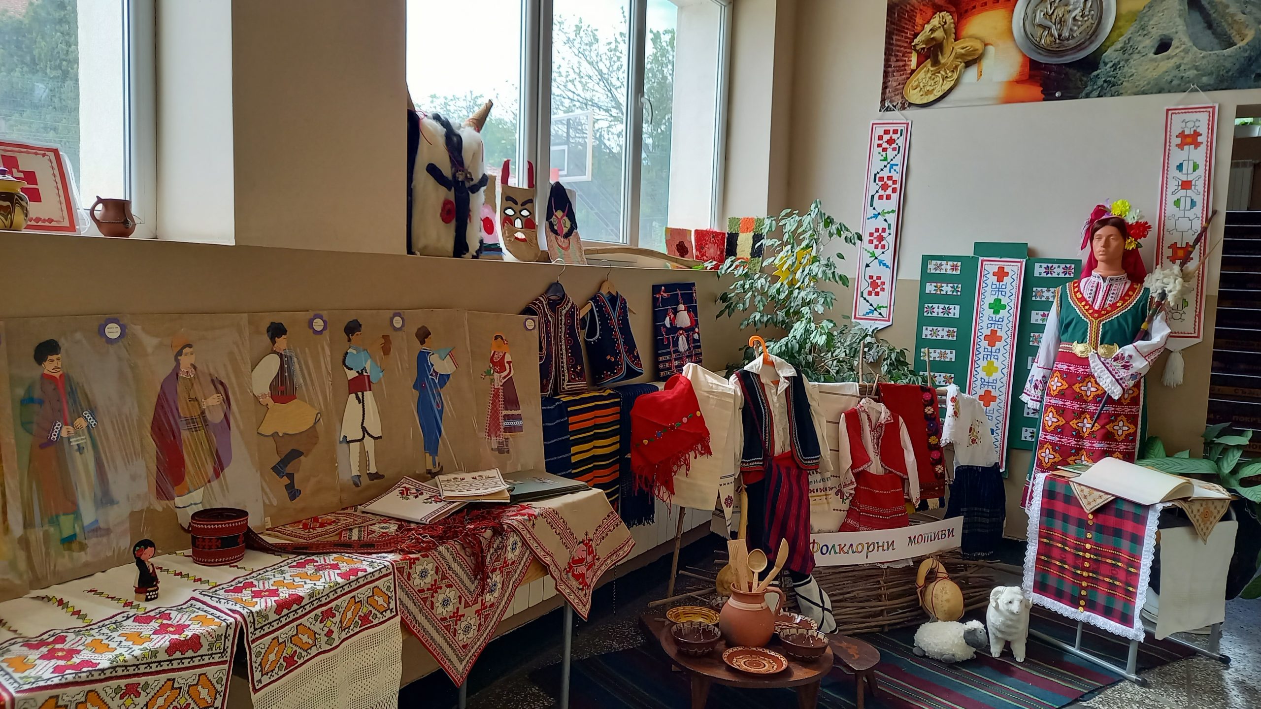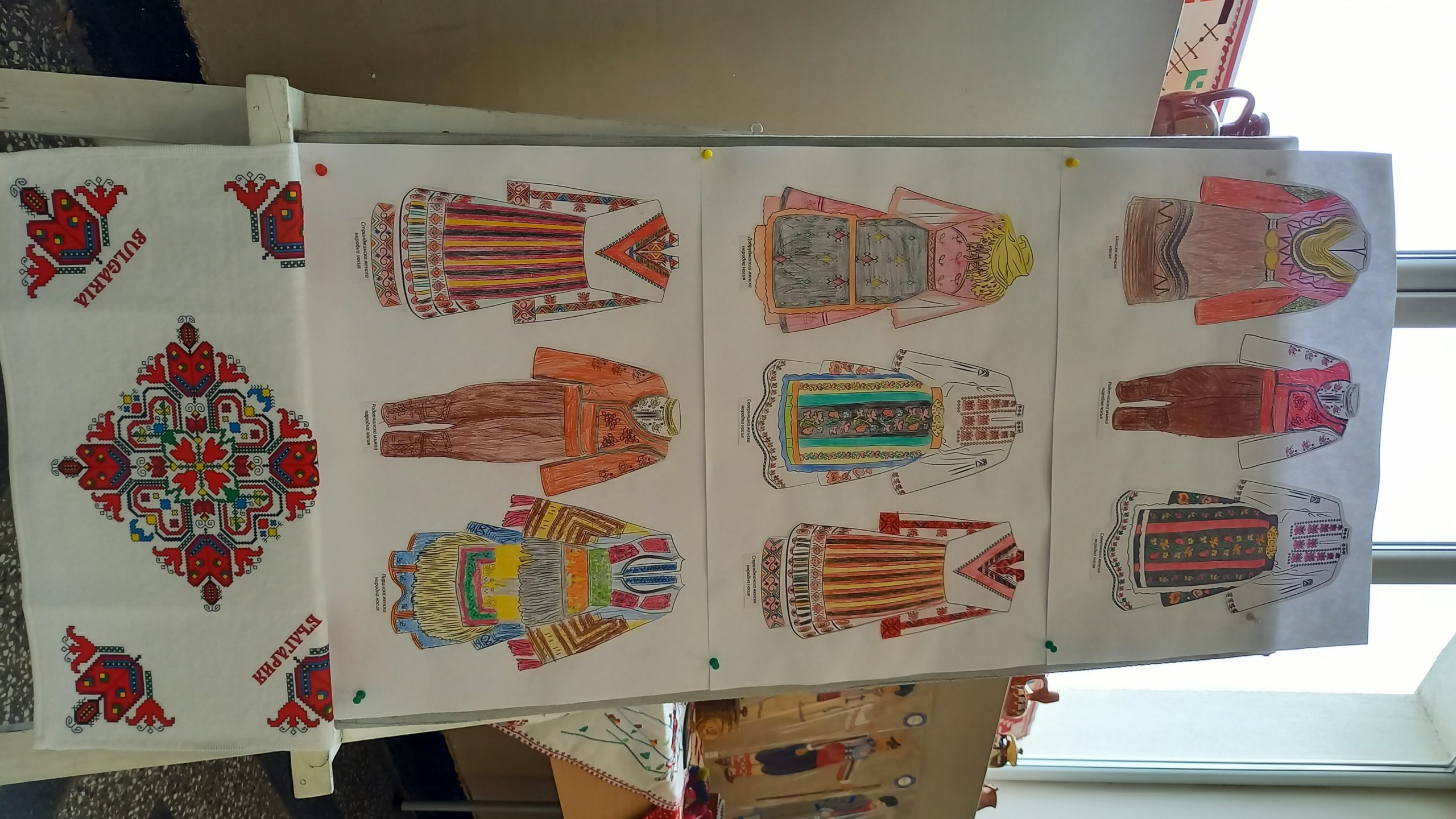 В изложбата са използвани материали, предоставени от ученици и учители в училището. Можете да видите български народни носии, части и предмети от облеклото на българина. Накои от експонатите са на повече от половин век. Подредена е експозиция от пана с апликации на национални носии от различните фолклорни области, изработена от Мария Костова. Учениците също участват със своя експозиция от оцветени национални носии от различните области на България. Можете да разгледате албум с рисувани национални носии, както и сборник от автентични народни песни, събрани от г-жа Маргарита Бонева.