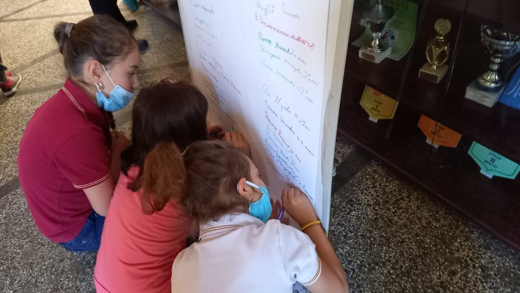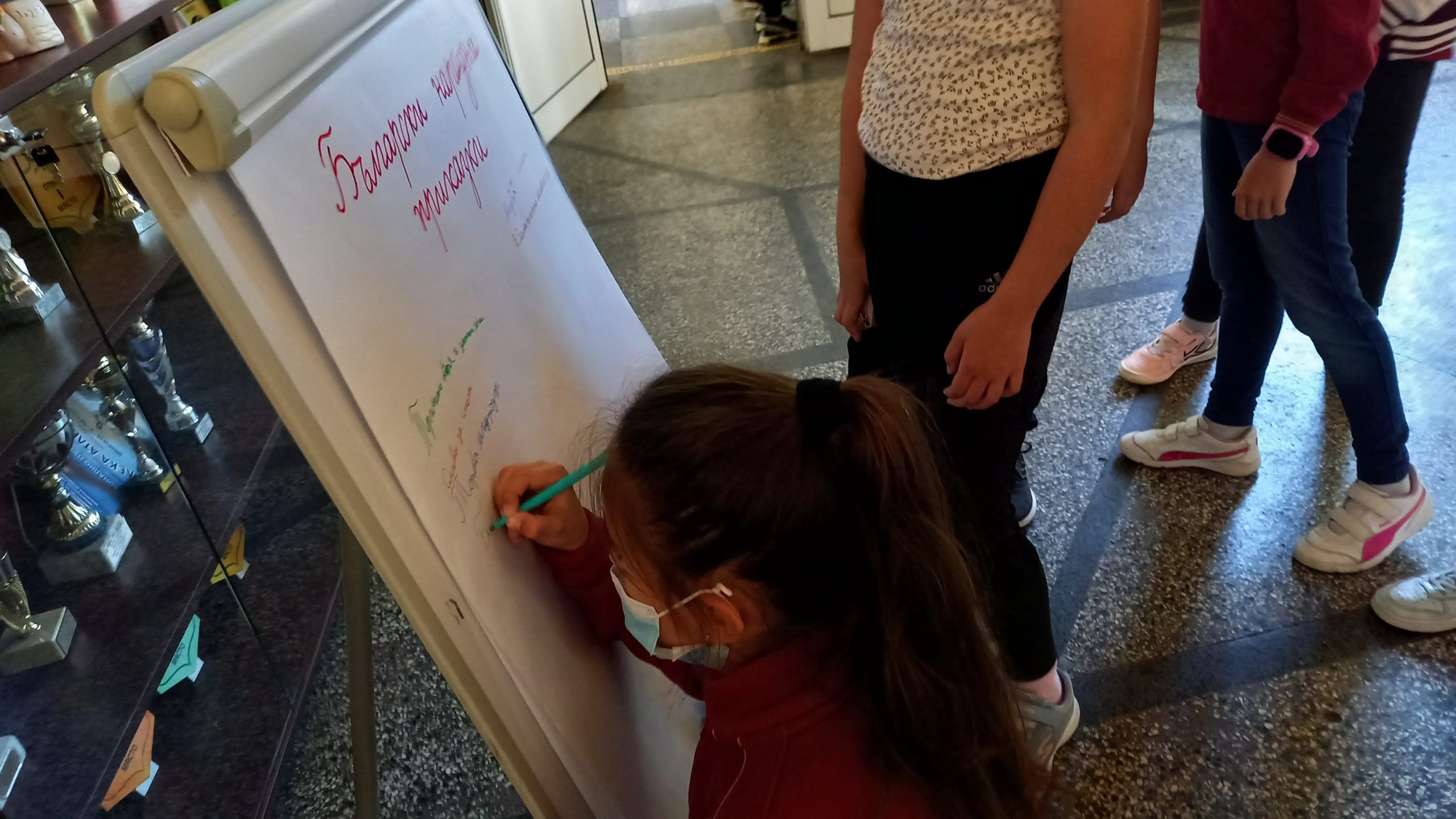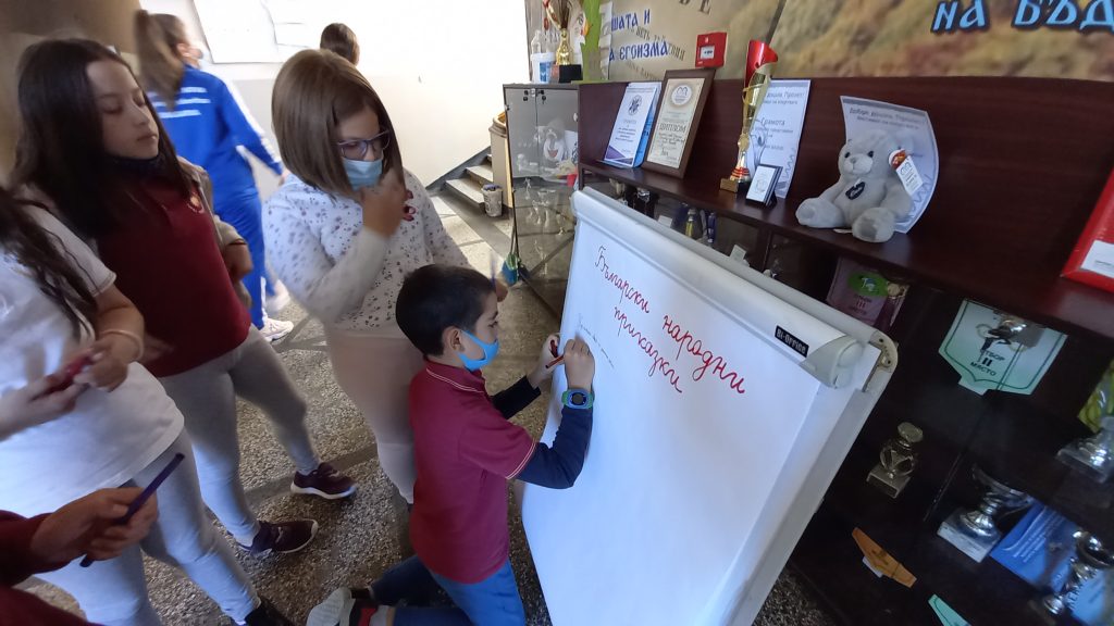 Приемете предизвикателството: Нека всеки, който е прочел българска народна приказка през последните седмици, да запише заглавието й на таблото, което е поставено във фоайето на училището. Изложбата и таблото ще бъдат представени до 14 май.