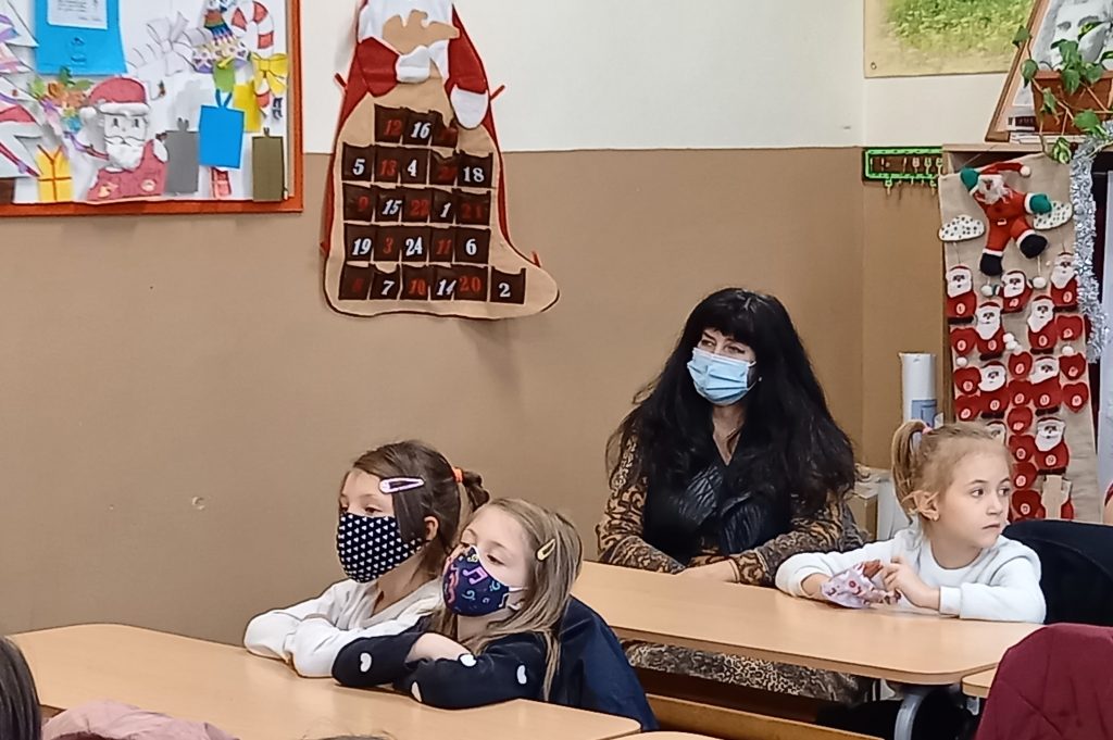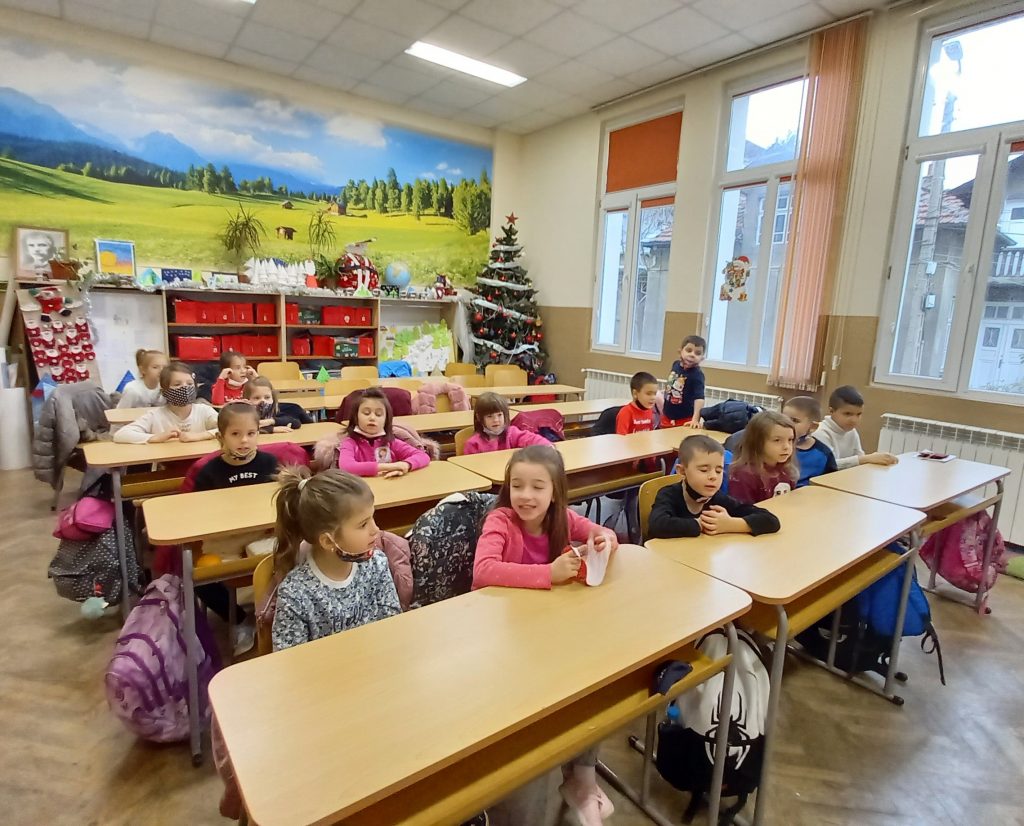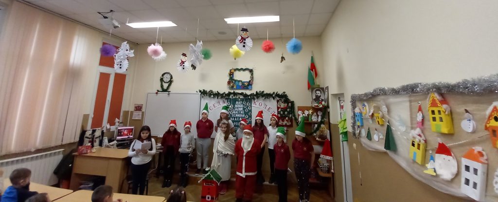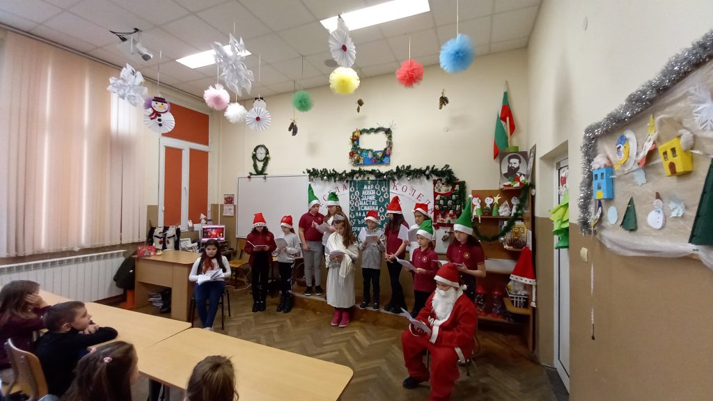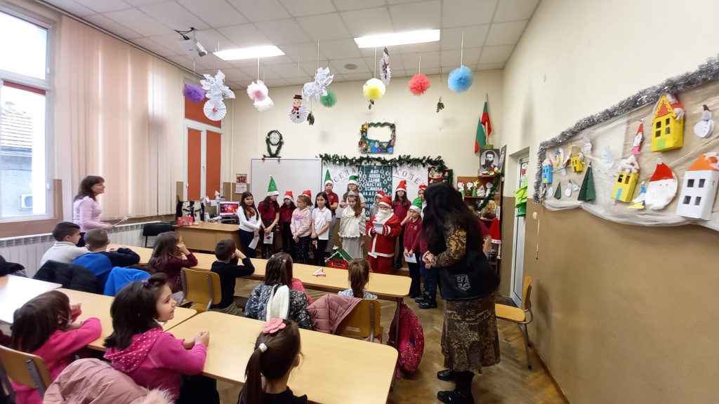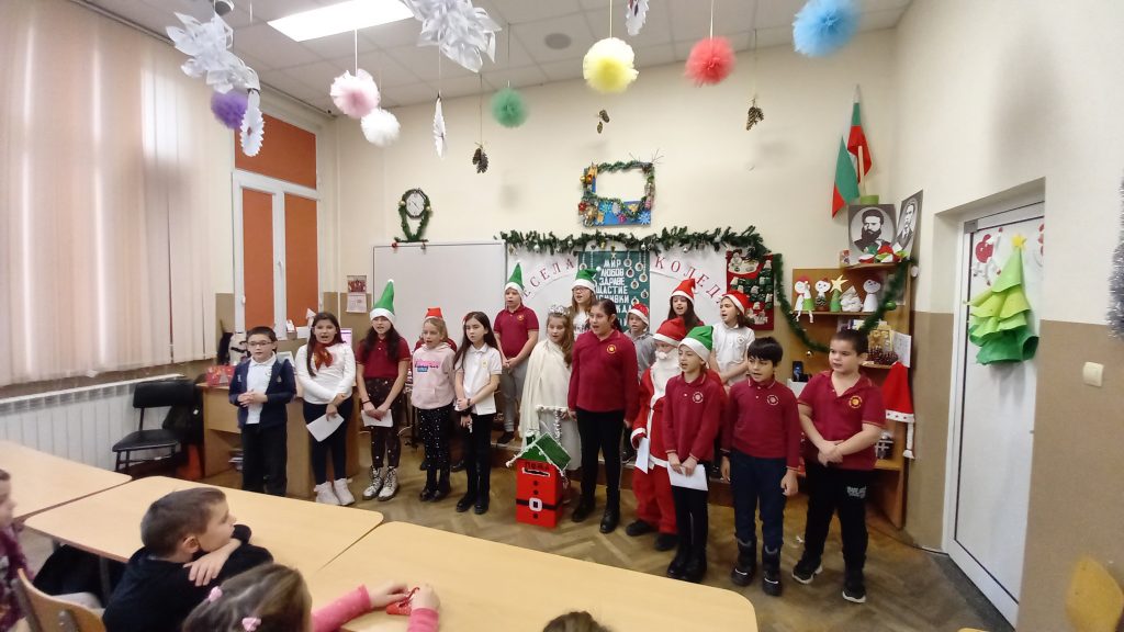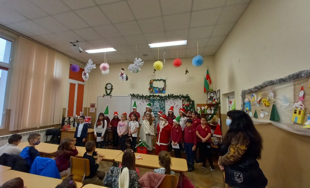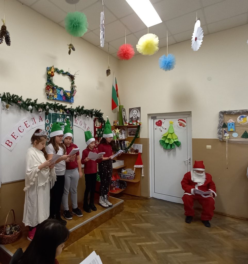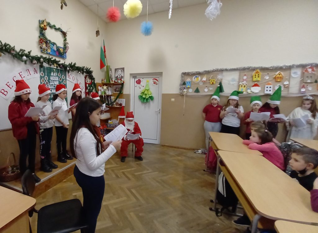 В края на тази обща изява третокласниците поднесоха коледни стихотворения на малчуканите и изпяха песента „Зимна радост“ по музика на Морис Аладжем и текст – Кръстьо Станишев. Децата получиха и още една изненада – изработен от учениците коледен сувенир, който ще стане част от коледната украса в групата. Малките зрители се включиха с изпълнение на стихотворение, свързано с българския обичай – сурвакане.