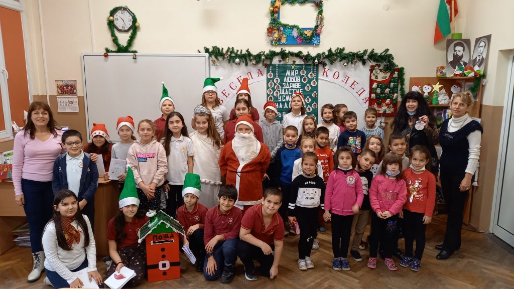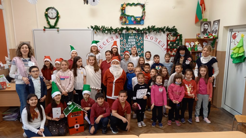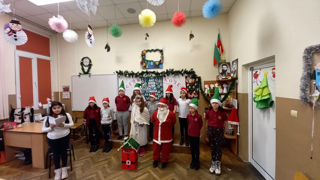 Децата от групата за задължителна предучилищна подготовка получиха изненада от учениците на 3. Б клас. По идея на г-жа А. Баланова, учениците със своят класeн ръководител Розалия Нанкова разучиха по роли сценографията. Третокласниците прочетаха детската пиеса „Легенда за Коледа“ на младата българска писателка Ами Тола (Ева Иванова). Превъпълтиха се в ролите на Дядо Коледа, джуджетата, Ледената кралица и нейните слуги. Приказната пиеса в рими е по идея на Стоян Борисов, като са използвани персонажи от приказките на Шарл Перо. Малките зрители видяха как помощниците на Дядо Коледа – джуджетата спасяват коледния дух от злите намерения на злата кралица. Тази приказка разкри коледните приготовления на добрия старец за празничната нощ и научиха, че благодарение на нашите добрини, коледният огън вечно ще гори.