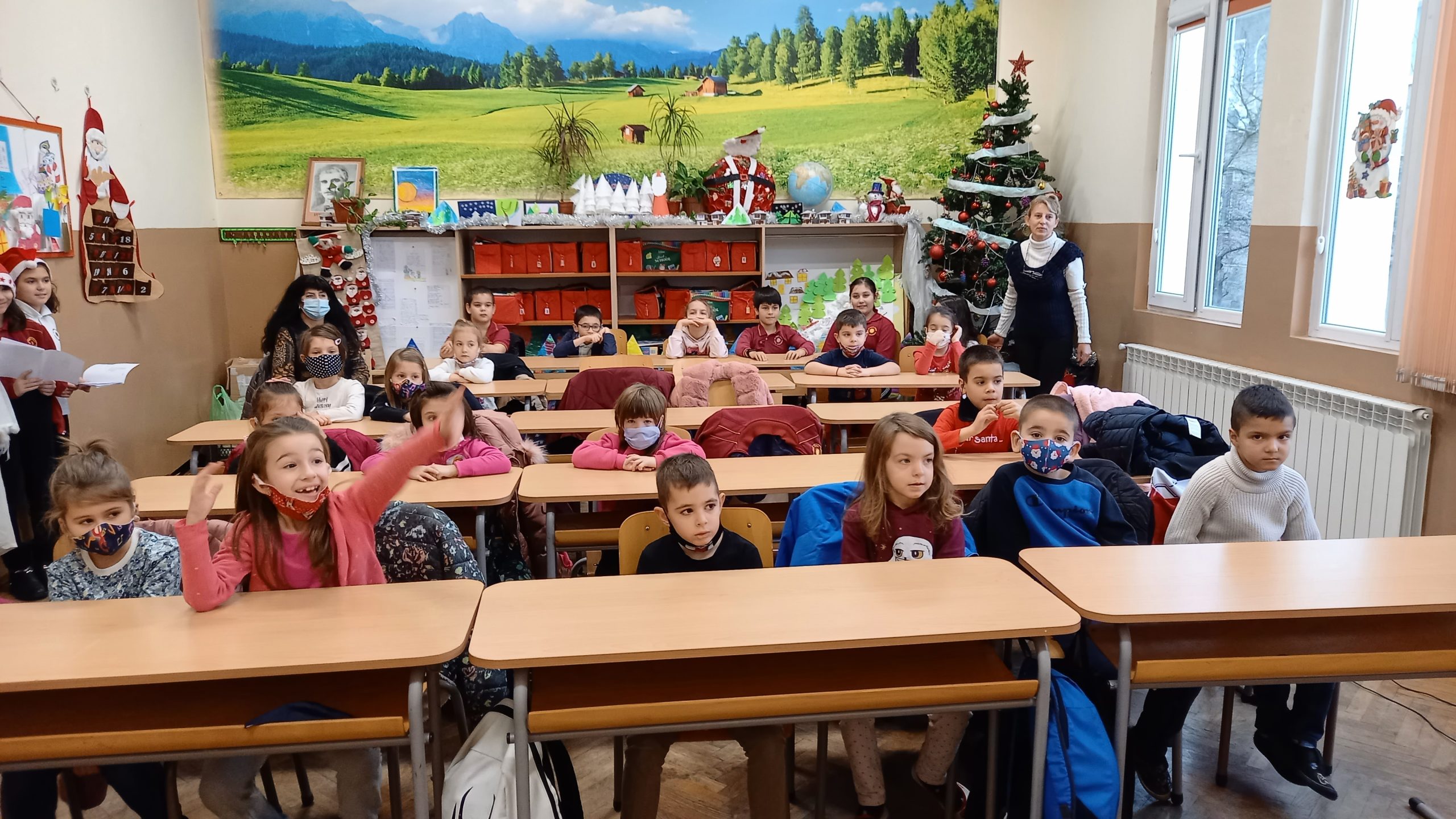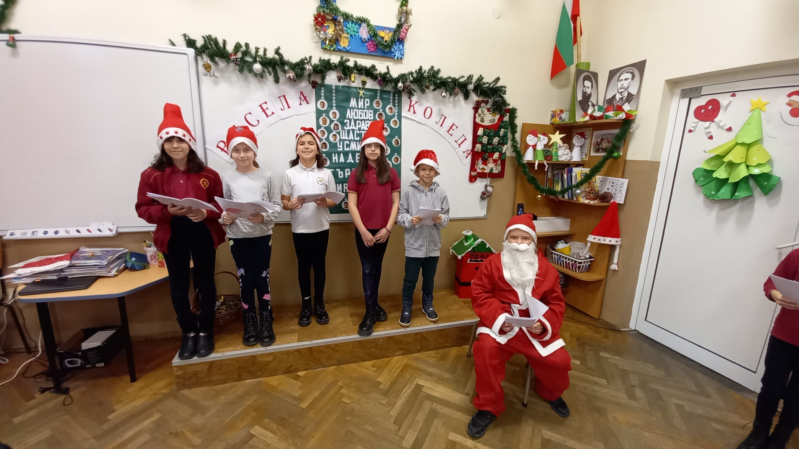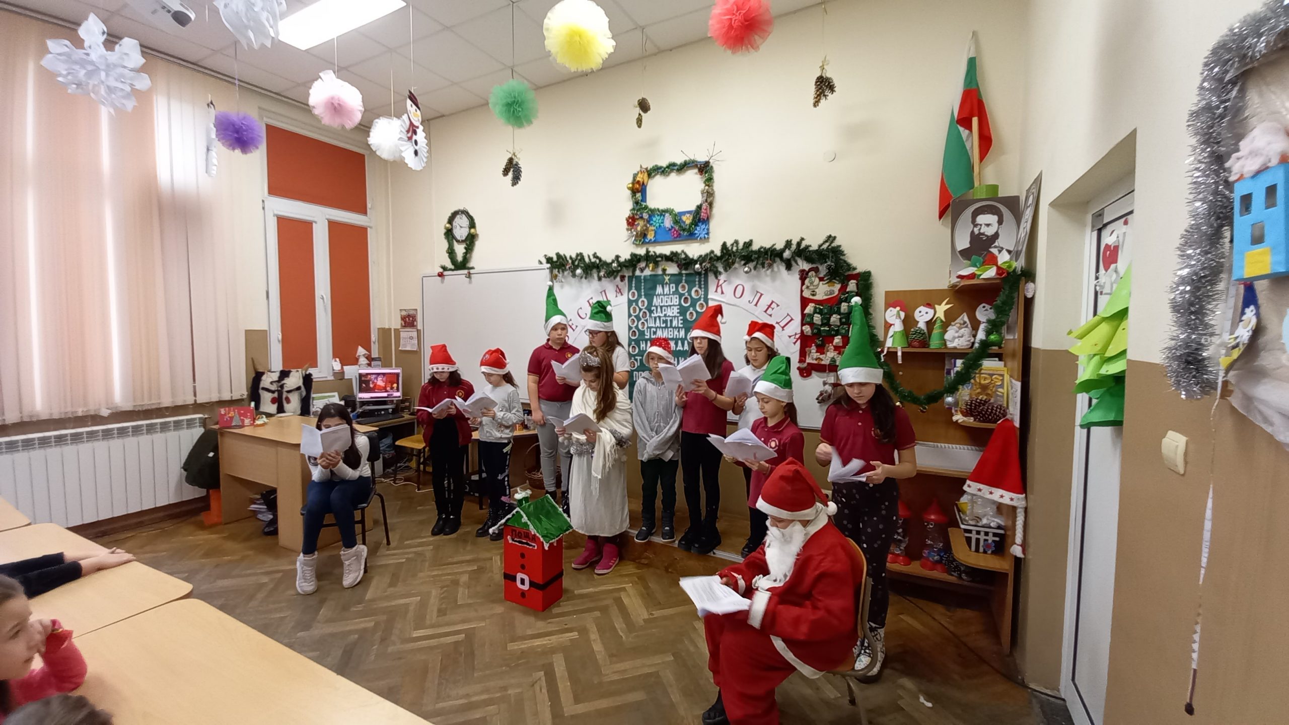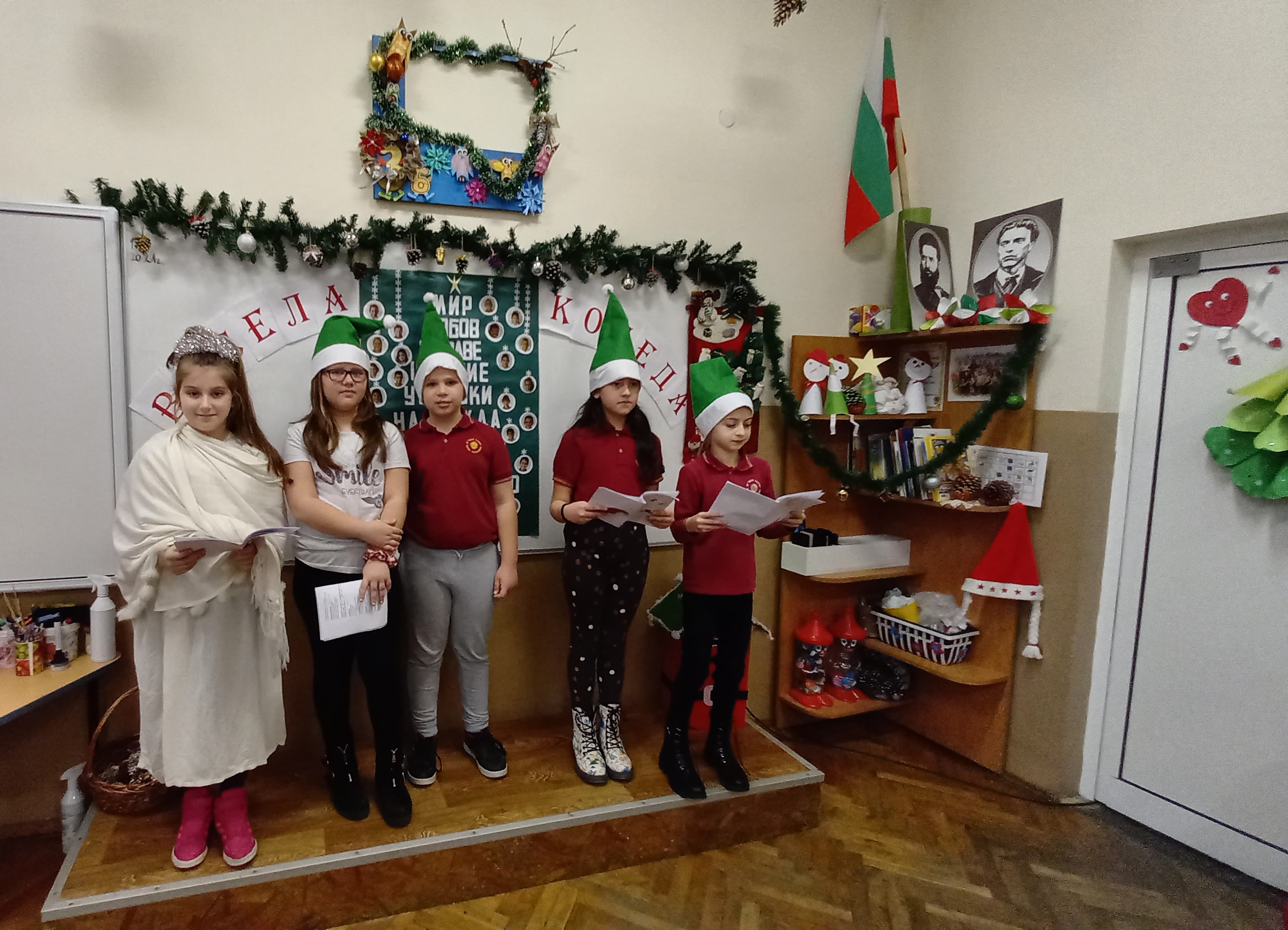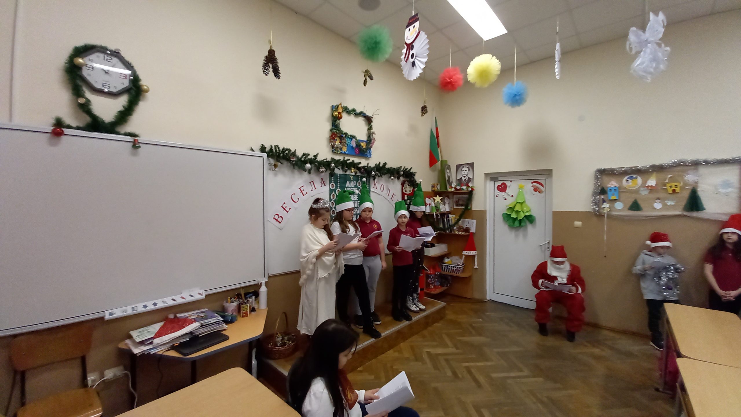 Децата от групата за задължителна предучилищна подготовка получиха изненада от учениците на 3. Б клас. По идея на г-жа А. Баланова, учениците със своят класeн ръководител Розалия Нанкова разучиха по роли сценографията. Третокласниците прочетаха детската пиеса „Легенда за Коледа“ на младата българска писателка Ами Тола (Ева Иванова). Превъпълтиха се в ролите на Дядо Коледа, джуджетата, Ледената кралица и нейните слуги. Приказната пиеса в рими е по идея на Стоян Борисов, като са използвани персонажи от приказките на Шарл Перо. Малките зрители видяха как помощниците на Дядо Коледа – джуджетата спасяват коледния дух от злите намерения на злата кралица. Тази приказка разкри коледните приготовления на добрия старец за празничната нощ и научиха, че благодарение на нашите добрини, коледният огън вечно ще гори.