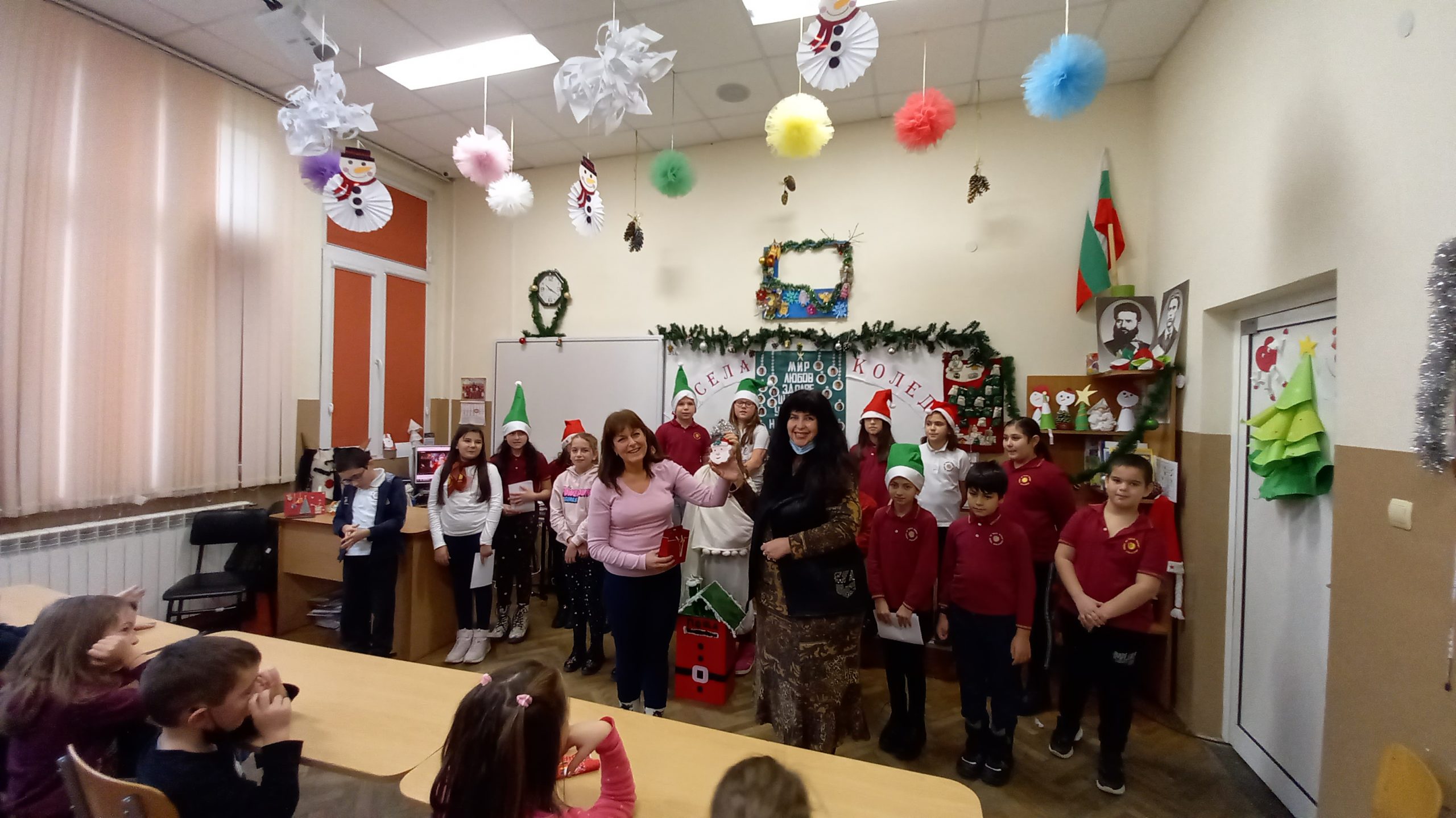 В края на тази обща изява третокласниците поднесоха коледни стихотворения на малчуканите и изпяха песента „Зимна радост“ по музика на Морис Аладжем и текст – Кръстьо Станишев. Децата получиха и още една изненада – изработен от учениците коледен сувенир, който ще стане част от коледната украса в групата. Малките зрители се включиха с изпълнение на стихотворение, свързано с българския обичай – сурвакане.