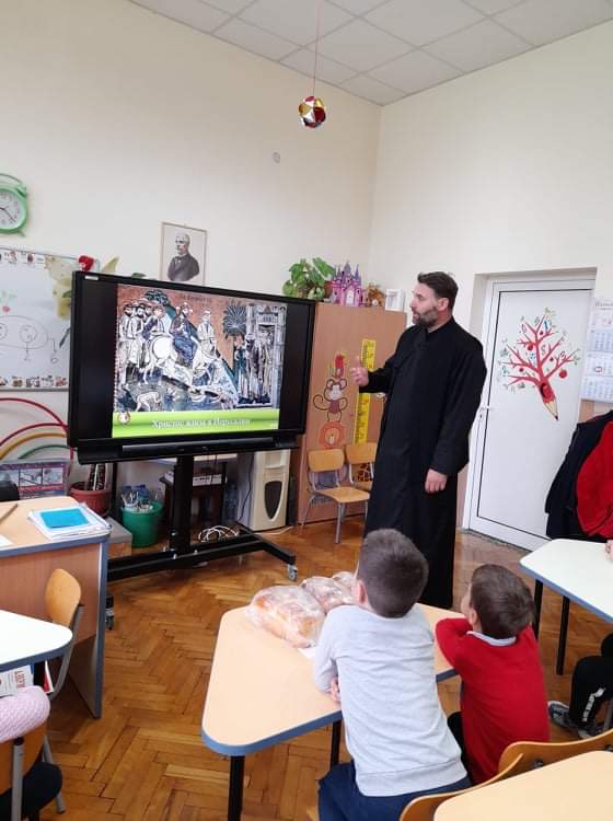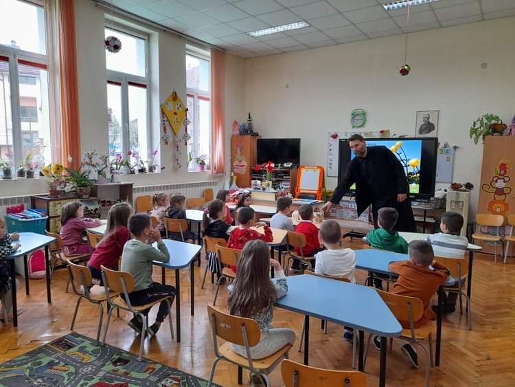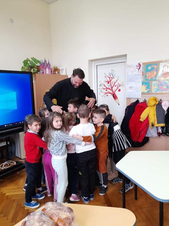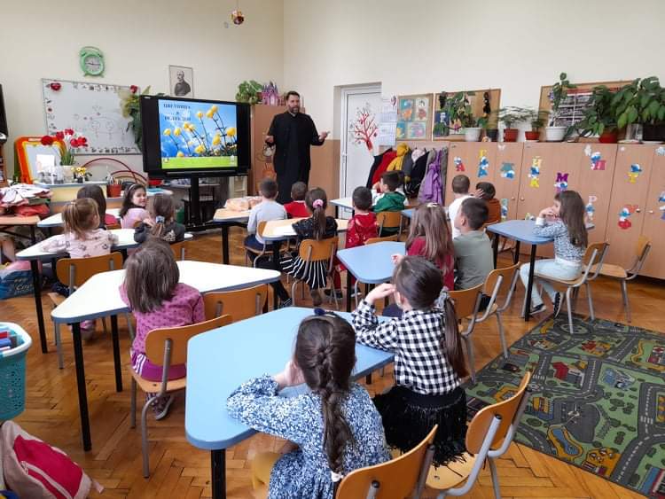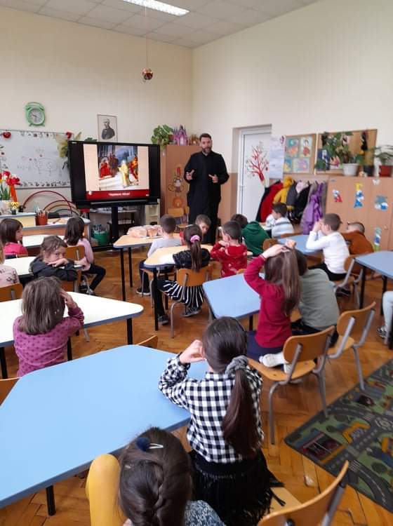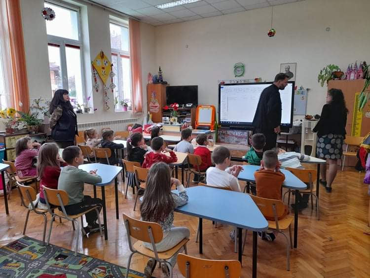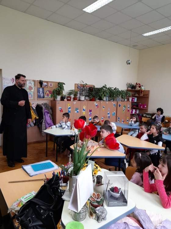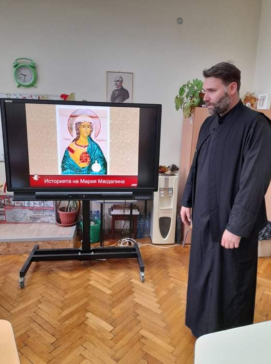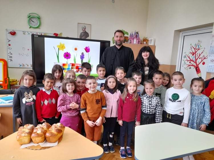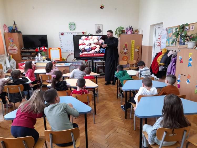 По традиция, в навечерието на светлите великденски празници, отец Зоран гостува на малчуганите от подготвителна група. С интерес децата слушаха продължението на най-истинската приказка, тази за Исус Христос. Увлекателно и достъпно отец Зоран ги въведе в тайнството на великденската обредност. С желание децата разказаха за отминалите празници Лазаровден и Цветница и за това как празнуват вкъщи Великден. Всяко дете пожела неговото яйце да бъде борец. Накрая всички се почерпиха с традиционните козунаци.