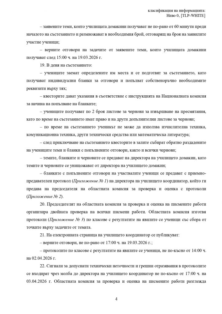 – резултатите на ученика от състезанието и личните му данни (трите имена на ученика, училище, клас, населено място и други);