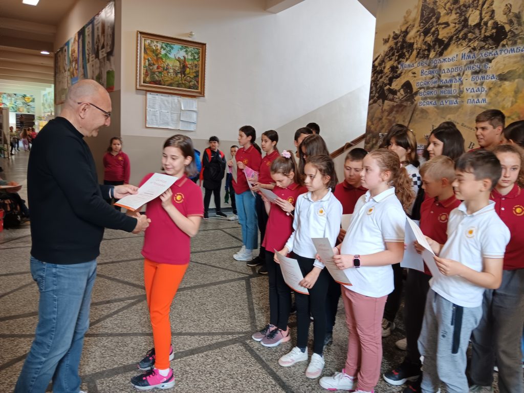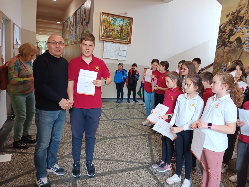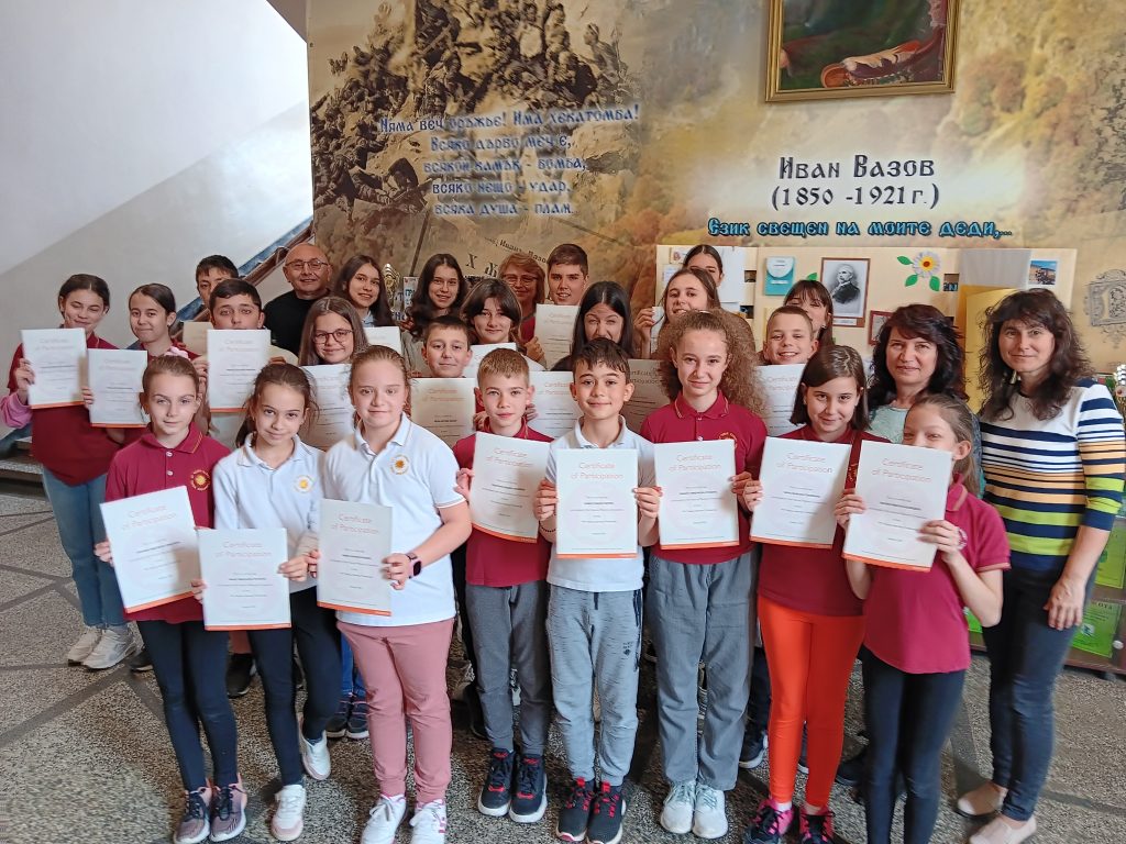 В чест на празника на 24 април 2023, 38 ученици от ОУ „Иван Вазов” получиха своите грамоти за активно участие във вътрешноучилищен кръг на състезанието по английски език „Longman Competition“ – който се проведе през месе март. Състезанието се организира от издателство PEARSON- България. Това е Десето национално състезание по формата на международно признатите езикови сертификати Pearson Test of English (PTE). За националния кръг се класираха и се представиха отлично – Петър Димитров 4 А клас, Кая Тодорова 4 В клас, Ивайло Филипов 4 В клас , Стефан Николов 7А клас и Радост Минчева 7А клас.