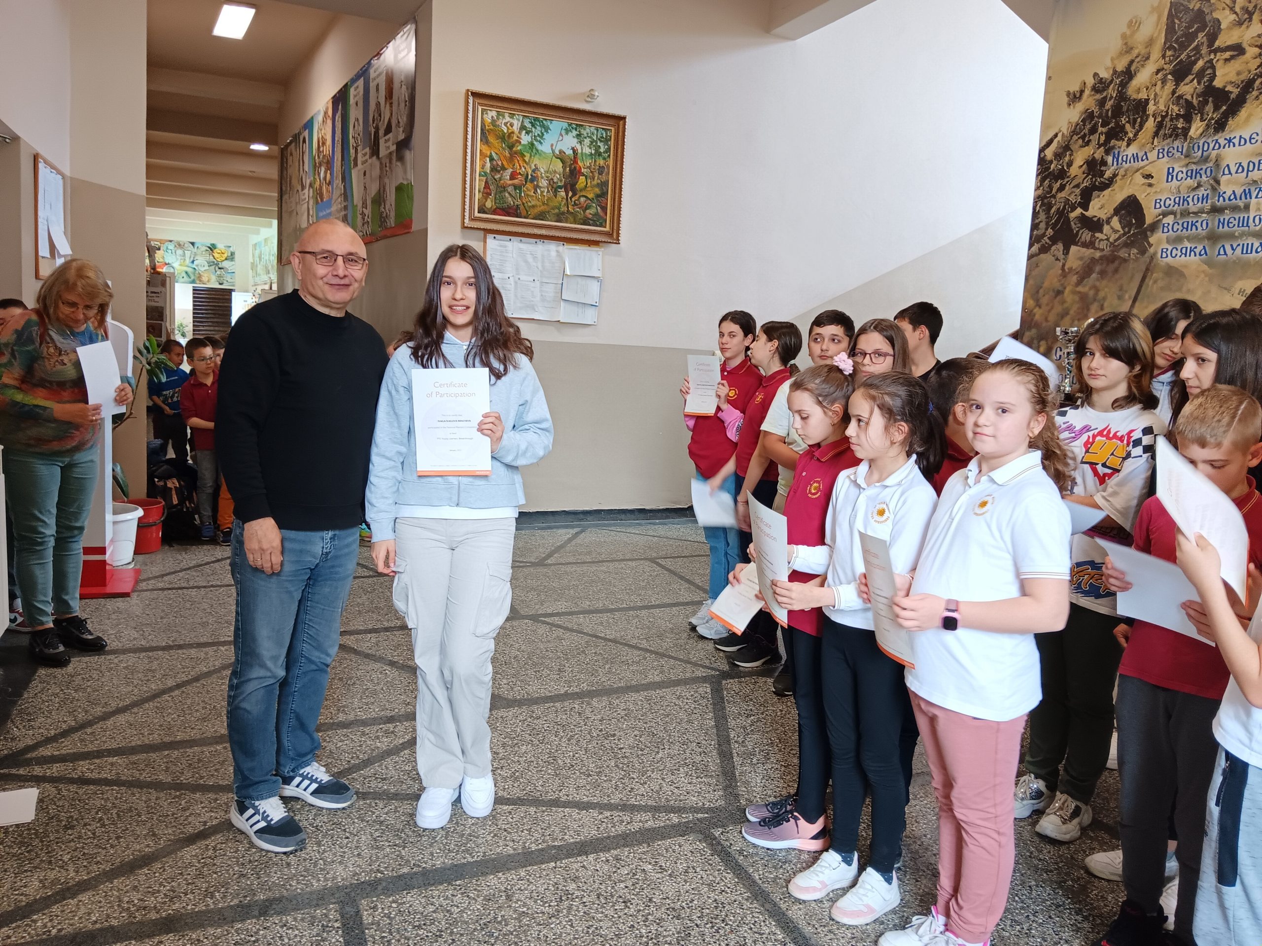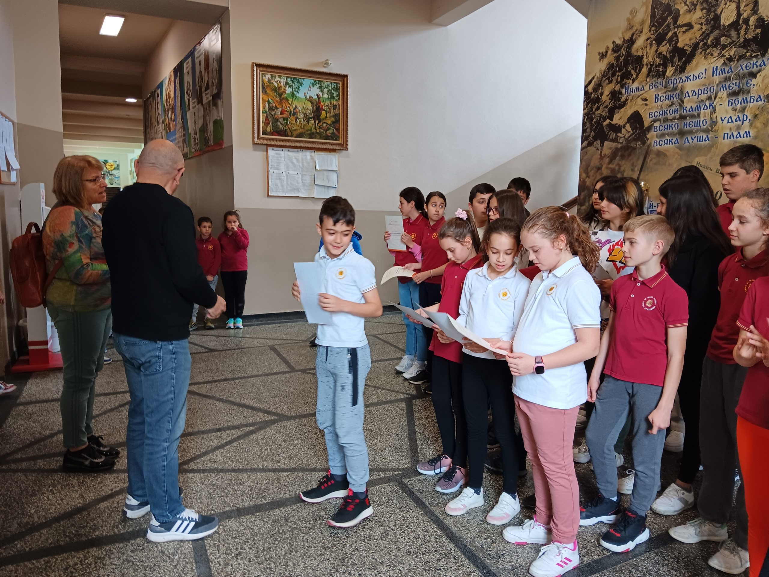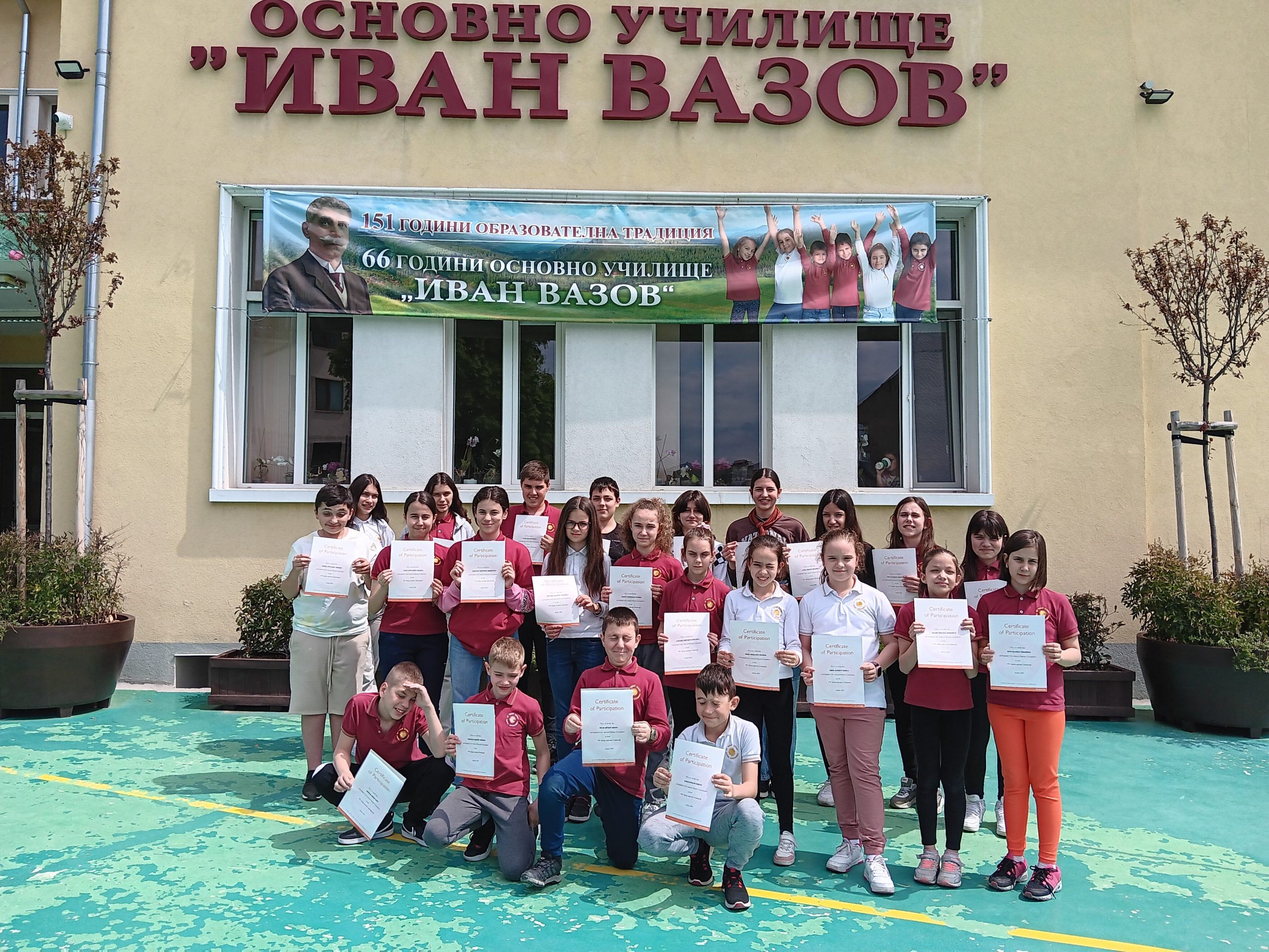 В чест на празника на 24 април 2023, 38 ученици от ОУ „Иван Вазов” получиха своите грамоти за активно участие във вътрешноучилищен кръг на състезанието по английски език „Longman Competition“ – който се проведе през месе март. Състезанието се организира от издателство PEARSON- България. Това е Десето национално състезание по формата на международно признатите езикови сертификати Pearson Test of English (PTE). За националния кръг се класираха и се представиха отлично – Петър Димитров 4 А клас, Кая Тодорова 4 В клас, Ивайло Филипов 4 В клас , Стефан Николов 7А клас и Радост Минчева 7А клас.