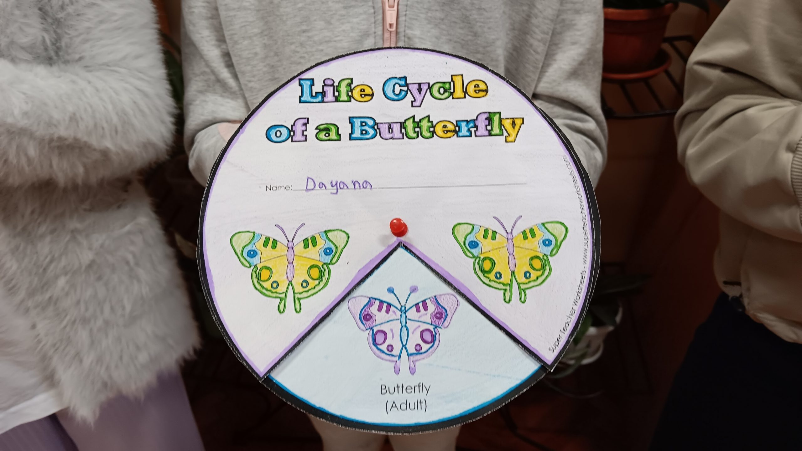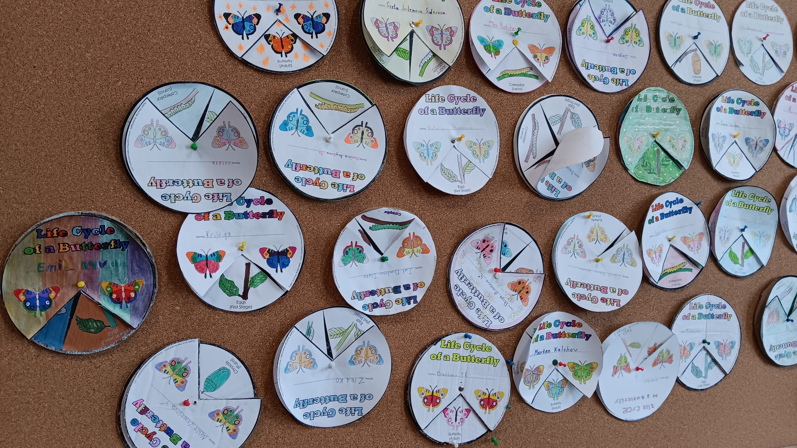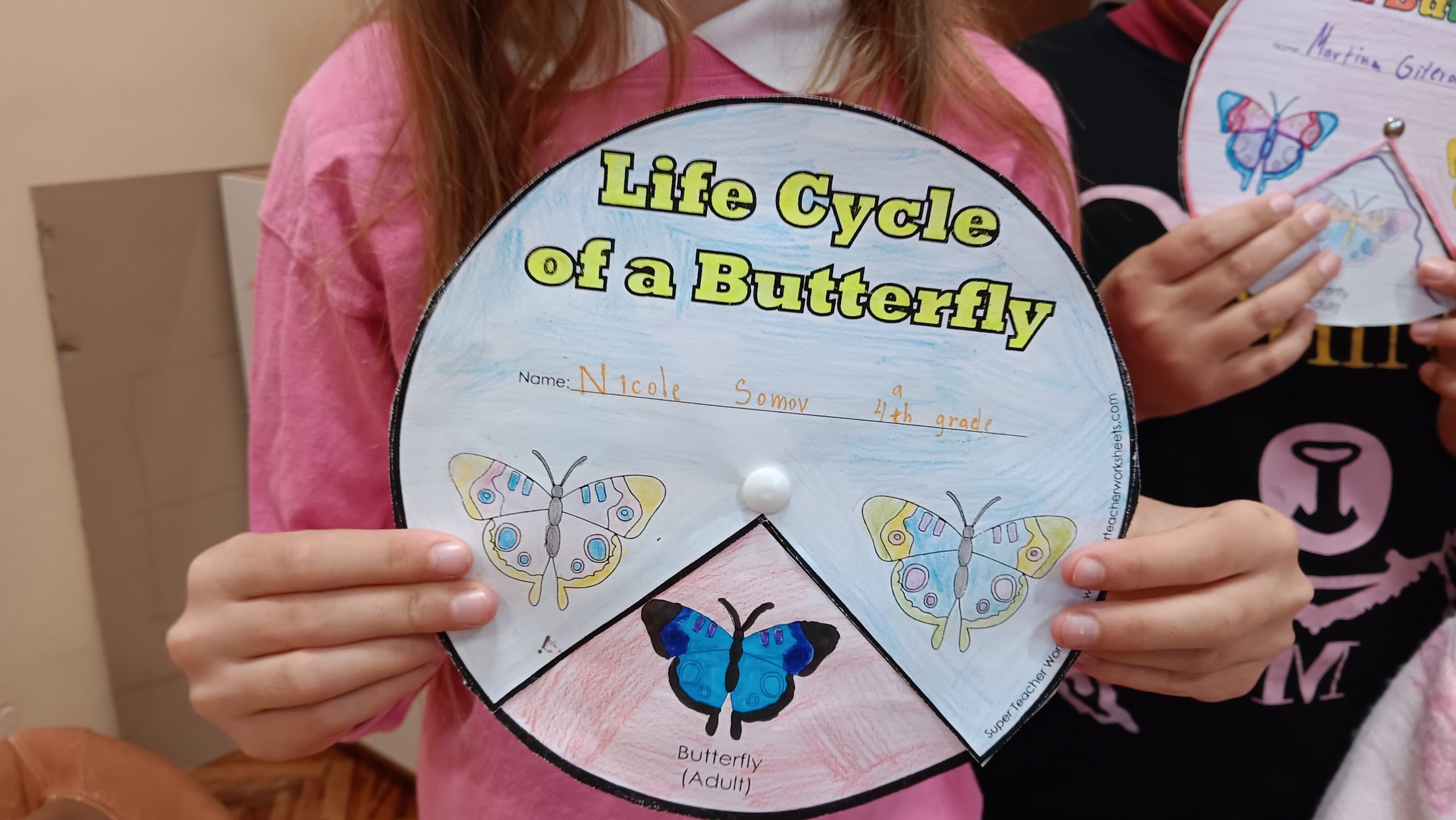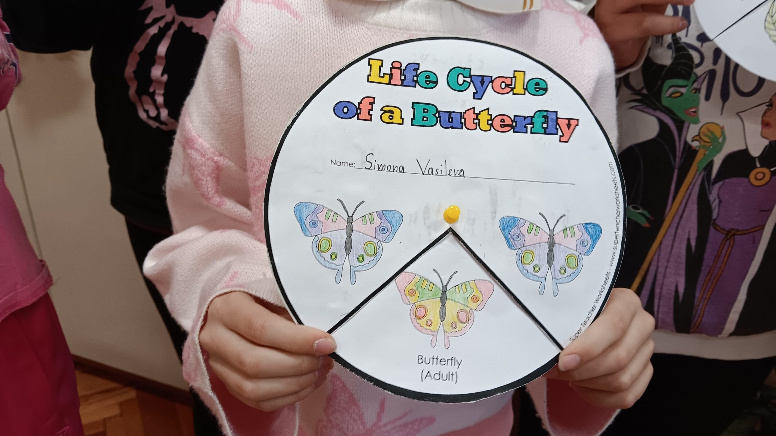 Четвъртокласници работиха в продължение на няколко учебни часа по интердисциплинарен проект „The Life Cycle of a Butterfly“ под ръководството на преподавателите си по английски език Светлана Ненова и Гергана Павлова. Урокът представи на учениците жизнения цикъл на пеперудата – модел на раждане, растеж, размножаване и смърт, общ за живите организми, които преминават през уникални промени. С помощта на интерактивни задачи децата не само усвоиха нови знания, но и демонстрираха умения, придобити в часовете по изобразително изкуство, технологии и предприемачество, и човекът и природата, представяйки финалния си проект изцяло на английски език.