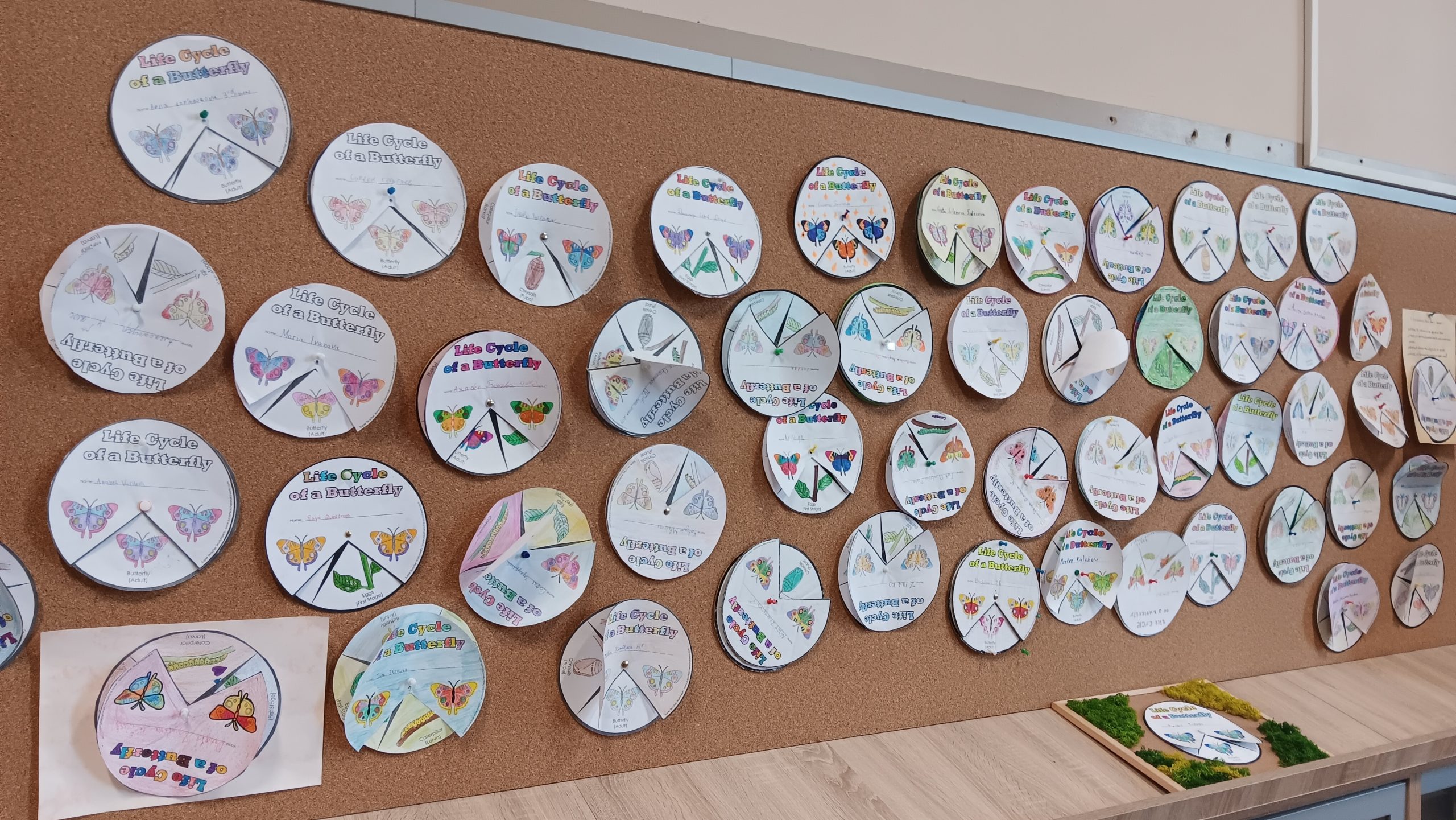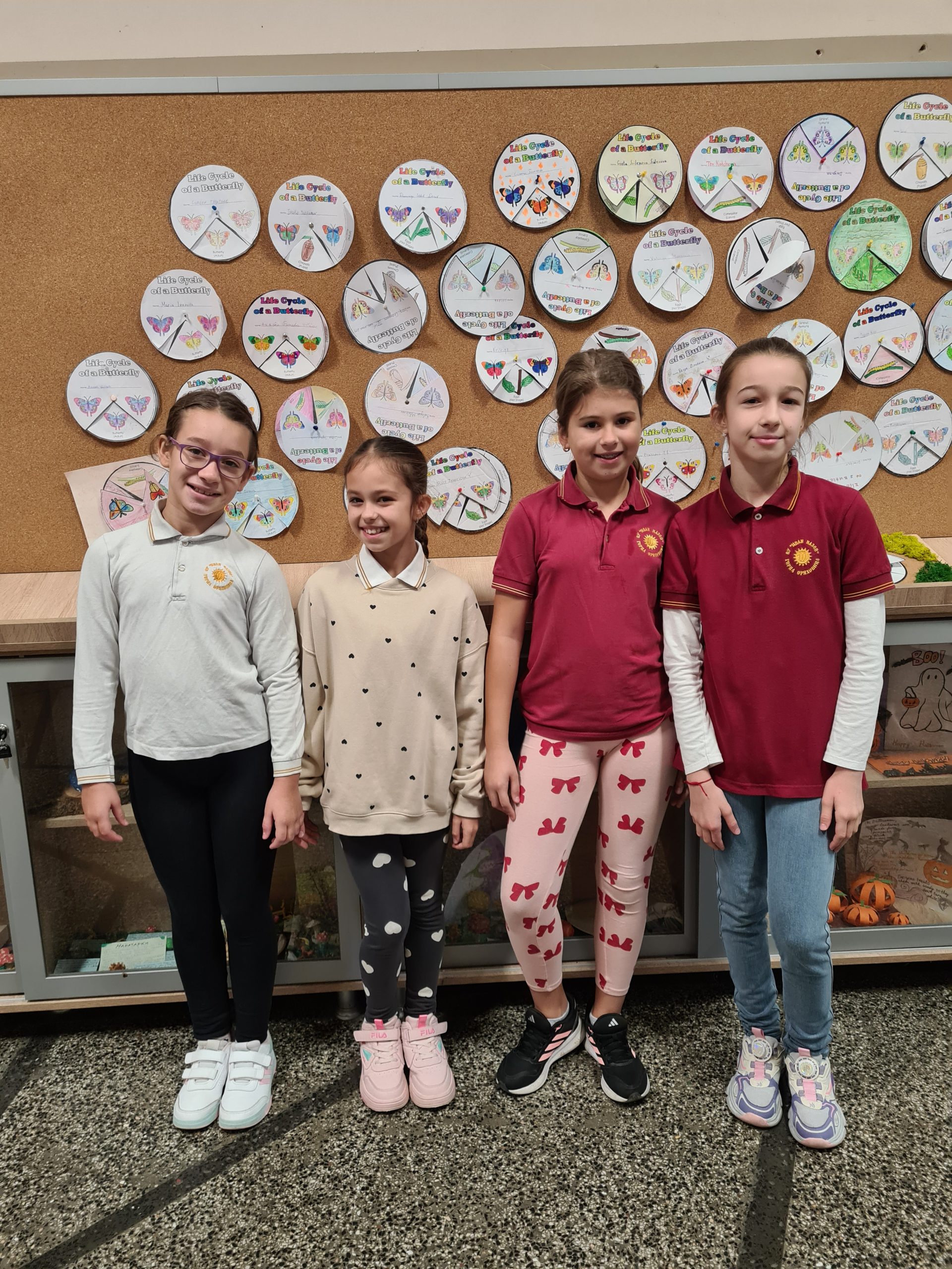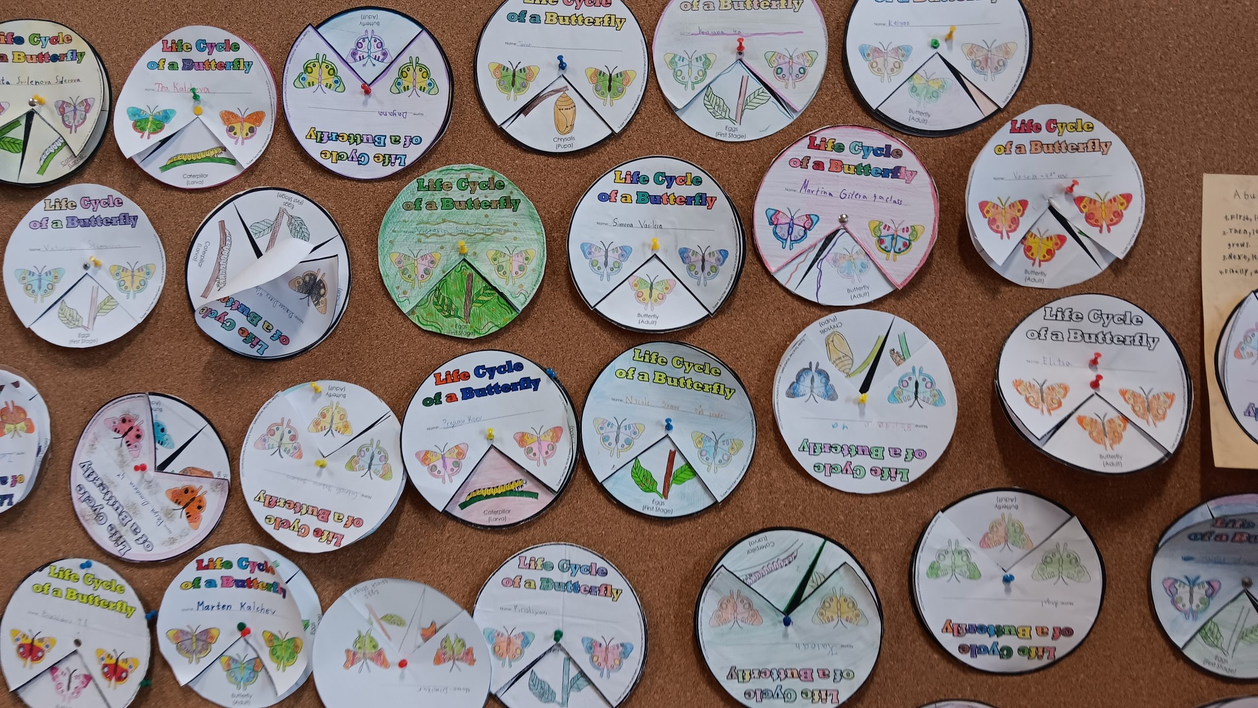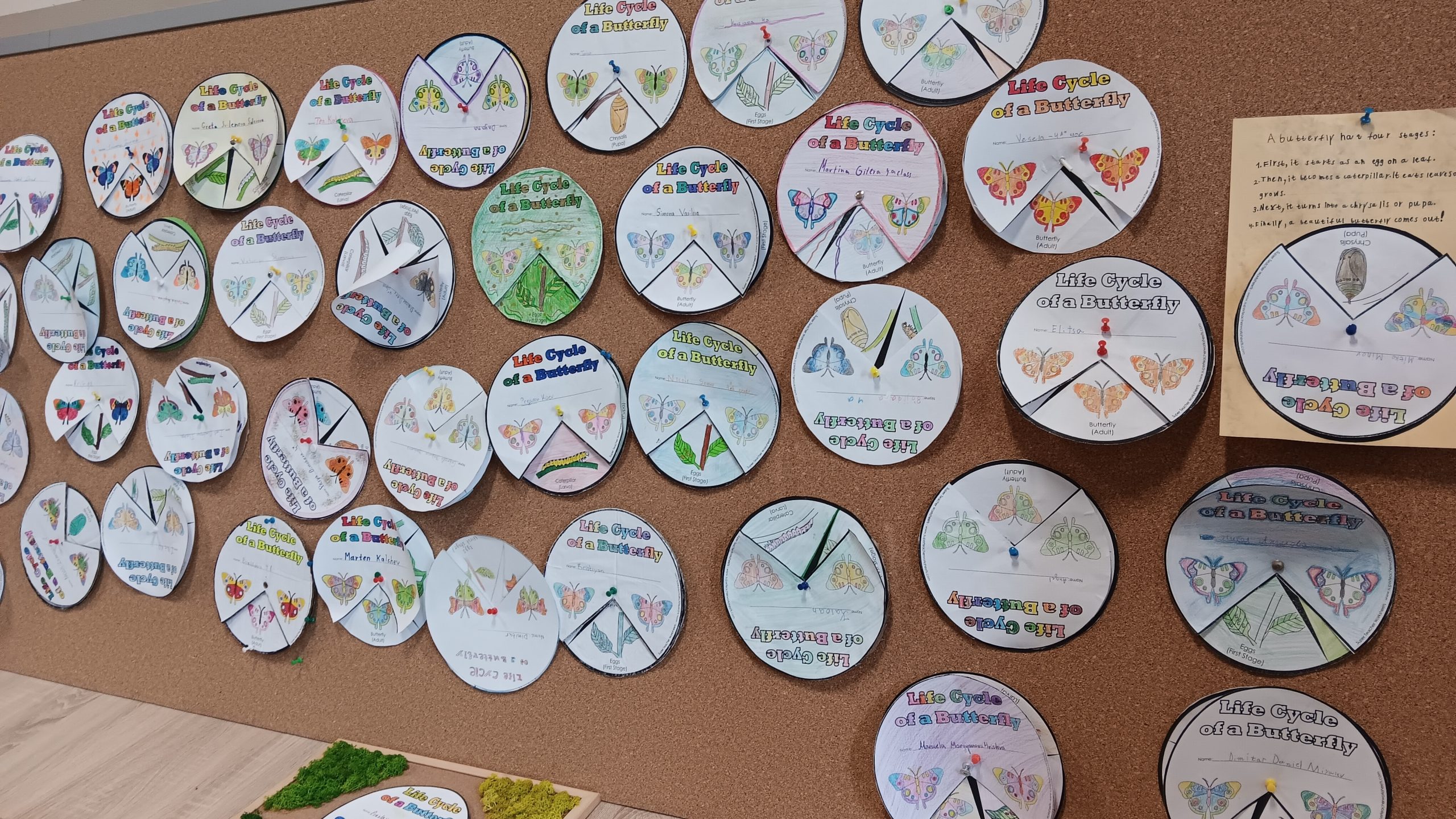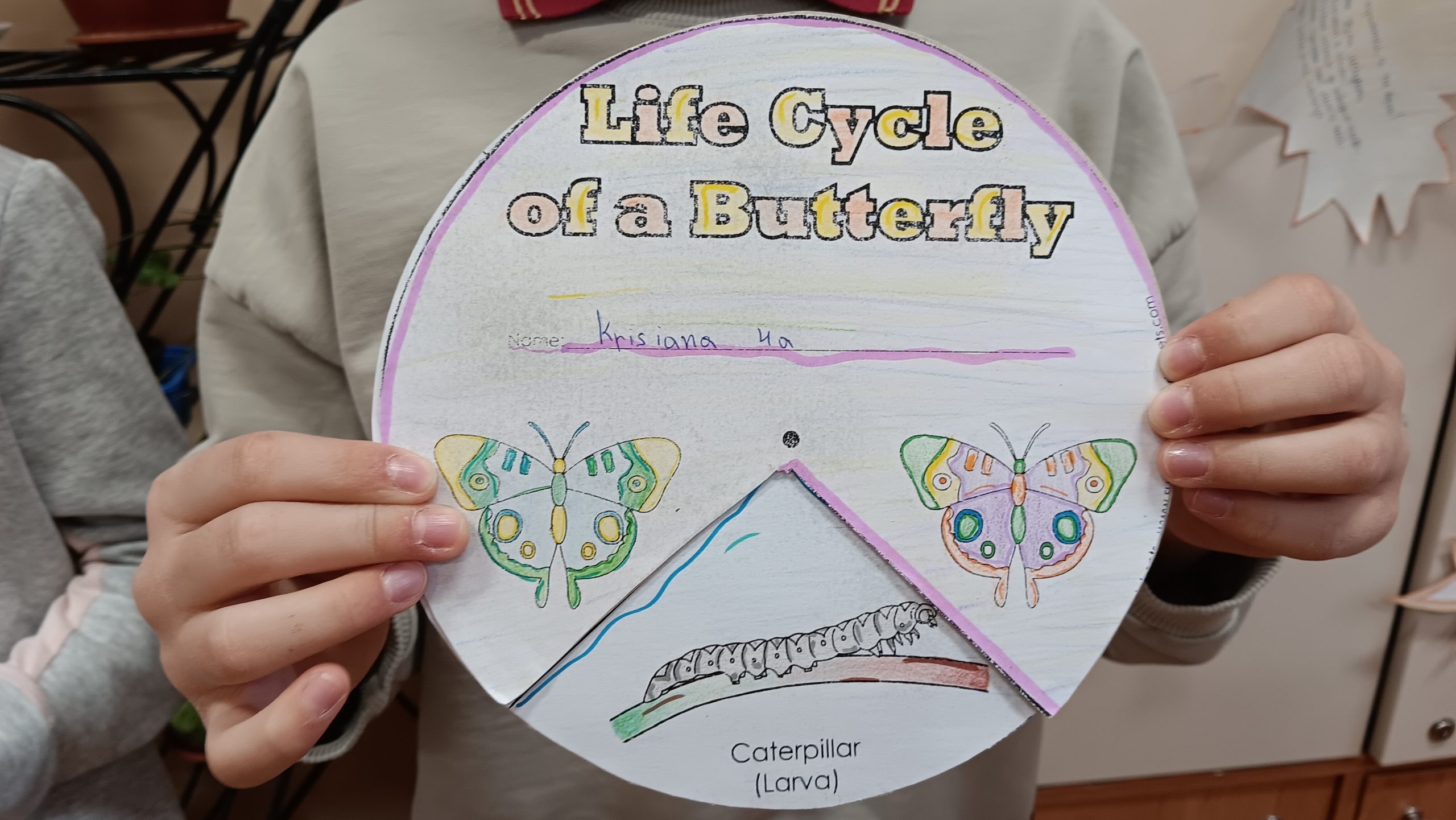 Четвъртокласници работиха в продължение на няколко учебни часа по интердисциплинарен проект „The Life Cycle of a Butterfly“ под ръководството на преподавателите си по английски език Светлана Ненова и Гергана Павлова. Урокът представи на учениците жизнения цикъл на пеперудата – модел на раждане, растеж, размножаване и смърт, общ за живите организми, които преминават през уникални промени. С помощта на интерактивни задачи децата не само усвоиха нови знания, но и демонстрираха умения, придобити в часовете по изобразително изкуство, технологии и предприемачество, и човекът и природата, представяйки финалния си проект изцяло на английски език.